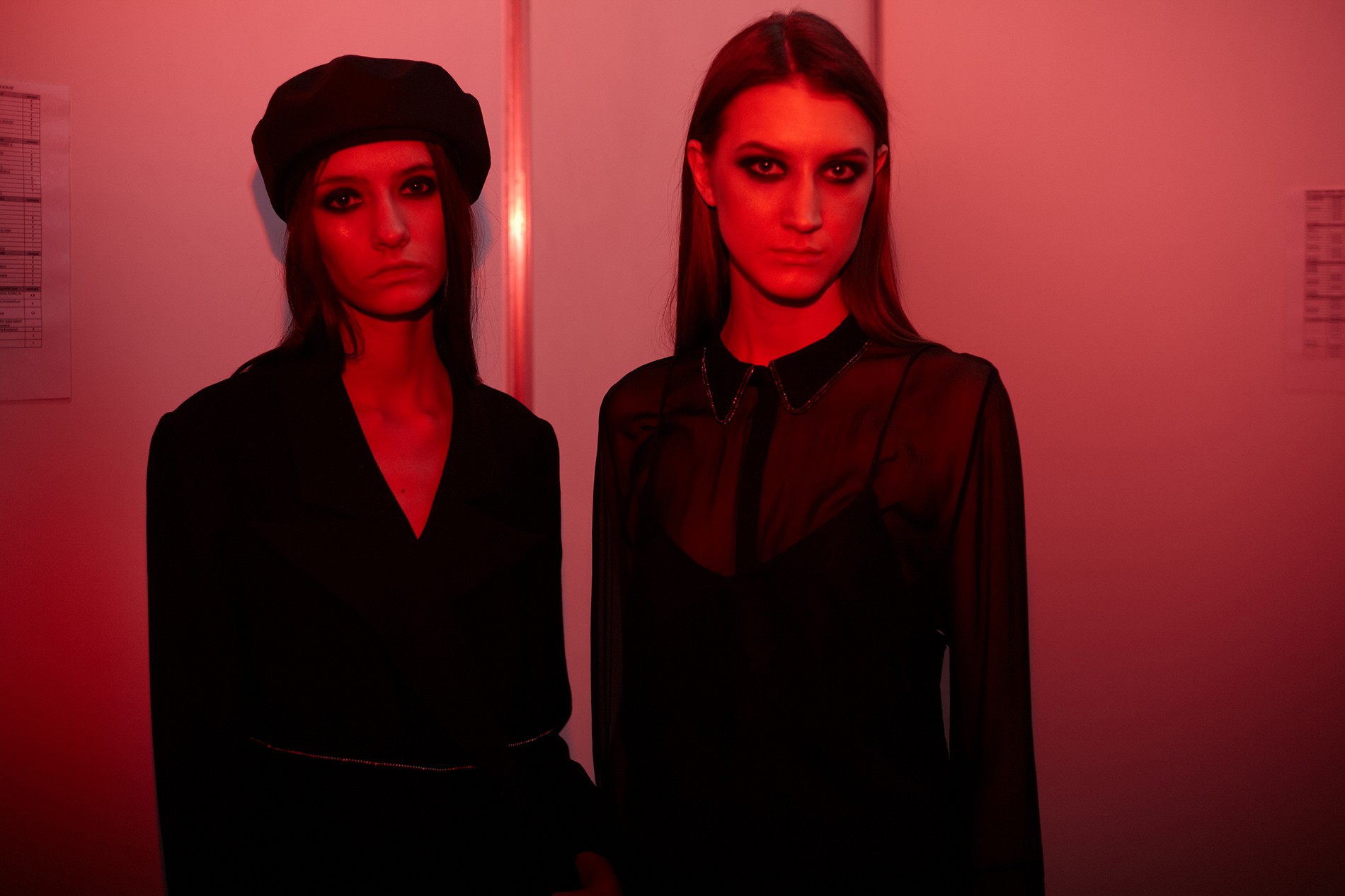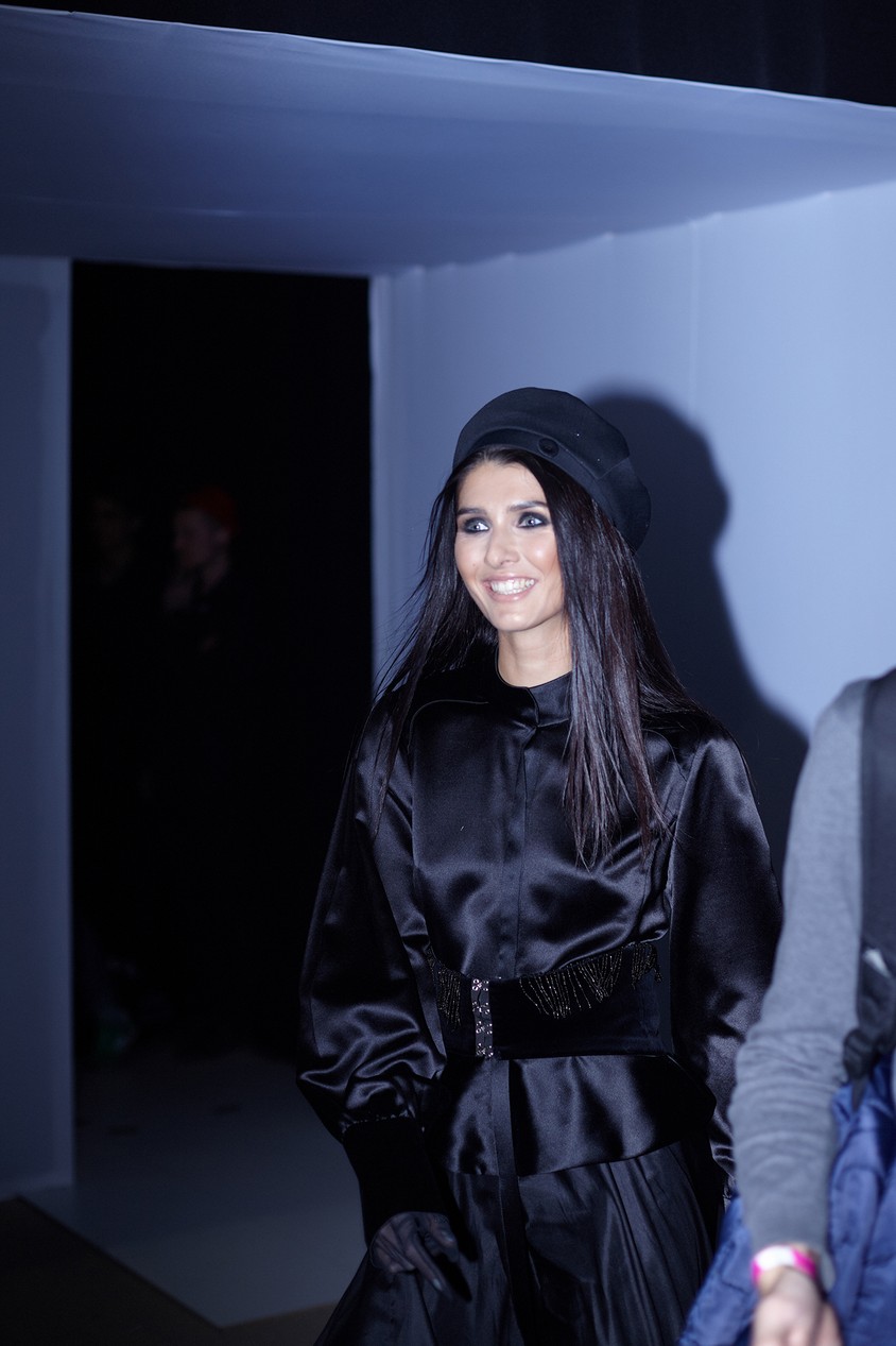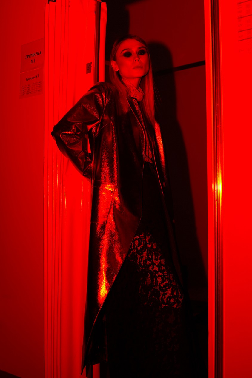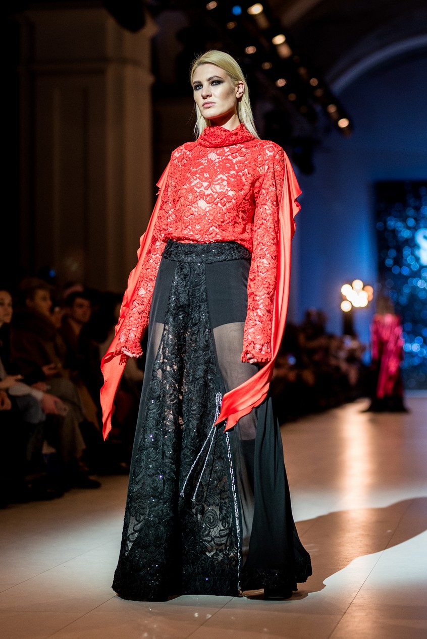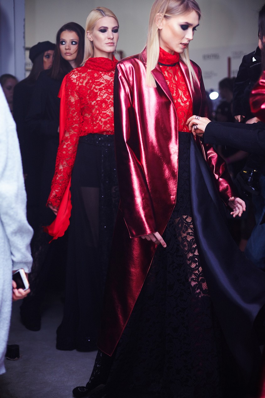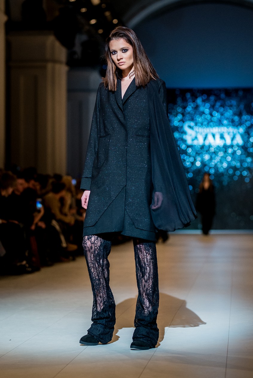 Выйти на улицу в платье, скорее напоминающем пиджак, или в полупрозрачной блузке, строгой деловой юбке и виниловом тренче — не проблема для героини Ляли. Главное — не забыть милую шляпку или берет. Дизайнер, будто вспоминая роман Стендаля «Красное и черное», посвящает этой комбинации цветов всю коллекцию. Так она проводит параллель между сильным характером и женственностью.