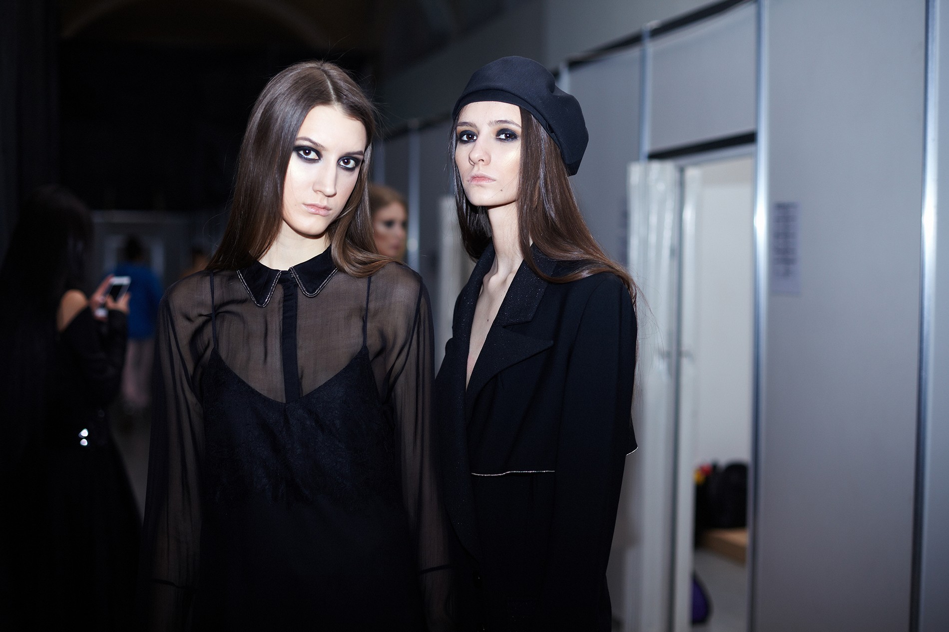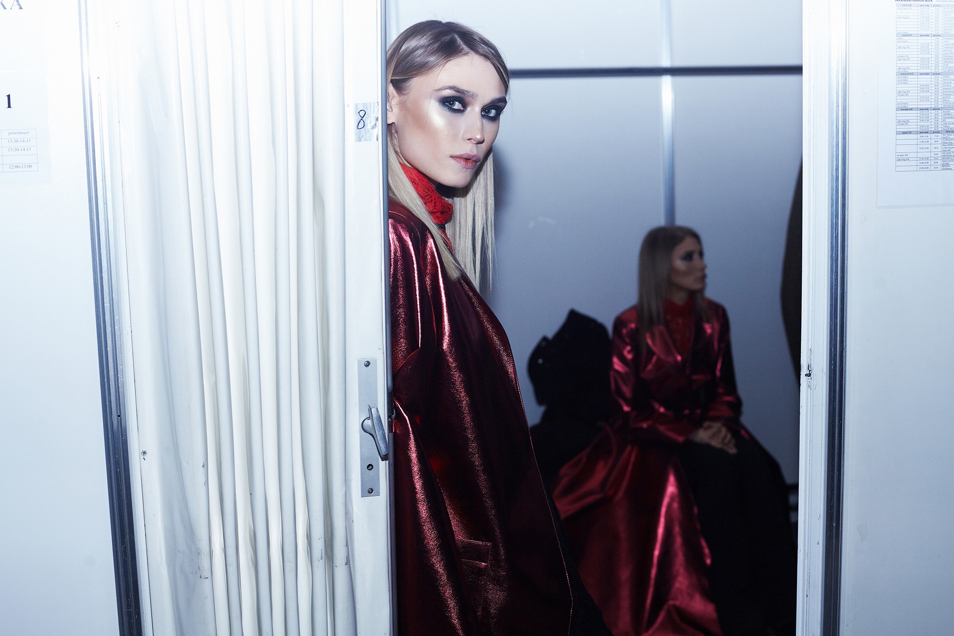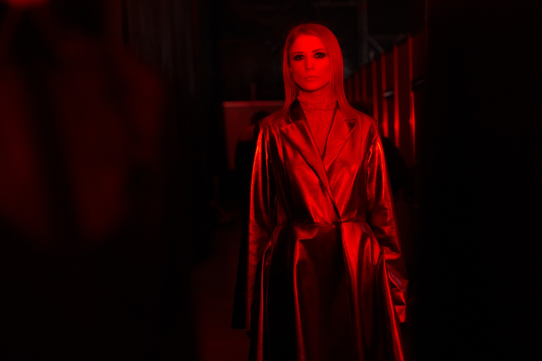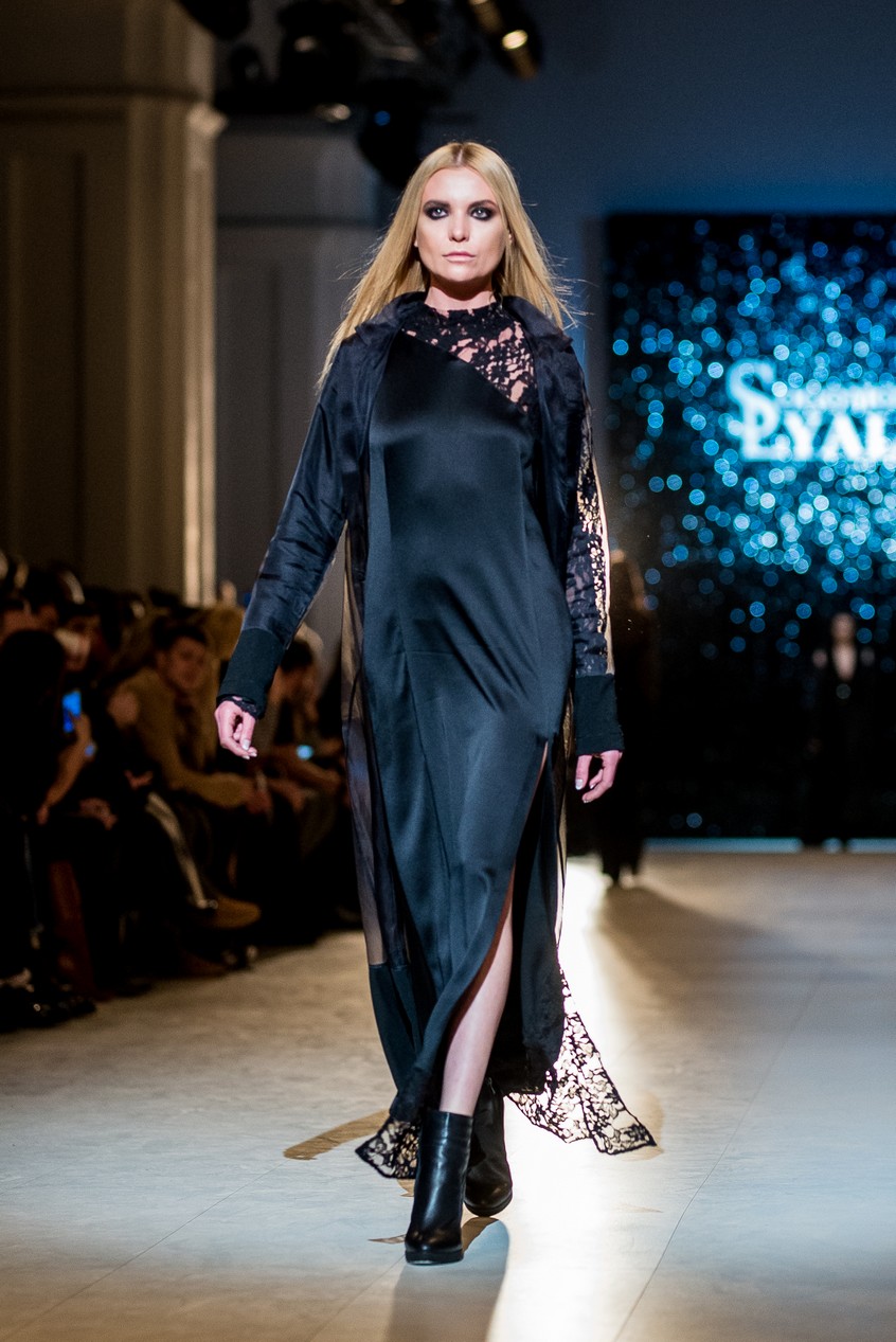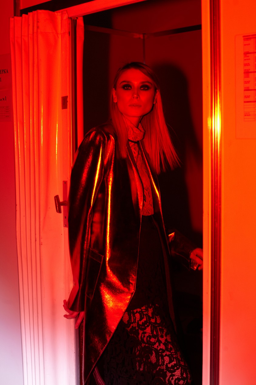 Выйти на улицу в платье, скорее напоминающем пиджак, или в полупрозрачной блузке, строгой деловой юбке и виниловом тренче — не проблема для героини Ляли. Главное — не забыть милую шляпку или берет. Дизайнер, будто вспоминая роман Стендаля «Красное и черное», посвящает этой комбинации цветов всю коллекцию. Так она проводит параллель между сильным характером и женственностью.