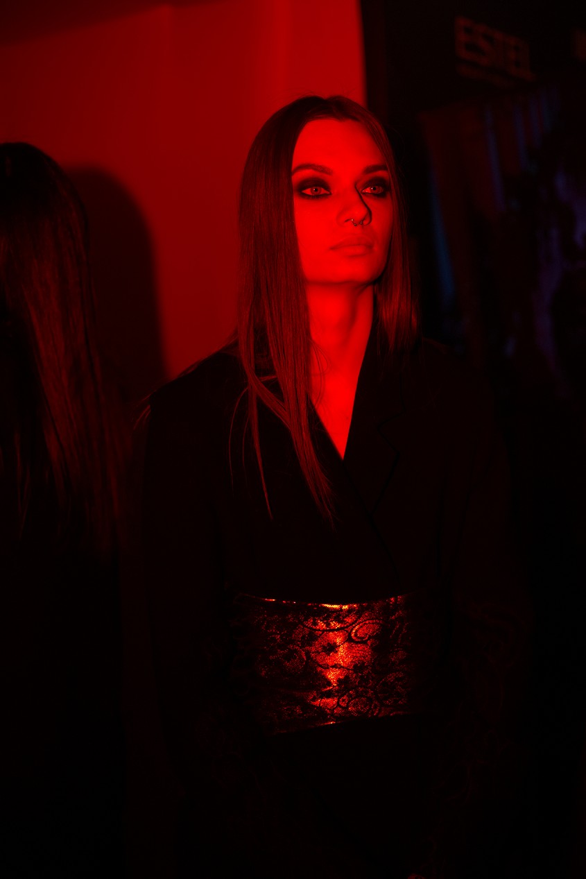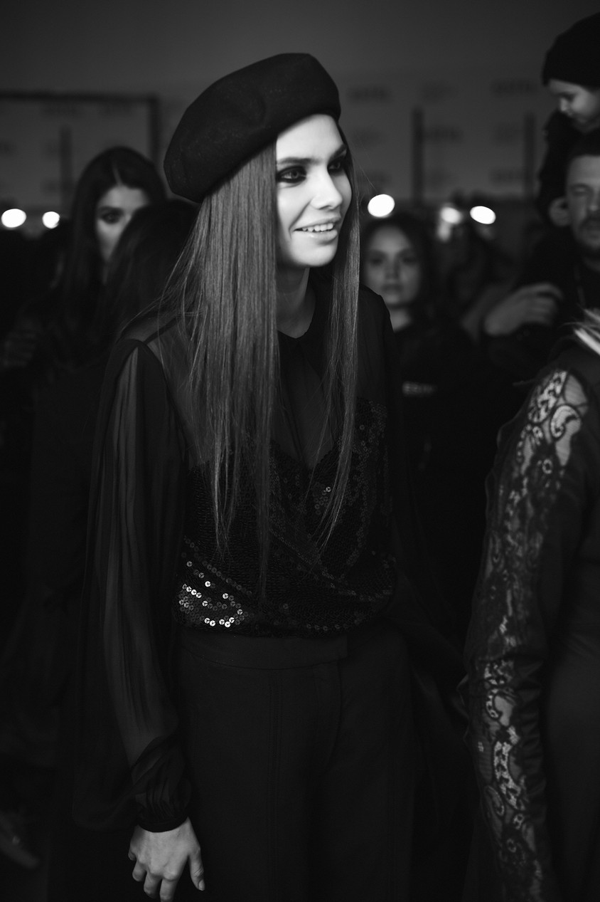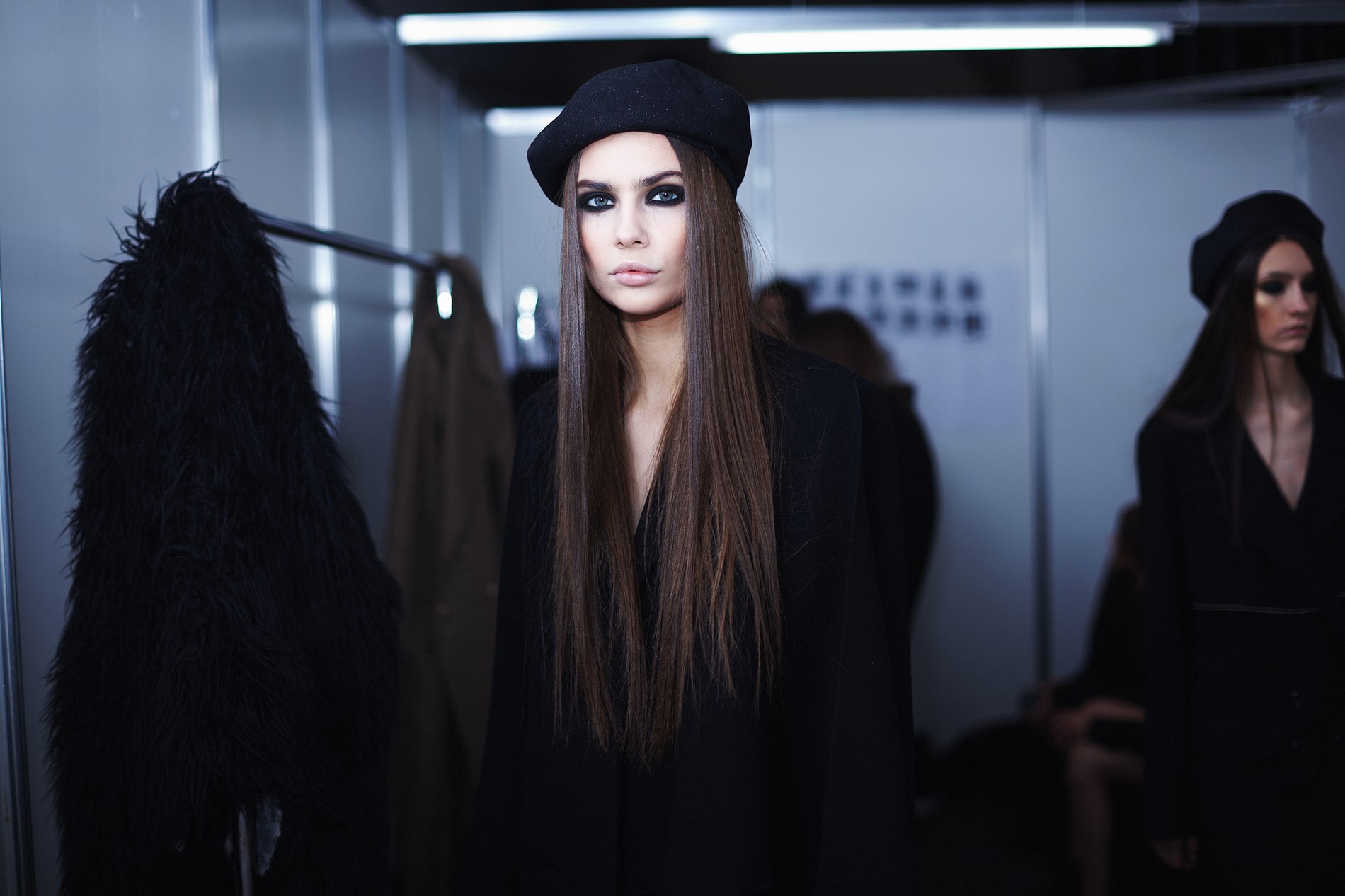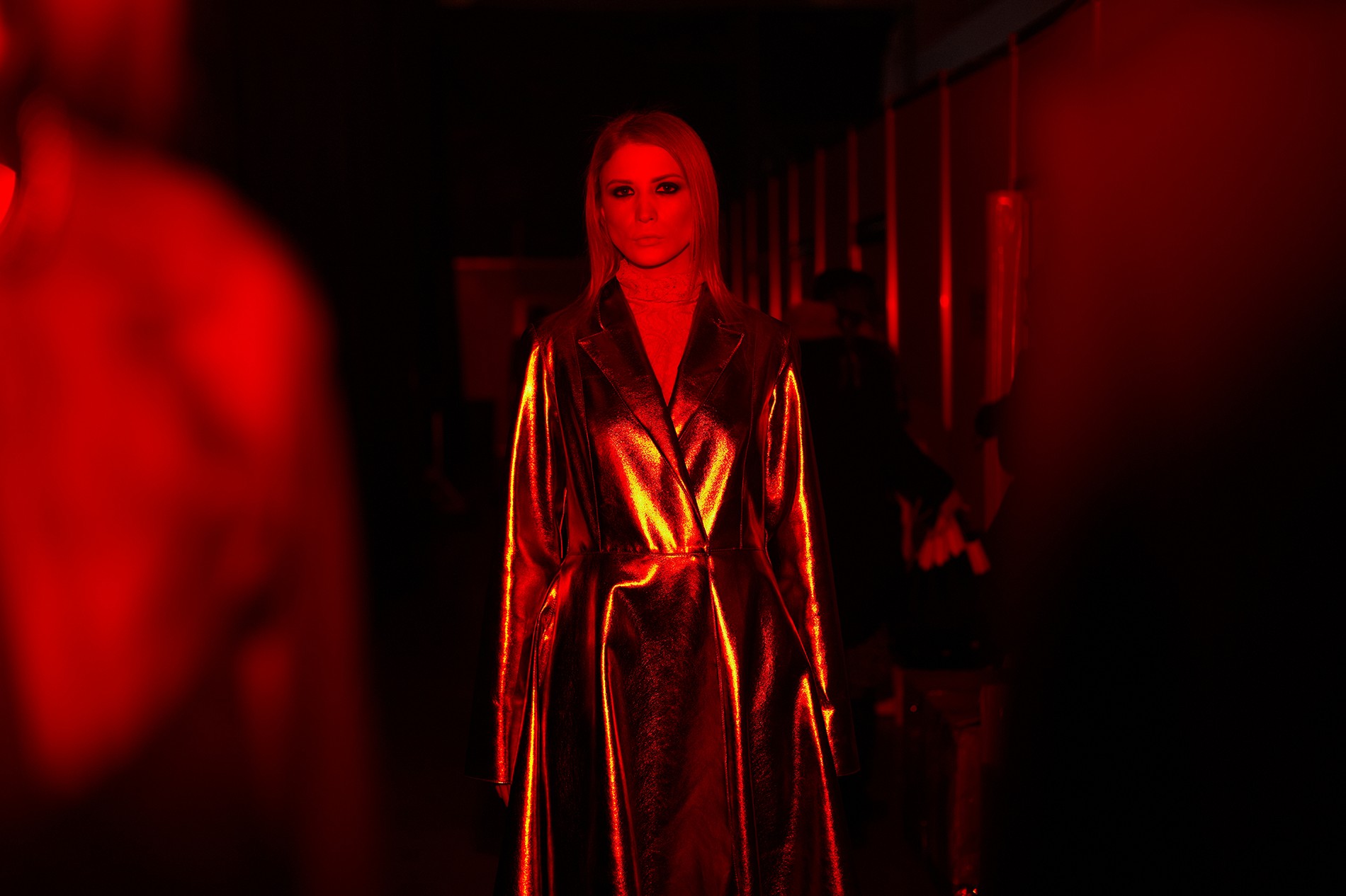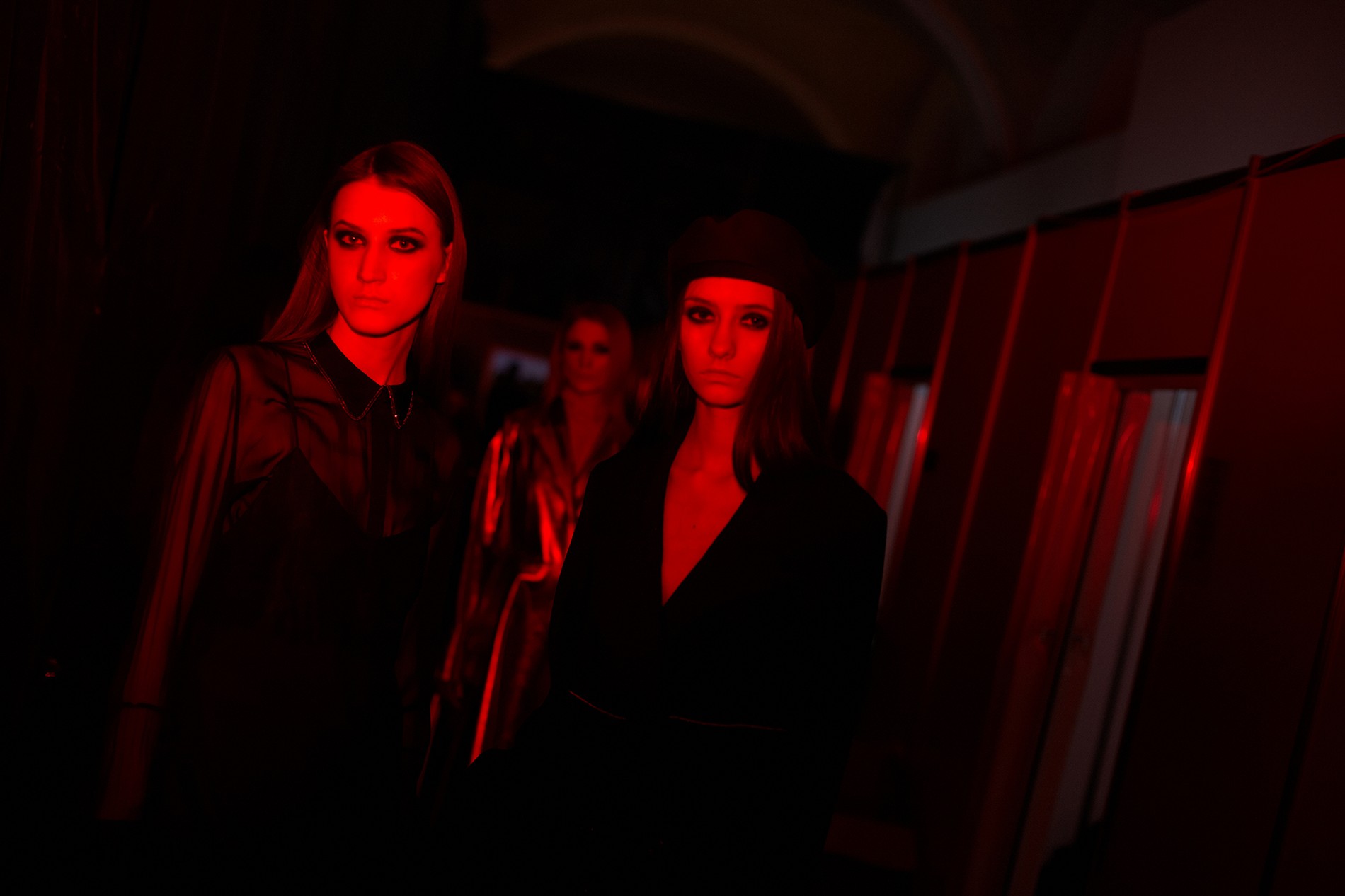Выйти на улицу в платье, скорее напоминающем пиджак, или в полупрозрачной блузке, строгой деловой юбке и виниловом тренче — не проблема для героини Ляли. Главное — не забыть милую шляпку или берет. Дизайнер, будто вспоминая роман Стендаля «Красное и черное», посвящает этой комбинации цветов всю коллекцию. Так она проводит параллель между сильным характером и женственностью.