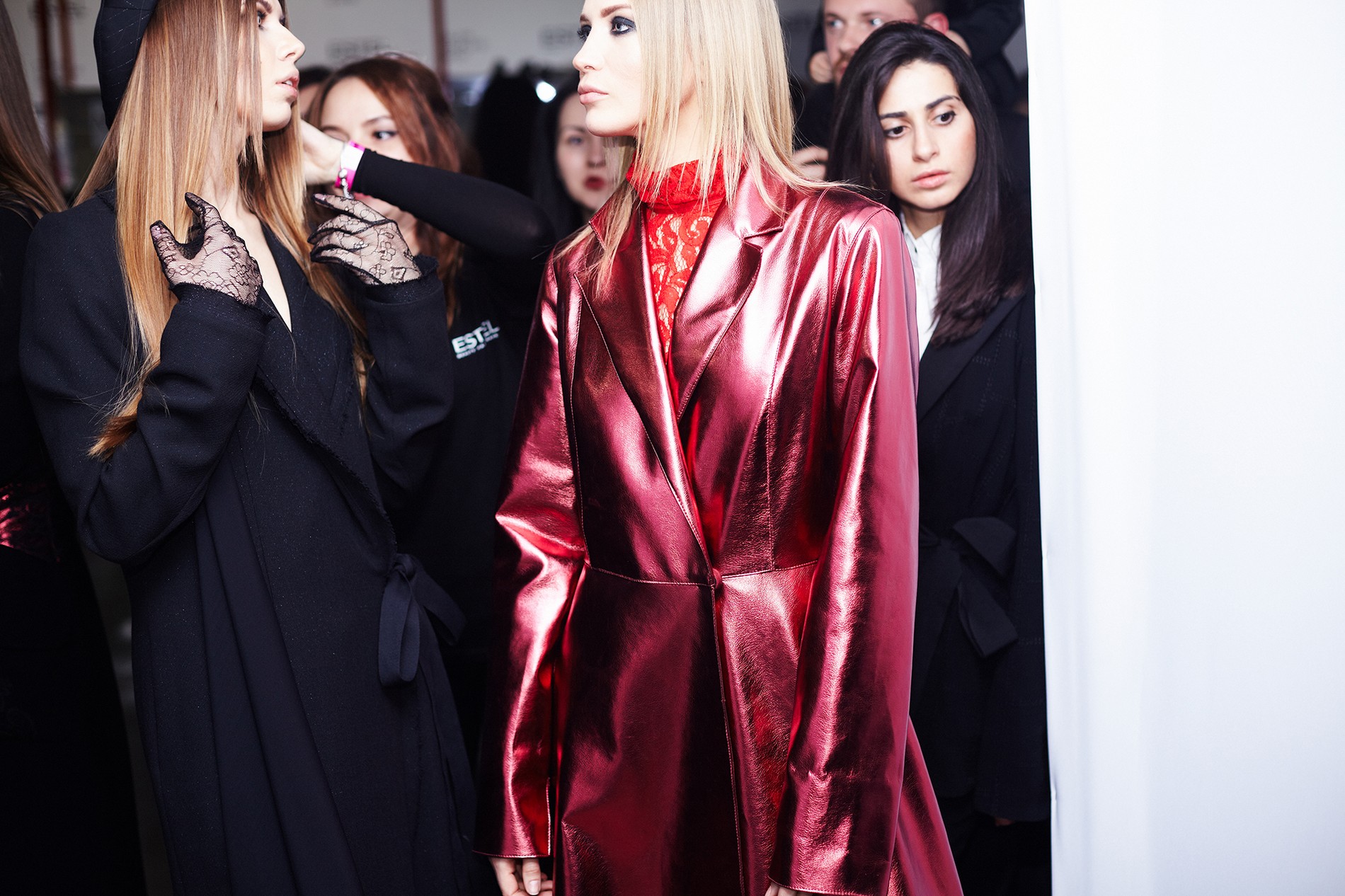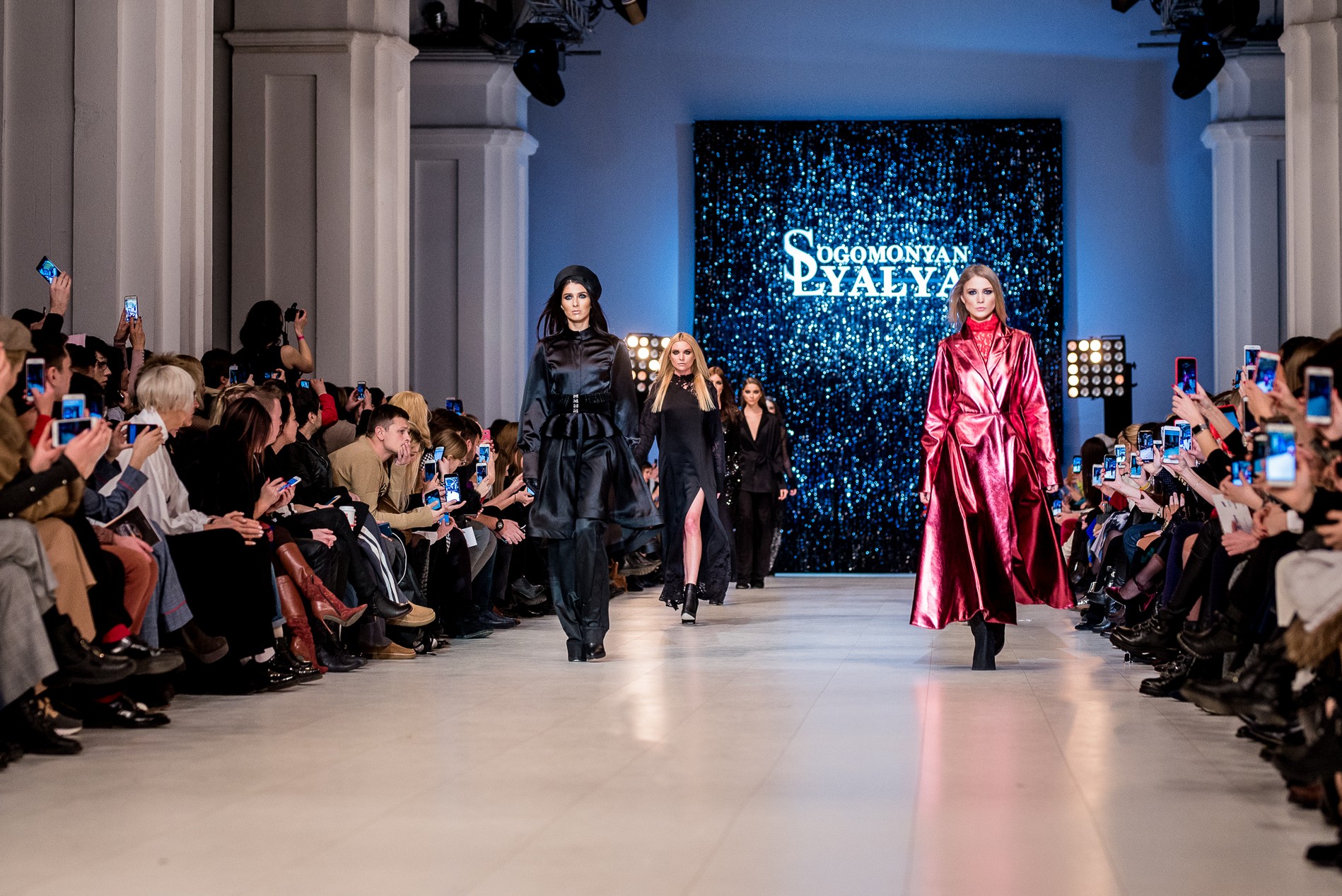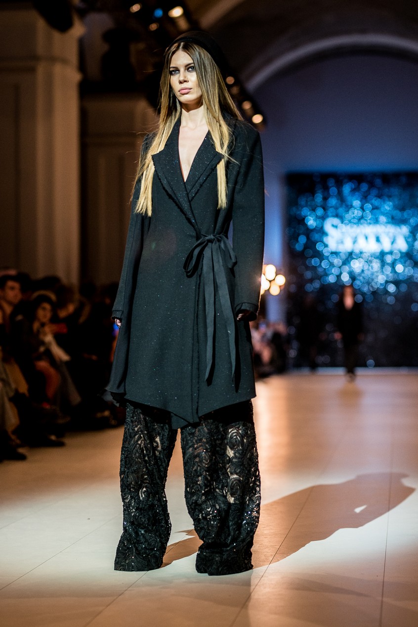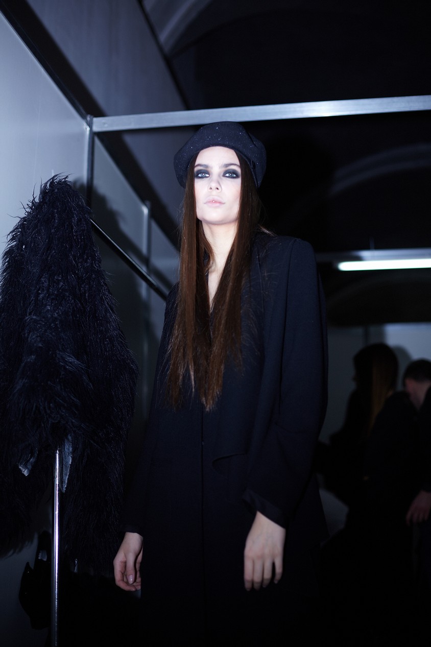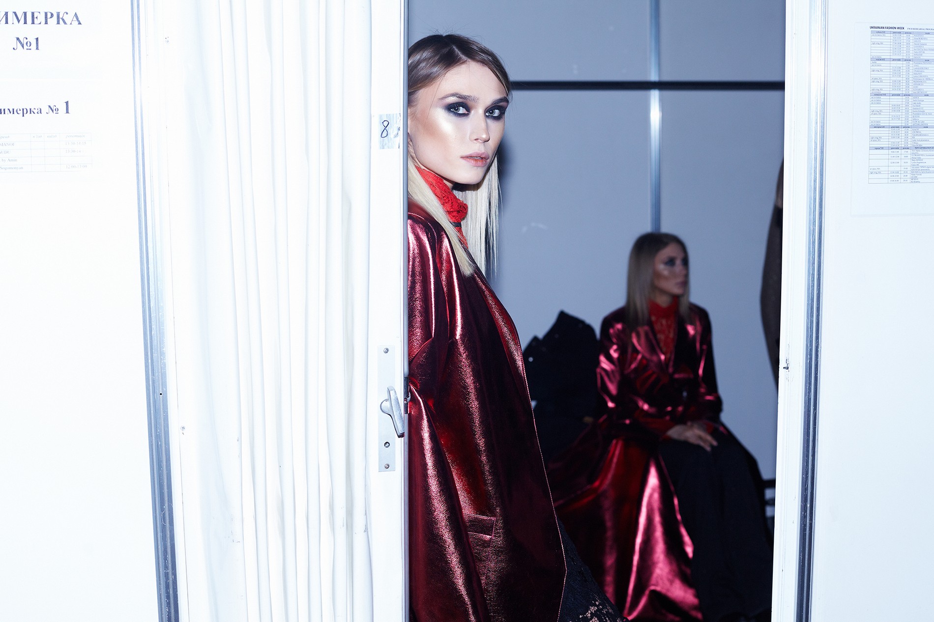 Выйти на улицу в платье, скорее напоминающем пиджак, или в полупрозрачной блузке, строгой деловой юбке и виниловом тренче — не проблема для героини Ляли. Главное — не забыть милую шляпку или берет. Дизайнер, будто вспоминая роман Стендаля «Красное и черное», посвящает этой комбинации цветов всю коллекцию. Так она проводит параллель между сильным характером и женственностью.