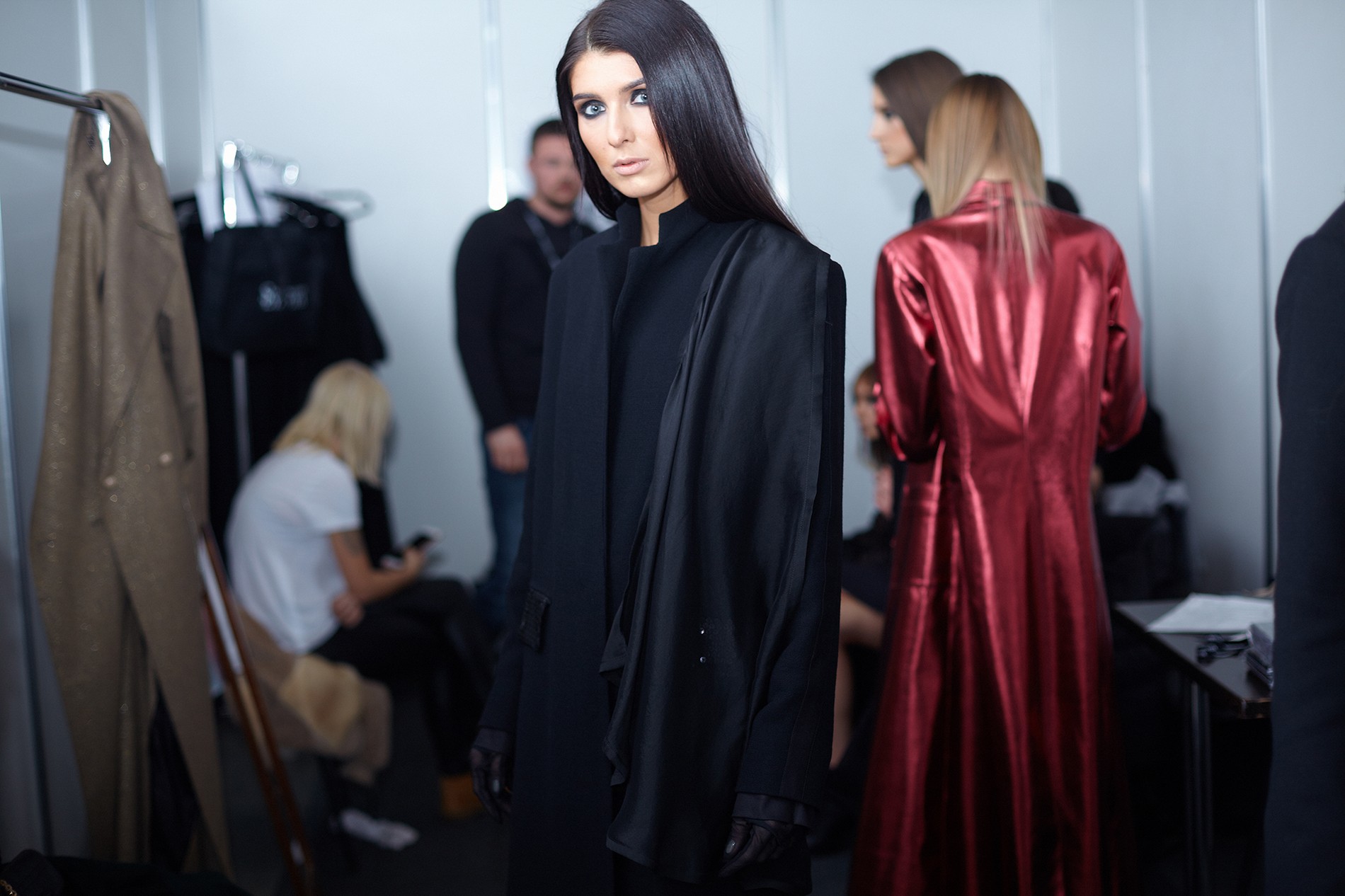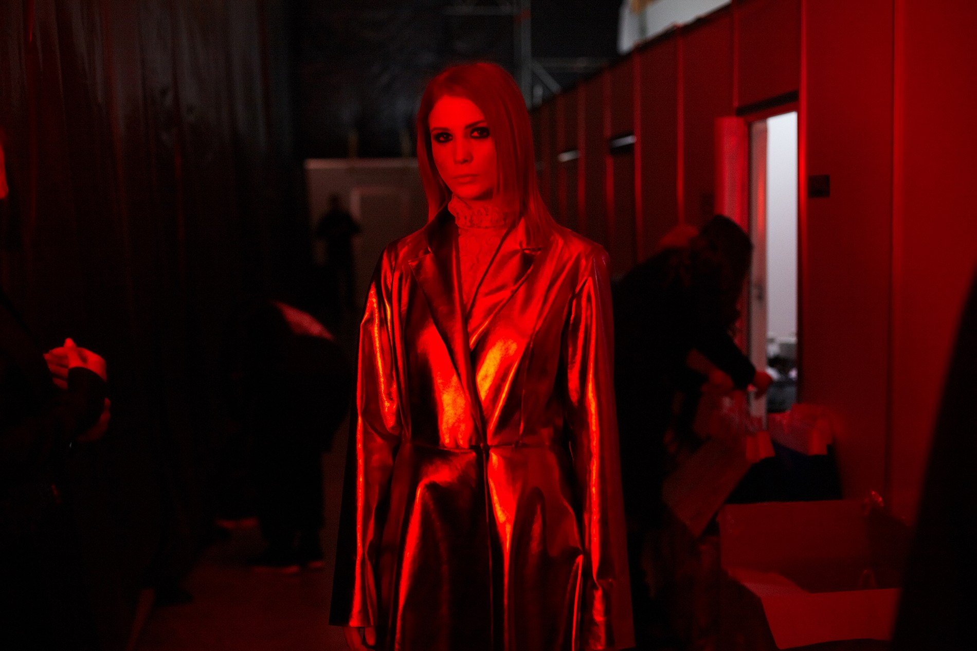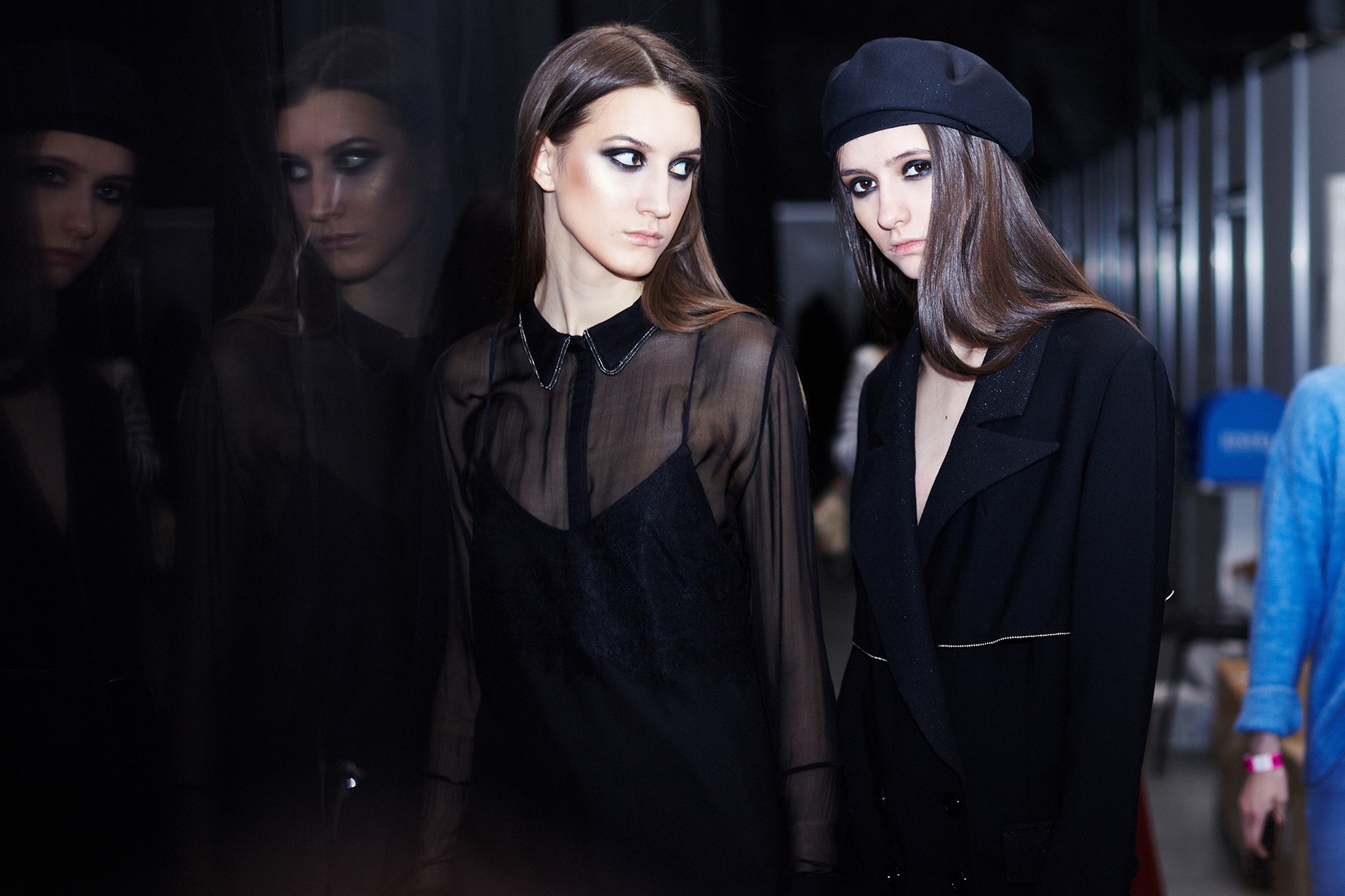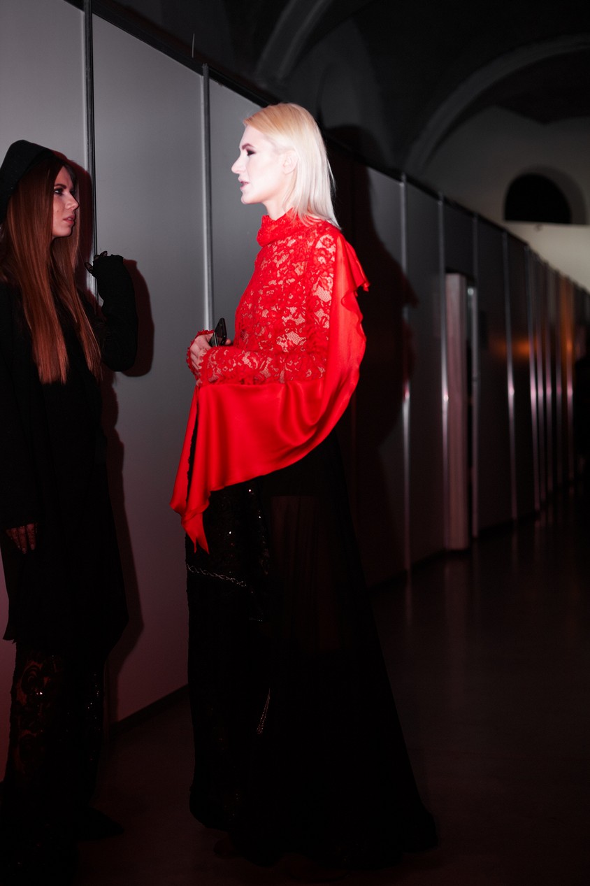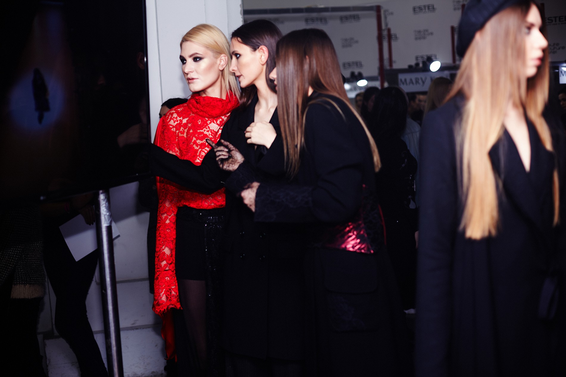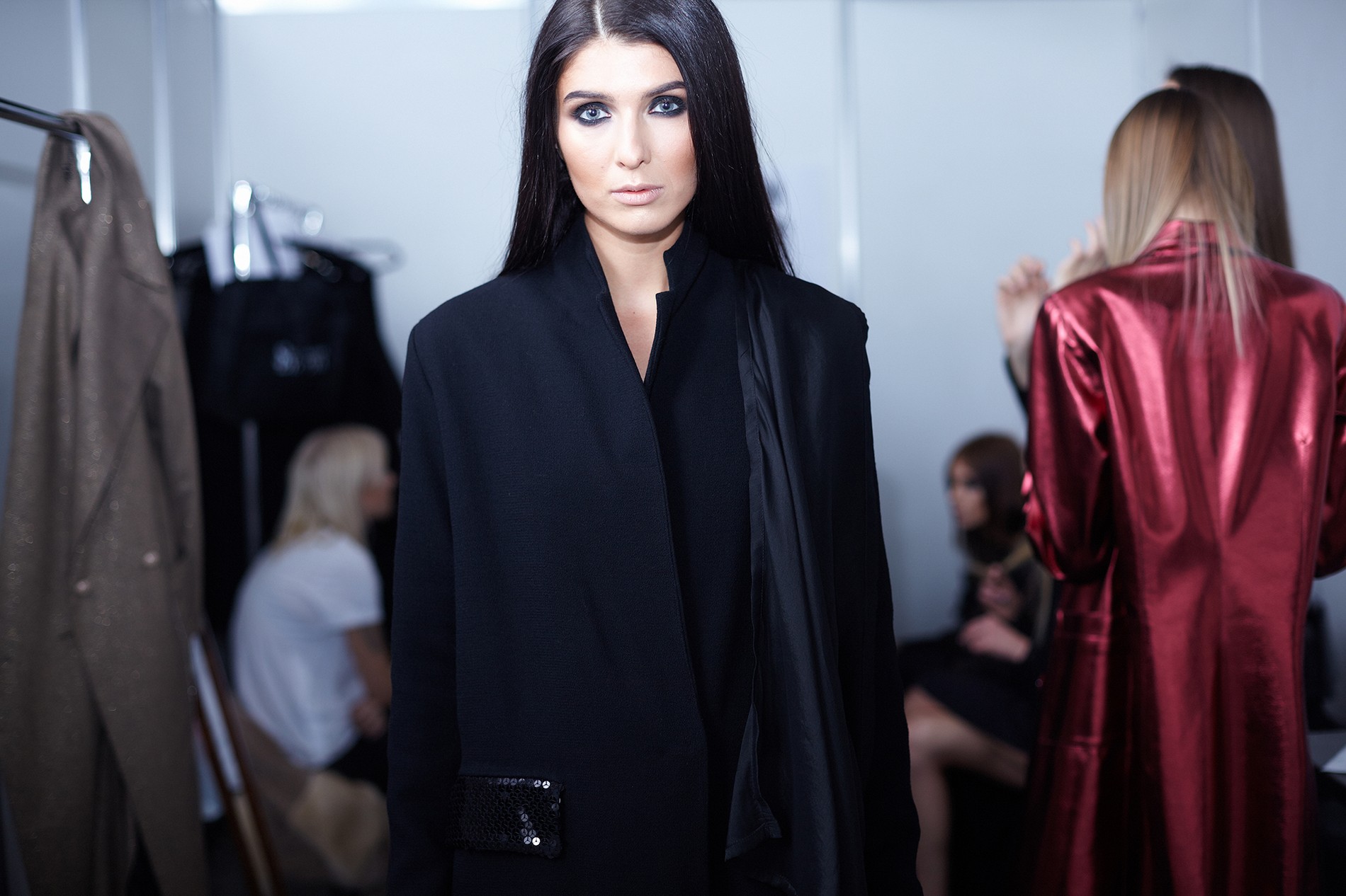 Выйти на улицу в платье, скорее напоминающем пиджак, или в полупрозрачной блузке, строгой деловой юбке и виниловом тренче — не проблема для героини Ляли. Главное — не забыть милую шляпку или берет. Дизайнер, будто вспоминая роман Стендаля «Красное и черное», посвящает этой комбинации цветов всю коллекцию. Так она проводит параллель между сильным характером и женственностью.