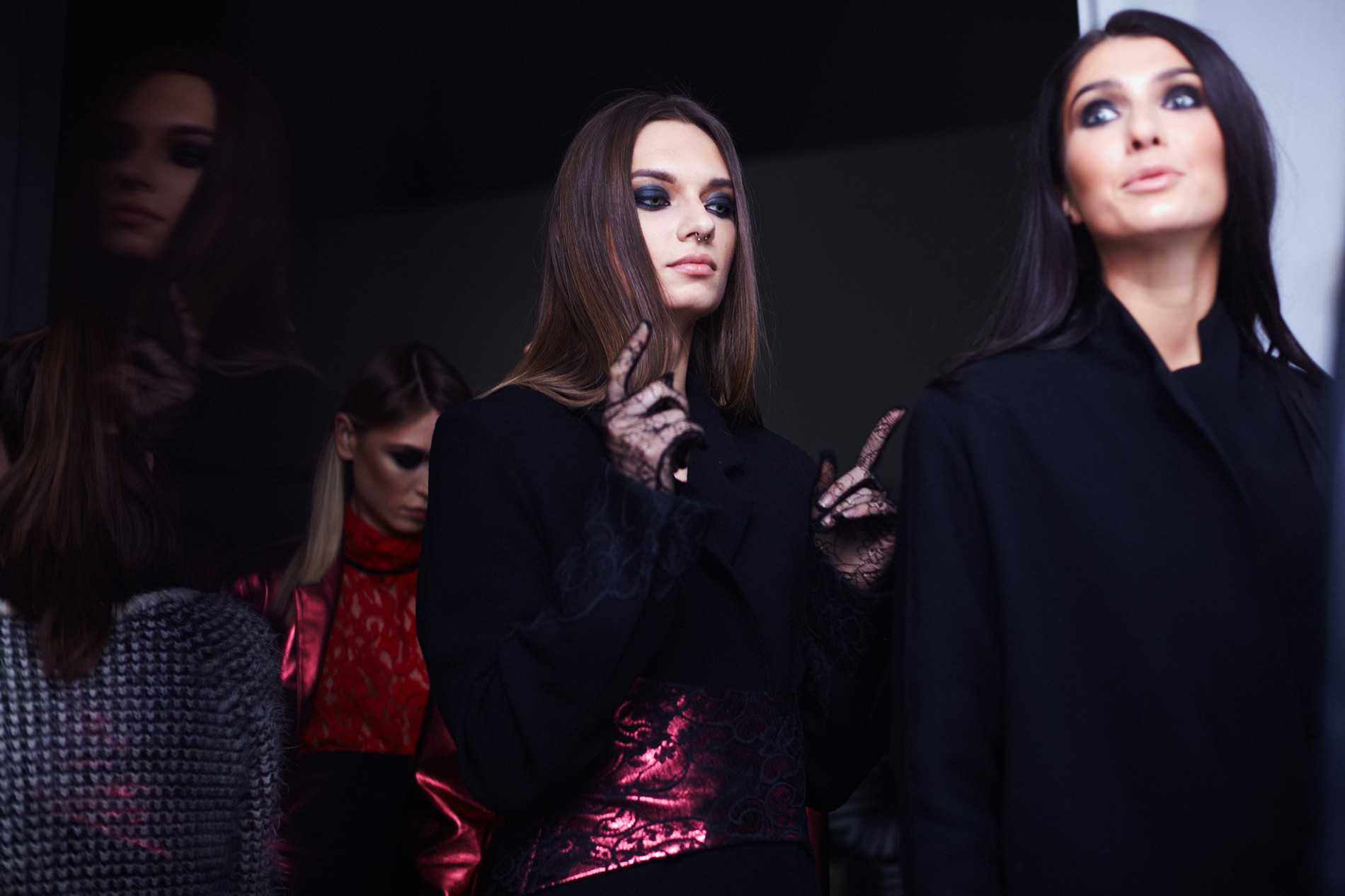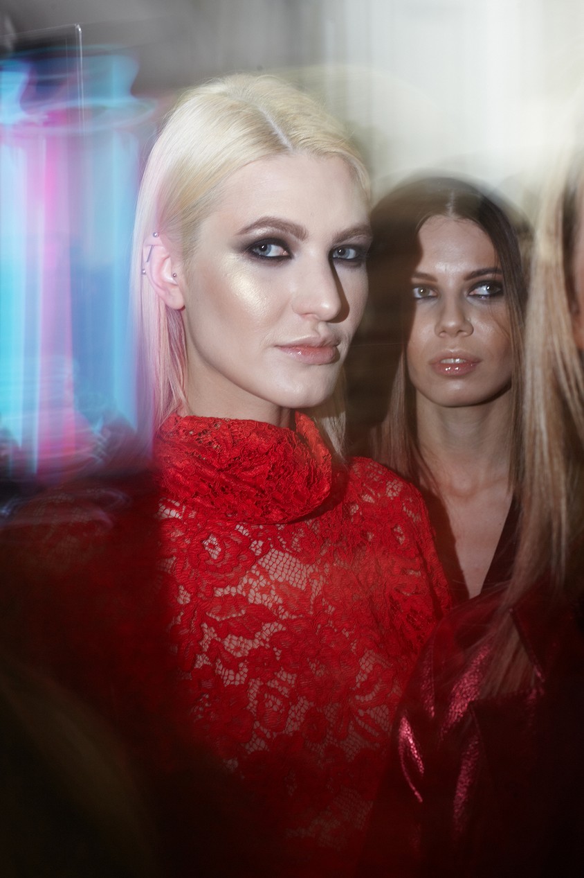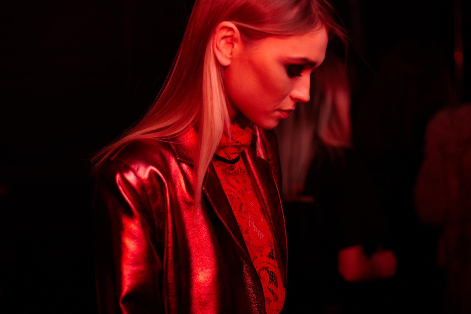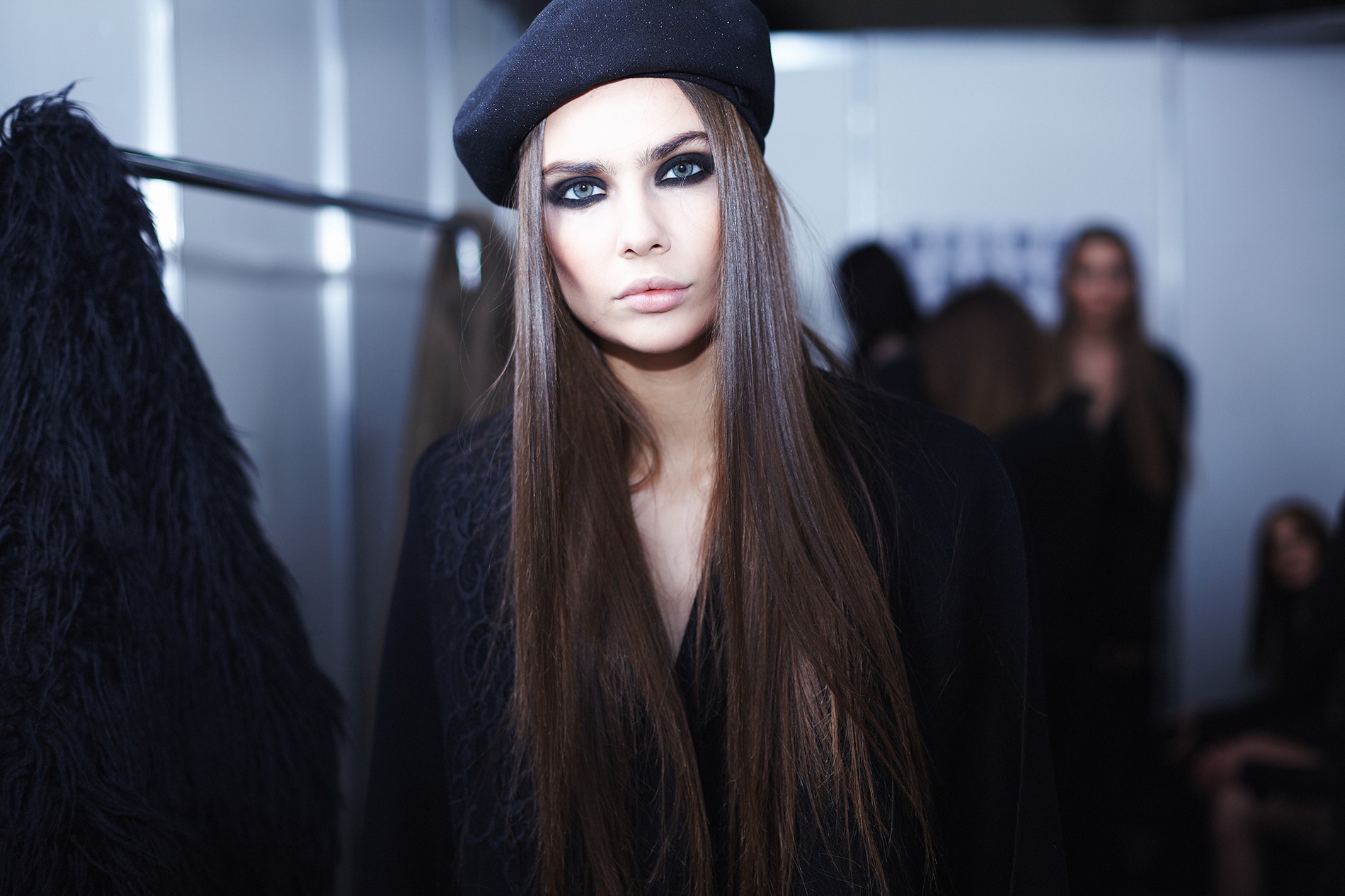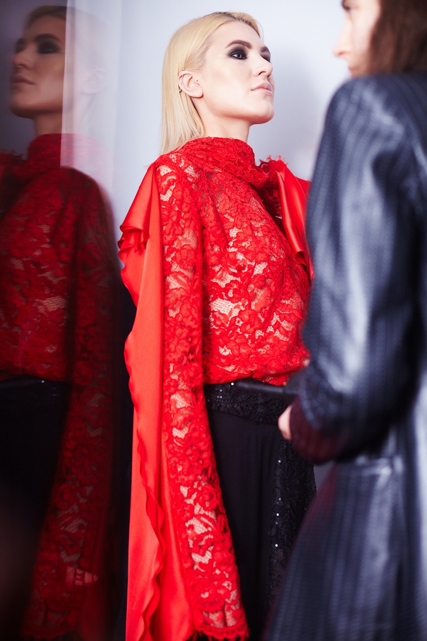 Выйти на улицу в платье, скорее напоминающем пиджак, или в полупрозрачной блузке, строгой деловой юбке и виниловом тренче — не проблема для героини Ляли. Главное — не забыть милую шляпку или берет. Дизайнер, будто вспоминая роман Стендаля «Красное и черное», посвящает этой комбинации цветов всю коллекцию. Так она проводит параллель между сильным характером и женственностью.