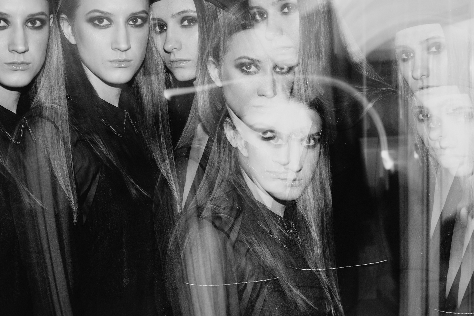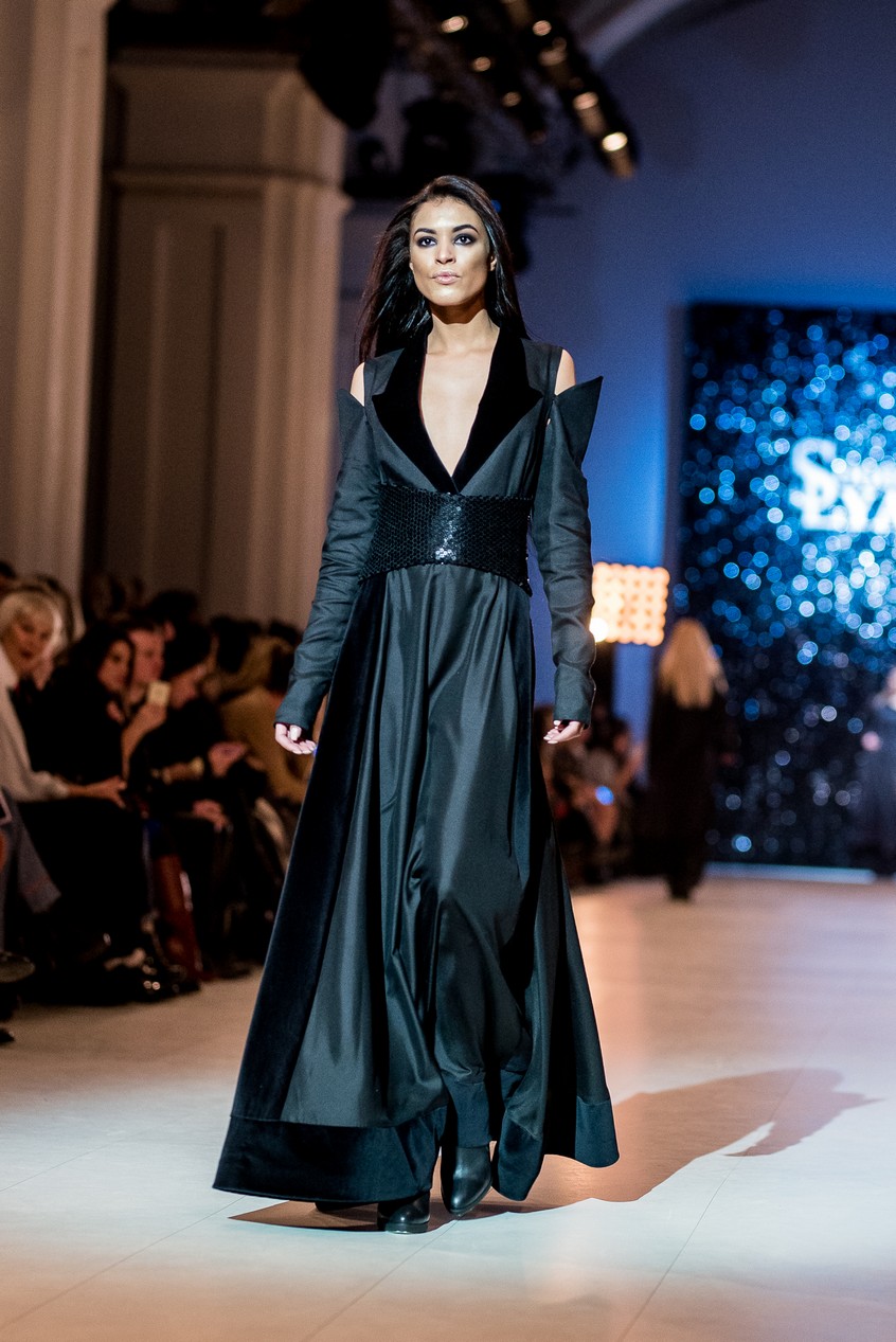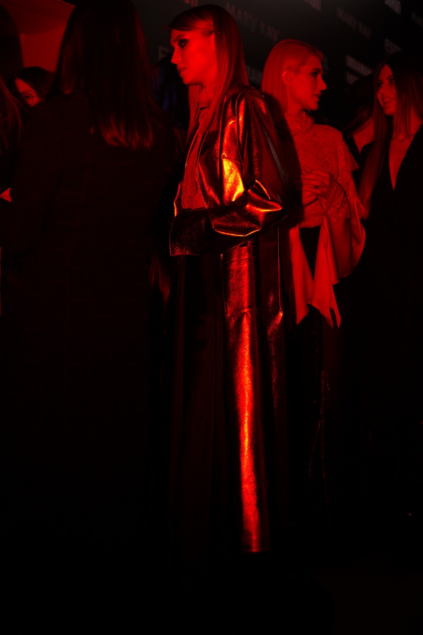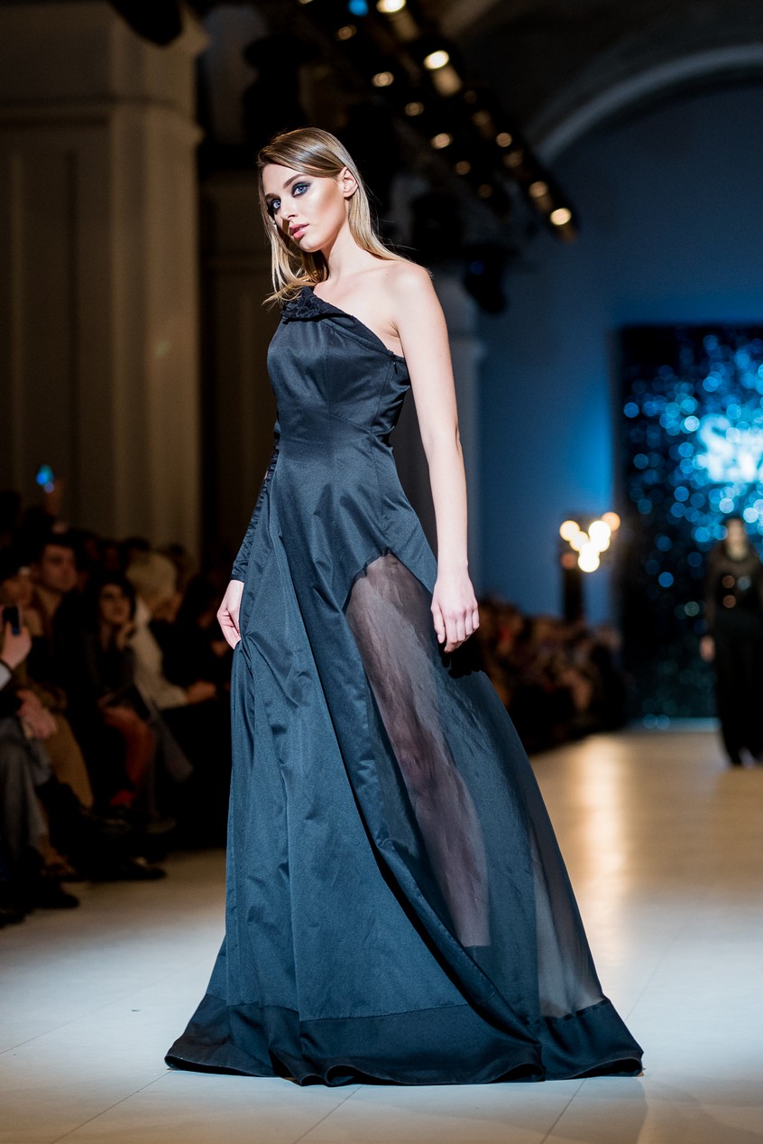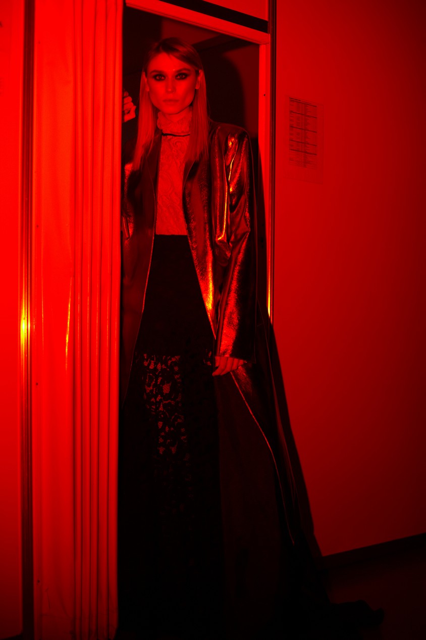 Выйти на улицу в платье, скорее напоминающем пиджак, или в полупрозрачной блузке, строгой деловой юбке и виниловом тренче — не проблема для героини Ляли. Главное — не забыть милую шляпку или берет. Дизайнер, будто вспоминая роман Стендаля «Красное и черное», посвящает этой комбинации цветов всю коллекцию. Так она проводит параллель между сильным характером и женственностью.
