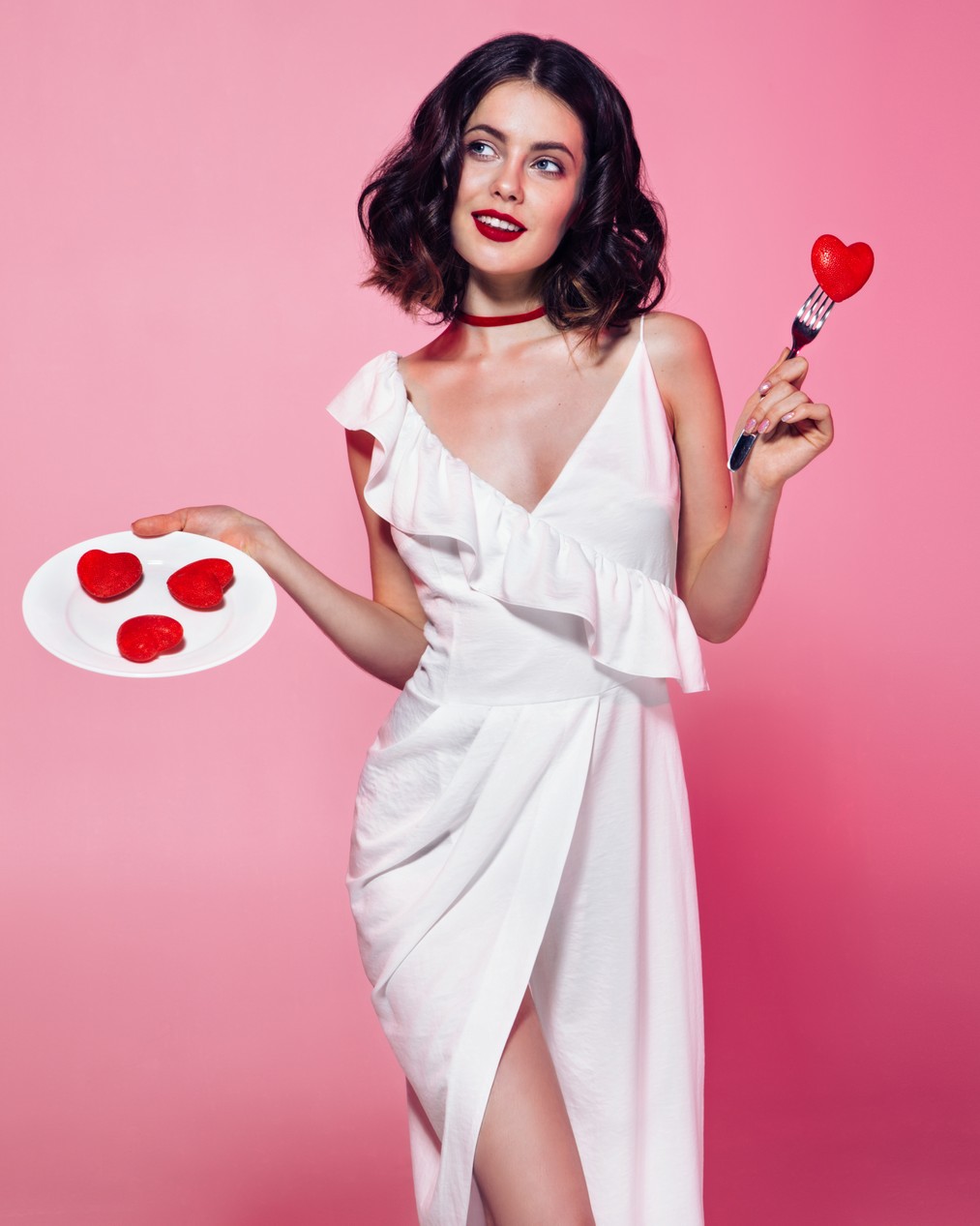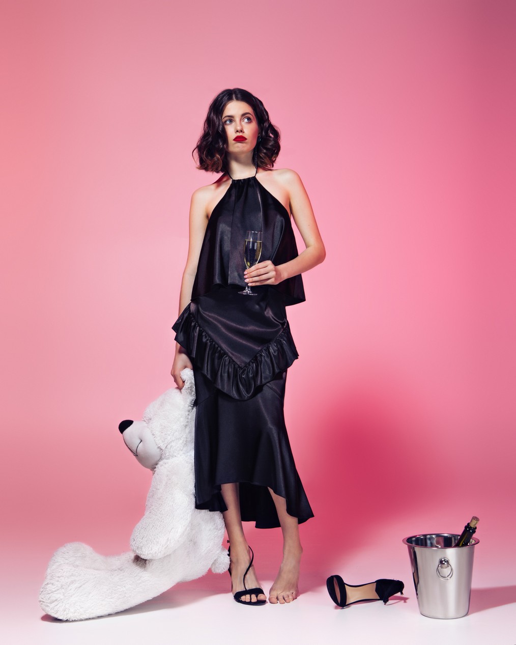 В новой съемке, посвященной празднику всех влюбленных, TAGO размышляют о счастье как о продолжительном пути, а не коротком моменте. Главной героиней стала Instagram-блогер Дива Оливка — она показала серию романтичных и слегка инфантильных нарядов. Среди них костюм из хлопка, чтобы проваляться весь день в постели, поедая шоколадные конфеты с помадкой, а затем выйти за еще одной коробкой в ближайший магазин, и несколько вариантов шелковых платьев: классическое черное, нежное розовое и яркое синее, — чтобы каждый раз примерять новый образ. Дизайнеры предлагают дополнить образ кожаными красными перчатками до локтя, объемными серьгами с жемчугом или тонким чокером.