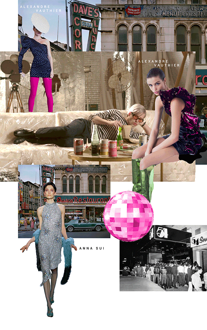 Вдохновившись недавним показом Tom Ford, на котором по подиуму, казалось, ходили завсегдатаи культового нью-йоркского клуба Studio 54, мы решили собрать образы, в которых было бы не стыдно прийти на крутую вечеринку и танцевать до упаду. Главной темой вечеринки мы выбрали 80-е — самый яркий и танцевальный период ХХ века. Вокруг царит атмосфера безумного веселья, на андерграундных тусовках и в клубах Парижа, Лондона и Нью-Йорка, словно соревнуясь, пляшут уличные танцовщики, никому не известные звезды и богемная элита. В этом безумном калейдоскопе смешались кислотные краски, мерцающие пайетки и блестки, «звериные» принты и перья.