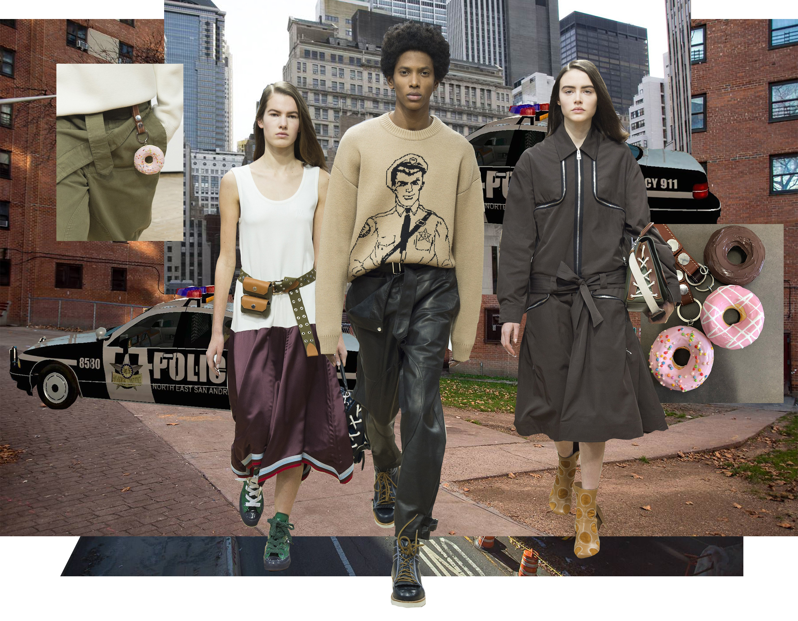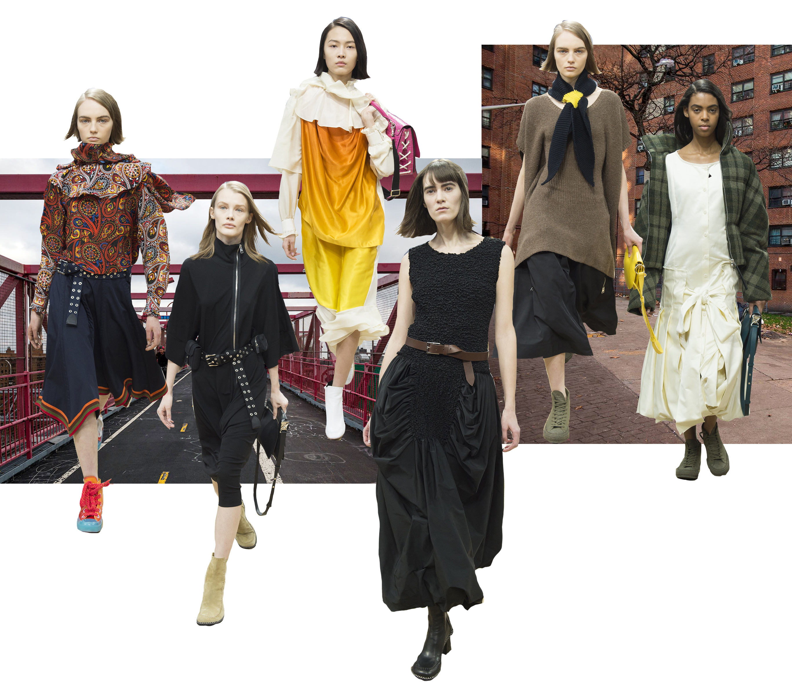 Но как бы там ни было, именно Андерсон умеет превращать простые вещи в «живучие» must-have — вспомнить только его разноцветные сумки с логотипом J. W. или всегда замысловатые и такие разные тренчи (по которым мы ежегодно сходим с ума). В этот раз последние — с заниженной талией и широкими ремешками, с которых свисают забавные брелоки-пончики. Впрочем, Джонатан, как и многие лондонские дизайнеры, уделяет много внимания деталям — ремни с двойным микрокошельком, которыми он подвязывает летящие майки и объемные свитера, а возле них — волнующие драпировки и нежные гофре, игривые банты на платьях и куртках и, конечно, сумки с контрастной шнуровкой по бокам.