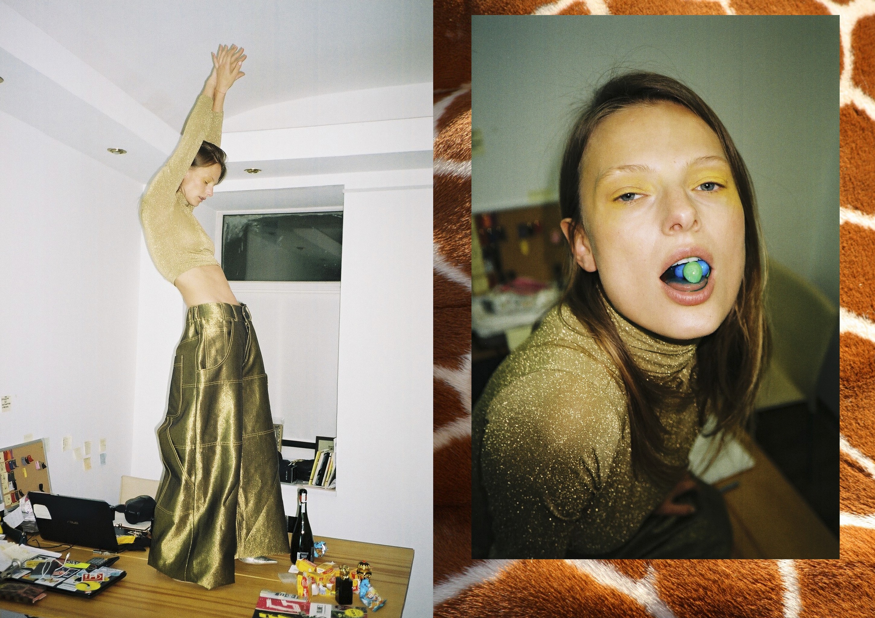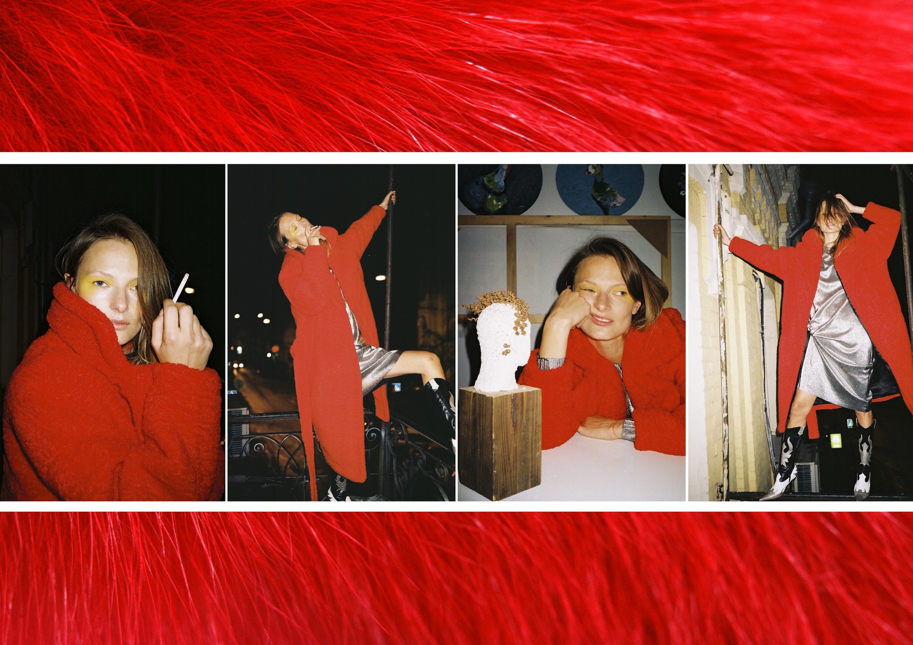 Белье FROLOV, шуба Ann Demeulemeester, винтажные мюли, колготки – собственность стилиста