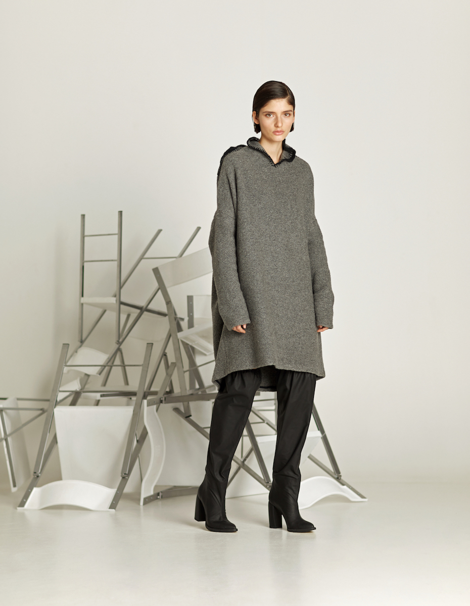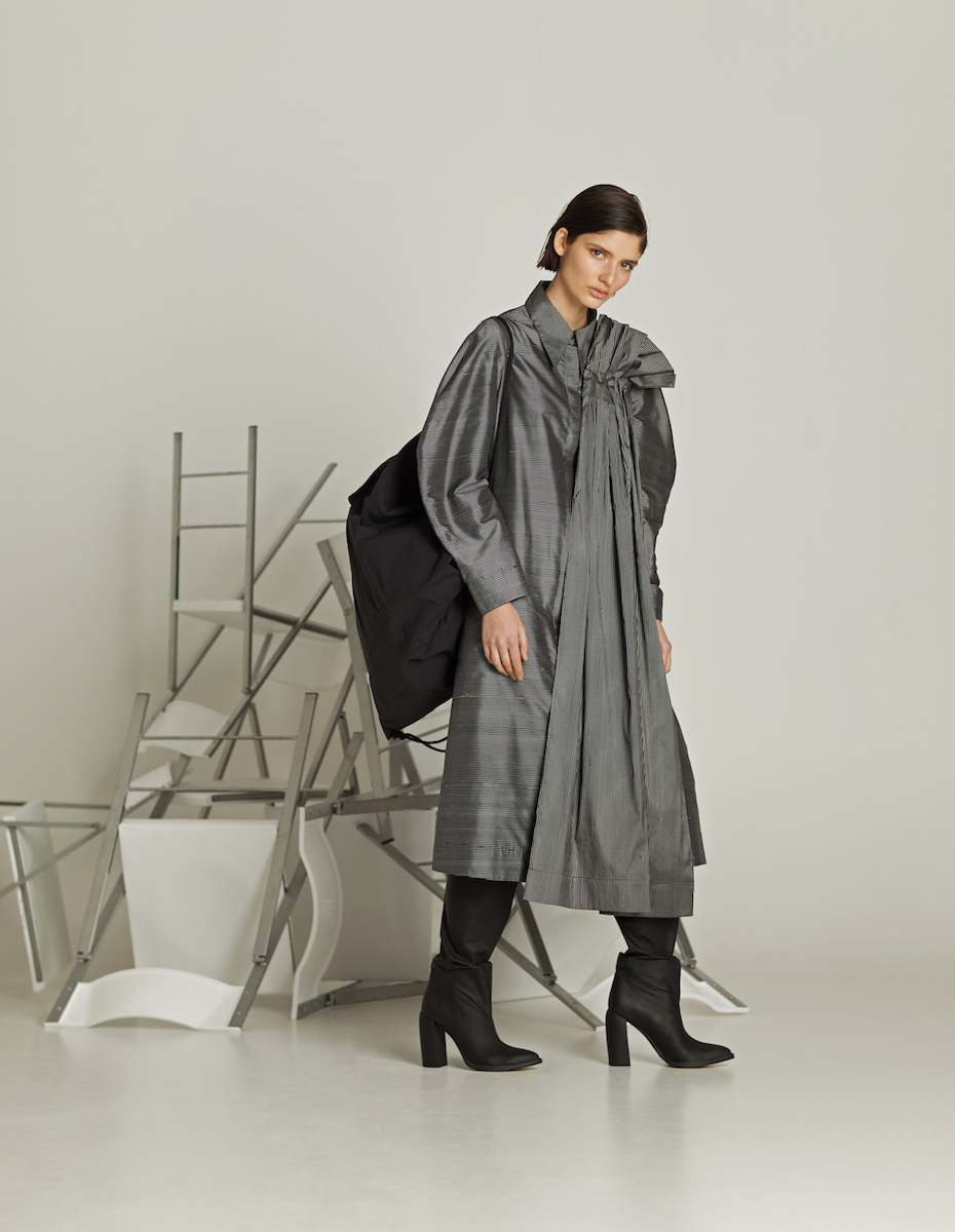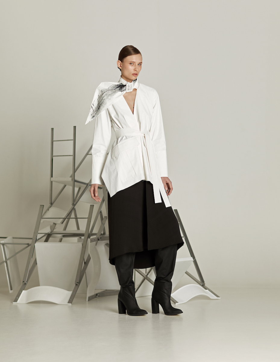 В этом сезоне Кристина Бобкова представила выверенную минималистичную коллекцию со свойственным для бренда архитектурным кроем. Дизайнер вдохновлялась собственным ремонтом нового помещения, куда студия переехала сразу после показа на Ukrainian Fashion Week.