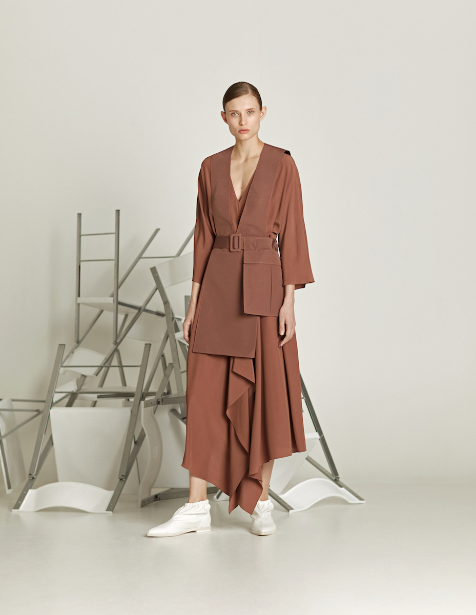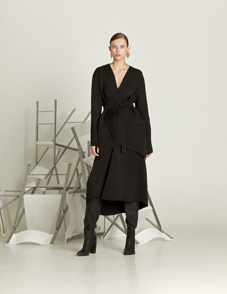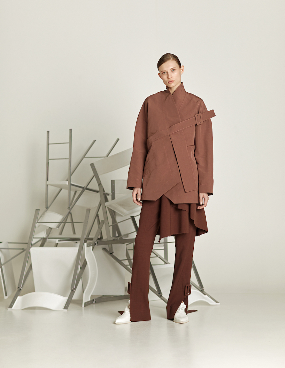 В этом сезоне Кристина Бобкова представила выверенную минималистичную коллекцию со свойственным для бренда архитектурным кроем. Дизайнер вдохновлялась собственным ремонтом нового помещения, куда студия переехала сразу после показа на Ukrainian Fashion Week.