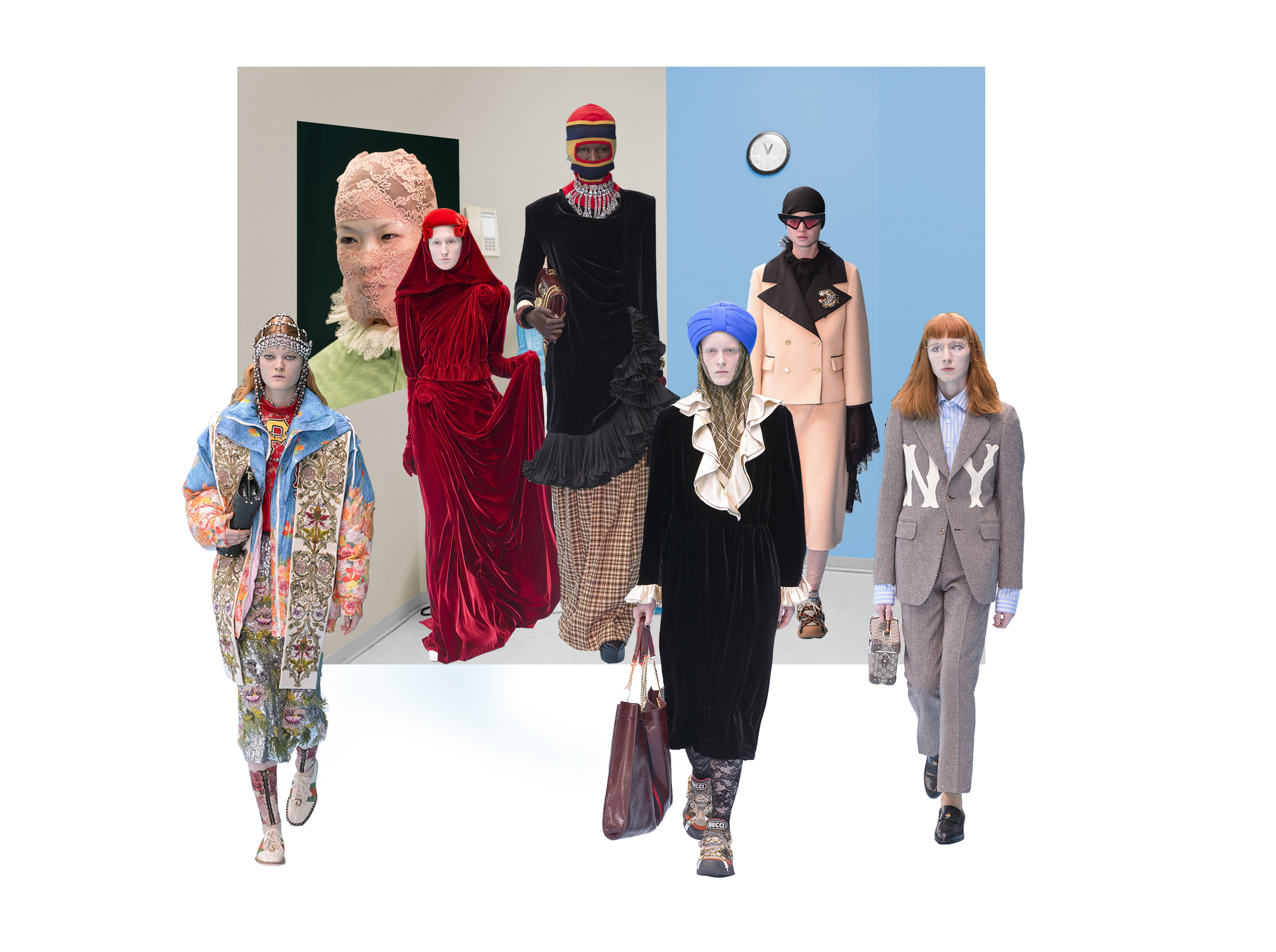 Впрочем, в этом сезоне очень много коллекций, у которых не то чтоб нет темы вовсе, но этой темой становятся общечеловеческие ценности или нематериальные вещи. Так, уже упомянутый выше Алессандро Микеле в своей новой работе – вы все точно ее помните, это та, что с драконами и головами, – размышлял о том, как каждый человек конструирует себя и свой образ из элементов популярной культуры. Отсюда многообразие выходов, которые со стороны действительно ничего не объединяют, кроме вот этой концепции пэчворка из идей.
