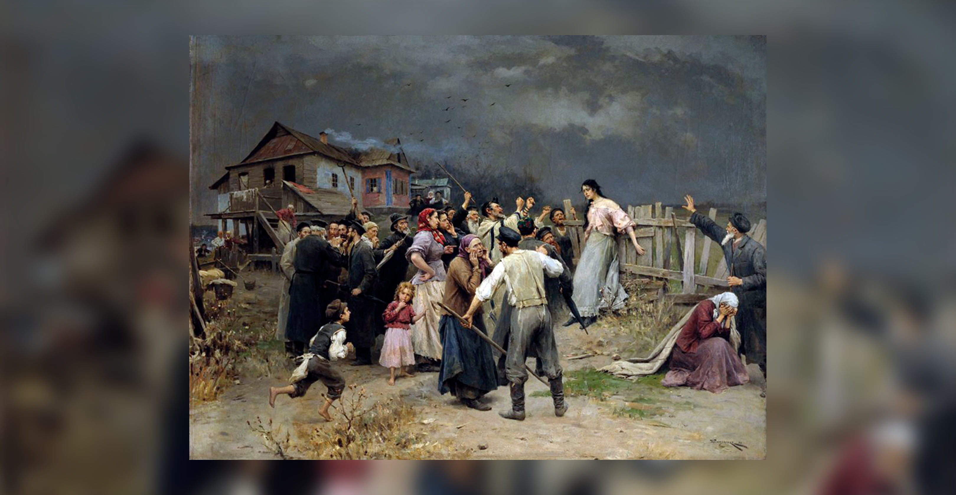 «Жертва фанатизму» написана у 1899 році. Цей соціальний твір було створено художником після того, як він прочитав в газеті про побиття членами іудейської громади дівчини, яка закохалася в українця і перейшла в християнство. Перед написанням картини Пимоненко відвідав містечко Кременець на Волині, де зробив багато ескізів з натури. На картині зображена молода дівчина в розірваній сорочці, яка рятується від розлюченого натовпу, на її шиї видно хрест. Прямо навпроти неї стоїть чоловік в іудейському ритуальному одязі. Багато хто з натовпу озброївся палицями. Батьки дівчини знаходяться трохи осторонь: мати ридає, відвернувшись від дочки, а батько підняв праву руку на знак зречення від неї.