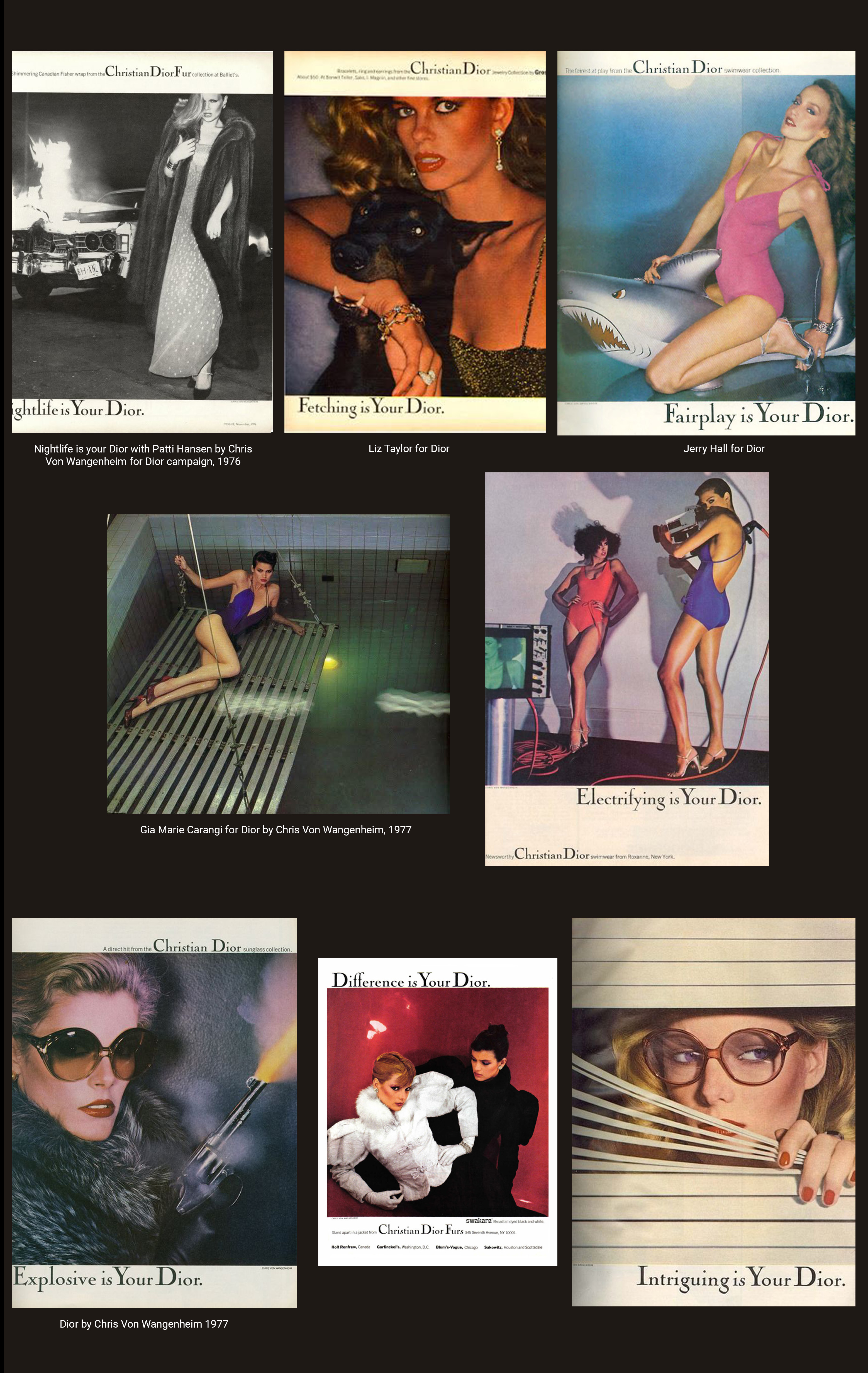 За рекламными кампаниями Dior в конце 70-х — начале 80-х стоял Кристоф фон Вангенхайм. Его фотографии приводили в замешательство консервативно настроенную публику и запоминались своей провокационностью, смелостью и, конечно, красотой. Именно Вангенхайм открыл модному миру супермодель Джию Каранджи, которая в его объективе ненароком оголяла грудь или страстно обнимала другую модель. В каждом снимке Вангенхайм обязательно вызывал эмоцию, не всегда позитивную, так он снял Лизу Тейлор за секунду до укуса черным доберманом, а потом вручил ей револьвер, который дымился от недавнего выстрела.