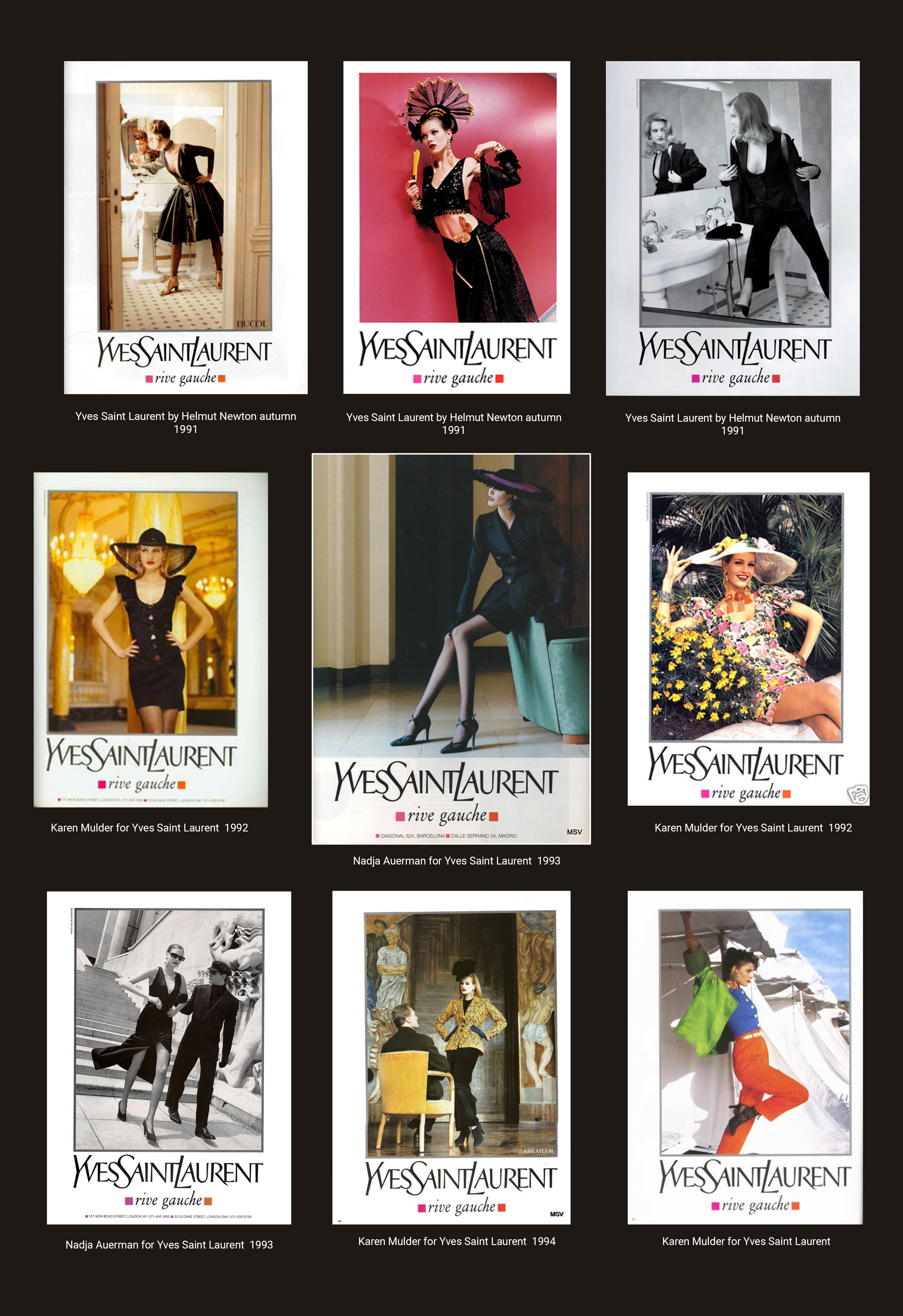 Самые запоминающиеся рекламные кампании Yves Saint Laurent, конечно же, были в объективе Хельмута Ньютона. Начнем с того, что начало 80-х — это особое время для Ива Сен-Лорана: именно тогда он решил экспериментировать с силуэтами и представил свое платье-сердце. В его коллекциях появились яркие цвета, вдохновленные Марракешем, и в его творчестве начался новый, зрелый этап, в котором он смело высказывался на тему женской эмансипации. Именно Хельмут Ньютон видел как никто другой героиню Сен-Лорана, в своих снимках он изображал сильных женщин, которых сопровождали мужчины, а не наоборот.