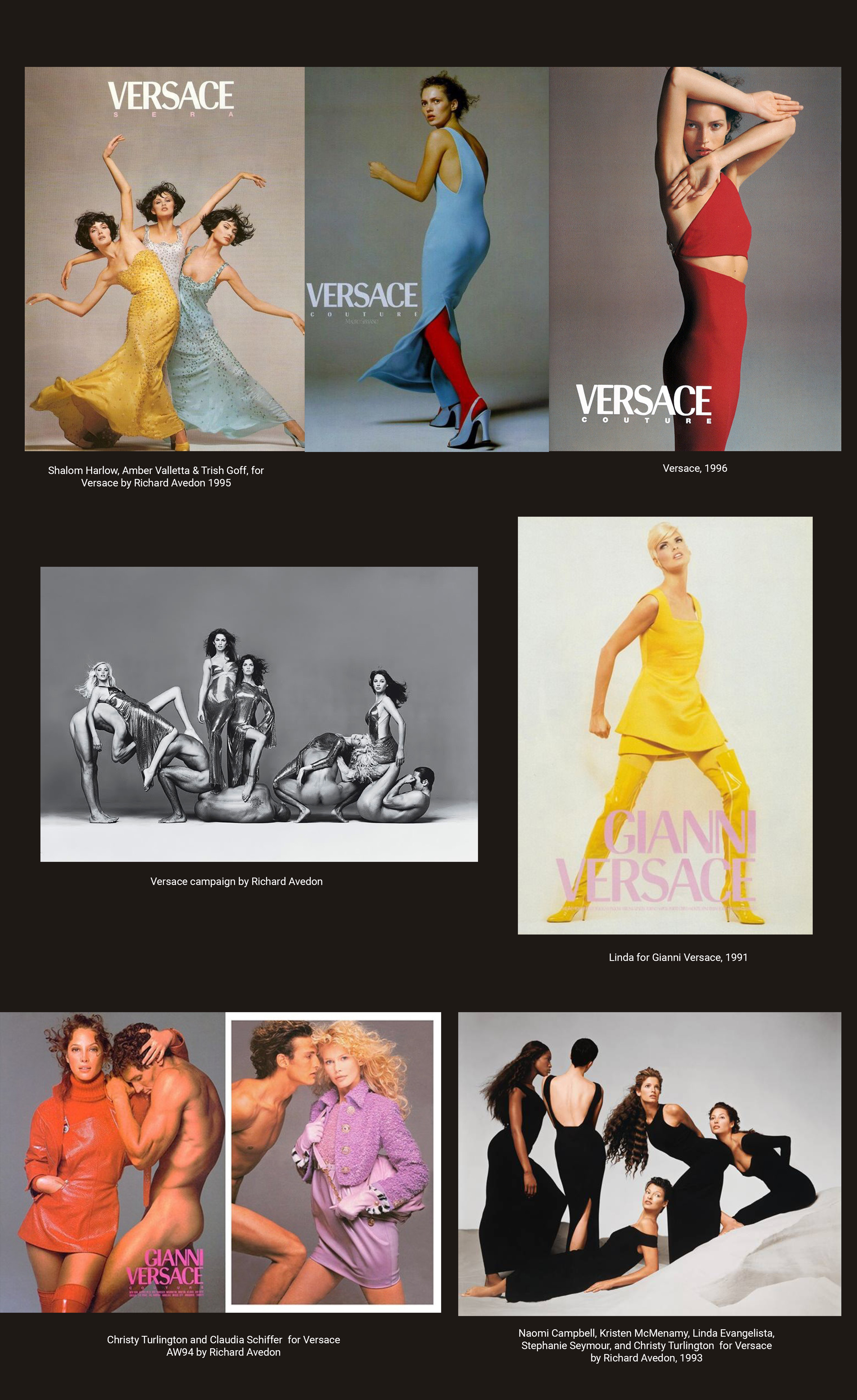 Если уж ностальгировать по эпохе супермоделей, то без Versace не обойтись. Этот бренд мы оставили напоследок, чтобы добить вас красотой. Пожалуй, самые провокационные рекламные кампании были именно у Джанни, в объективе у Ричарда Аведона. Именно он решил приставить к Кристи Тарлингтон и Клаудии Шиффер двух раздетых мужчин и тем самым подчеркнуть силу женщины, которая выбирает Versace. Также мы не можем обойти стороной знаменитые “оргии красоты”, в которых Аведон поставил Синди Кроуфорд на раздетого мужчину в позе эмбриона.