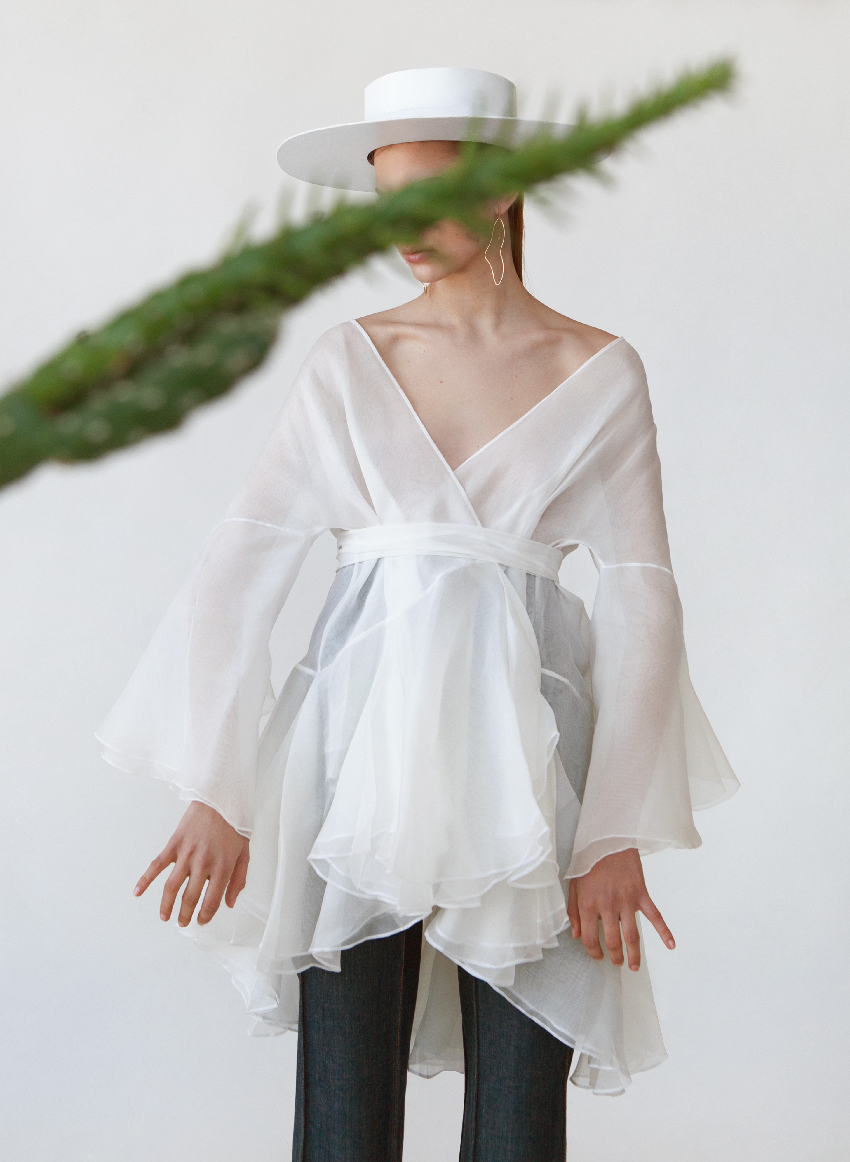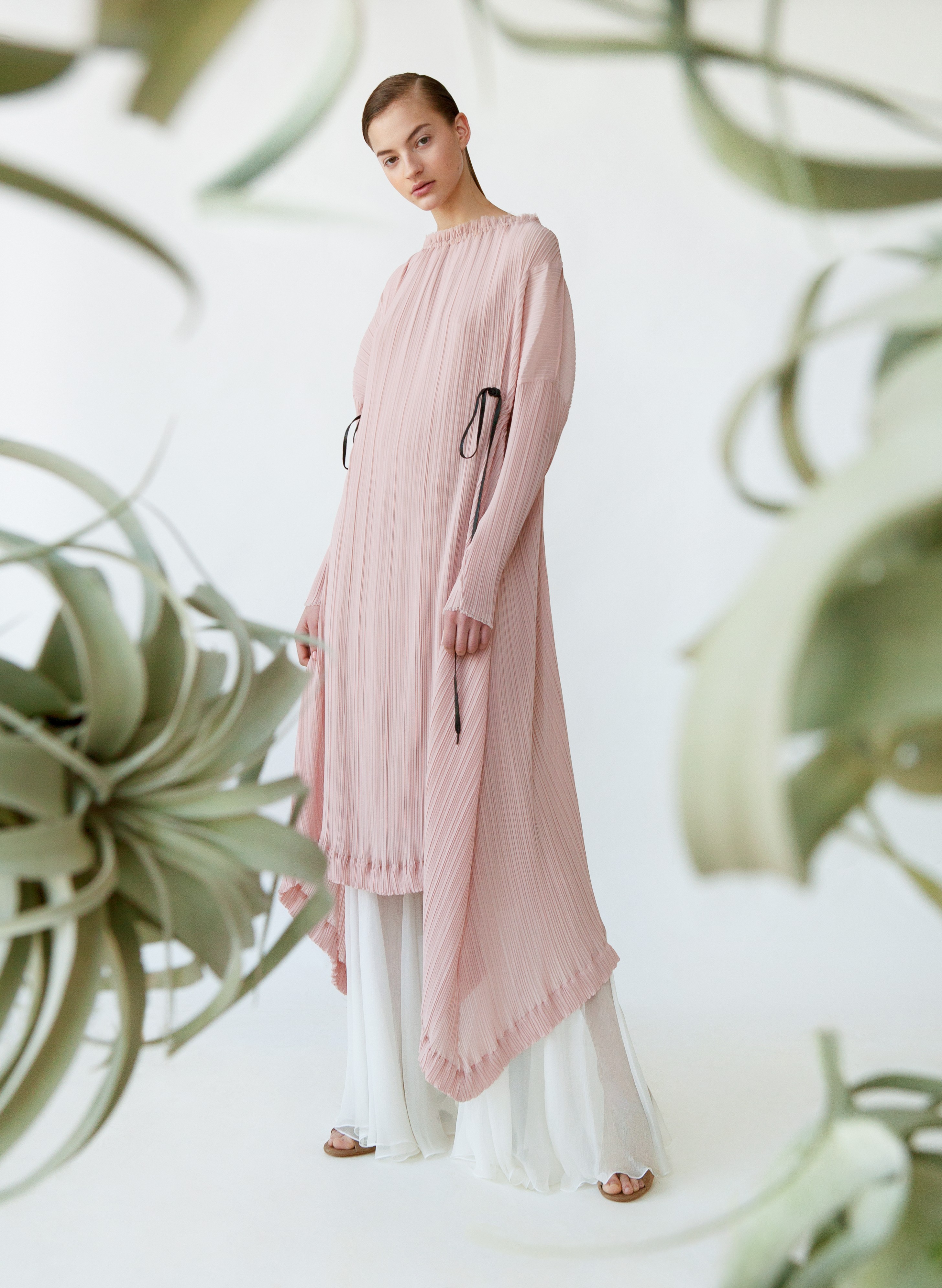 Такая возможность, конечно, есть не всегда; восхищаясь опытом Сингапура, мы рекомендуем взращивать сады и растения вокруг себя и помогать и себе, и экологии. Но если такой возможности нет, сработает одежда, вдохновленная красотой растений и цветов: насыщенные оттенки зеленого, повторяющие многообразие палитры стеблей и крон, драпировки и оборки, напоминающие лепестки, и плавные и чистые формы, которые может создавать только природа.