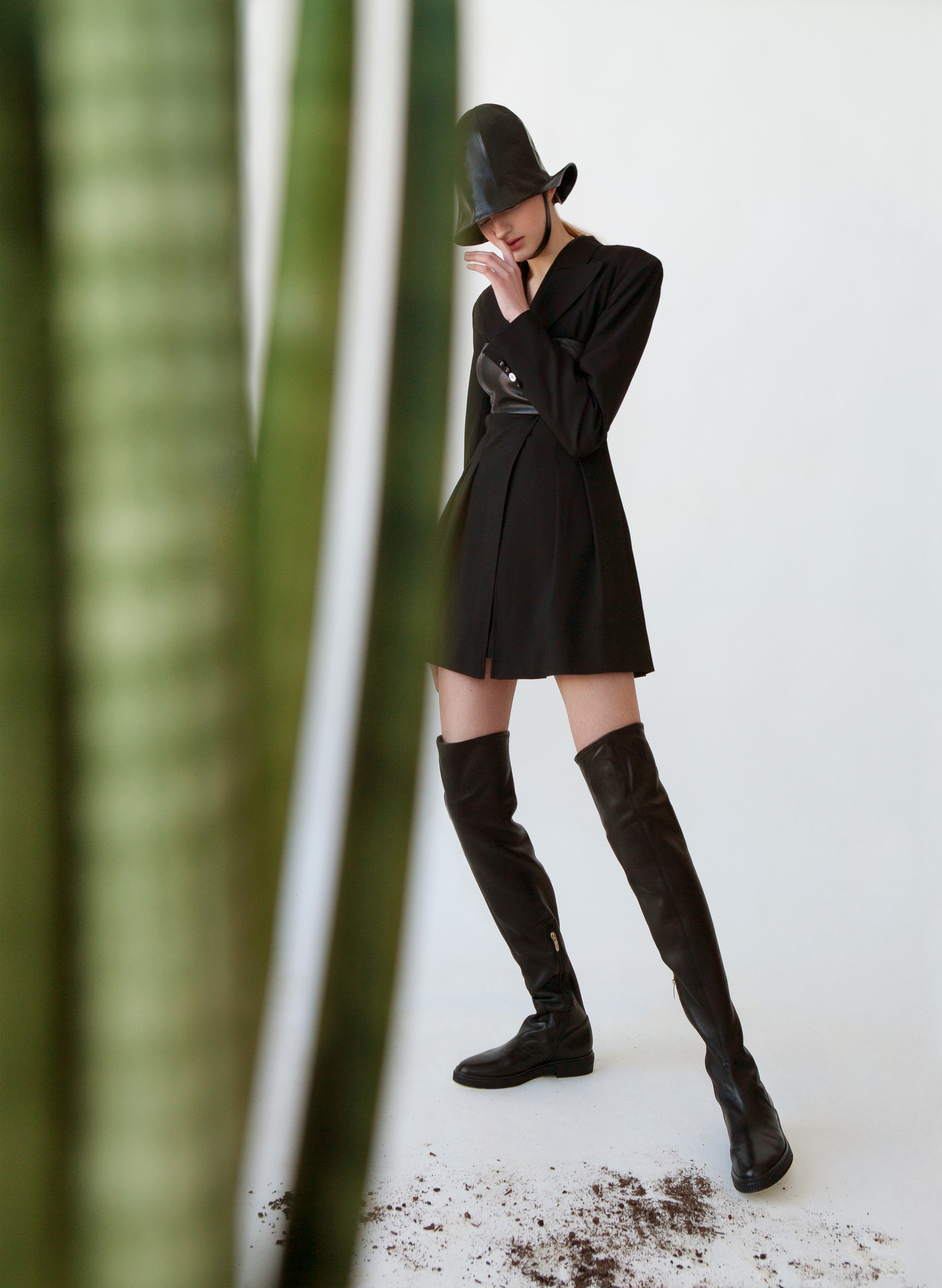 Кожаный лиф, шляпа, пиджак — Elenareva, ботфорты — Sergio Rossi