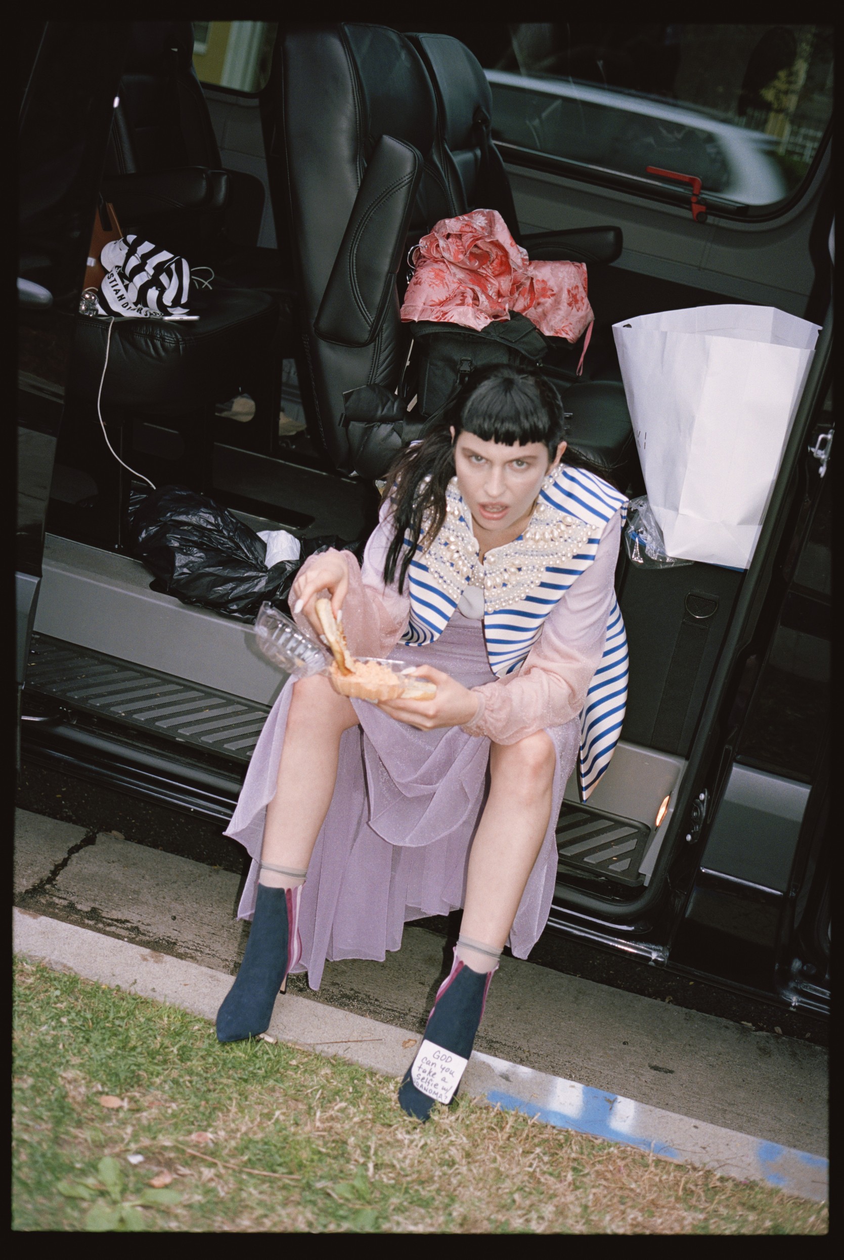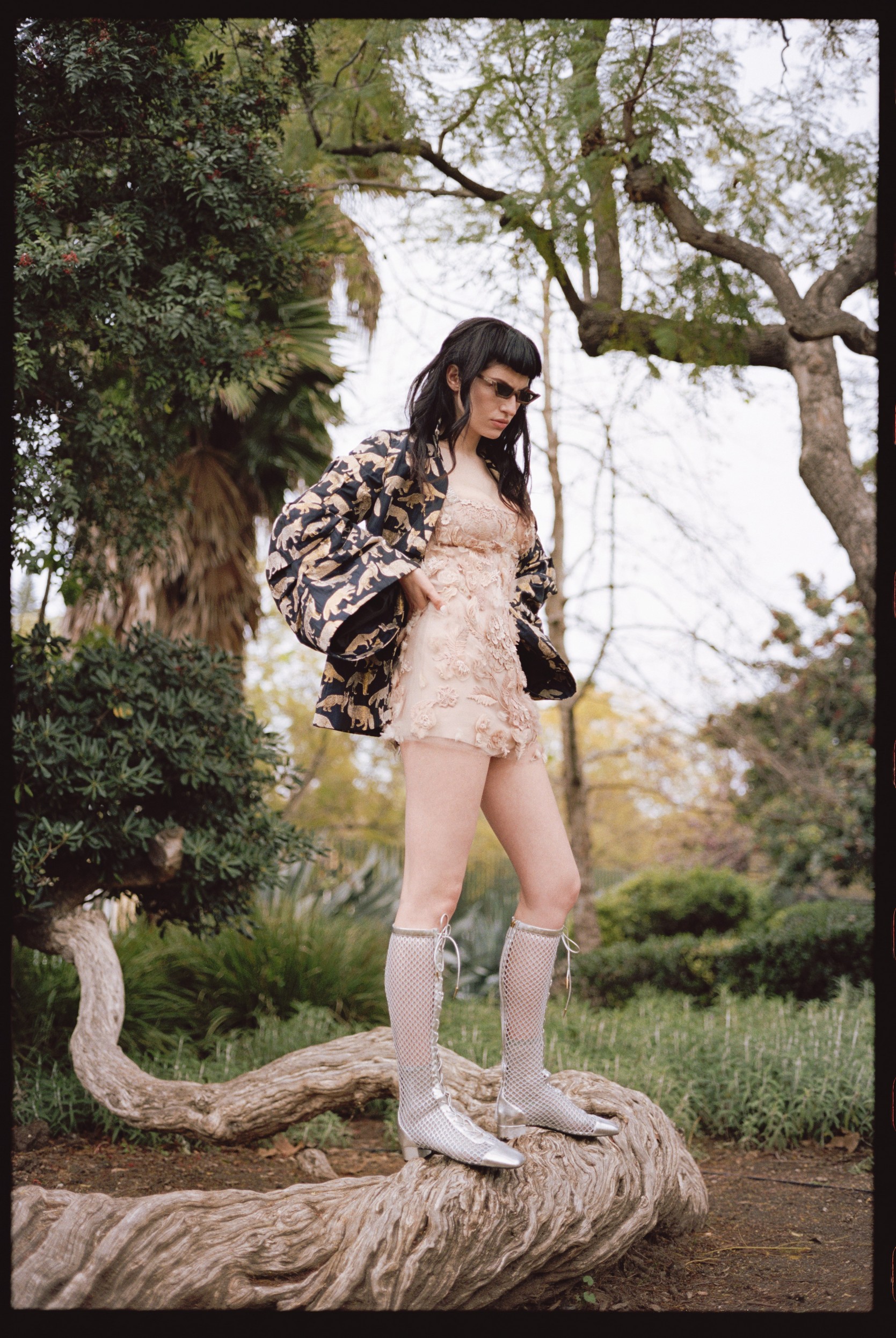 Платье, ботинки - DIOR, топ-кимоно MARIAM GVASALIA, очки N.B