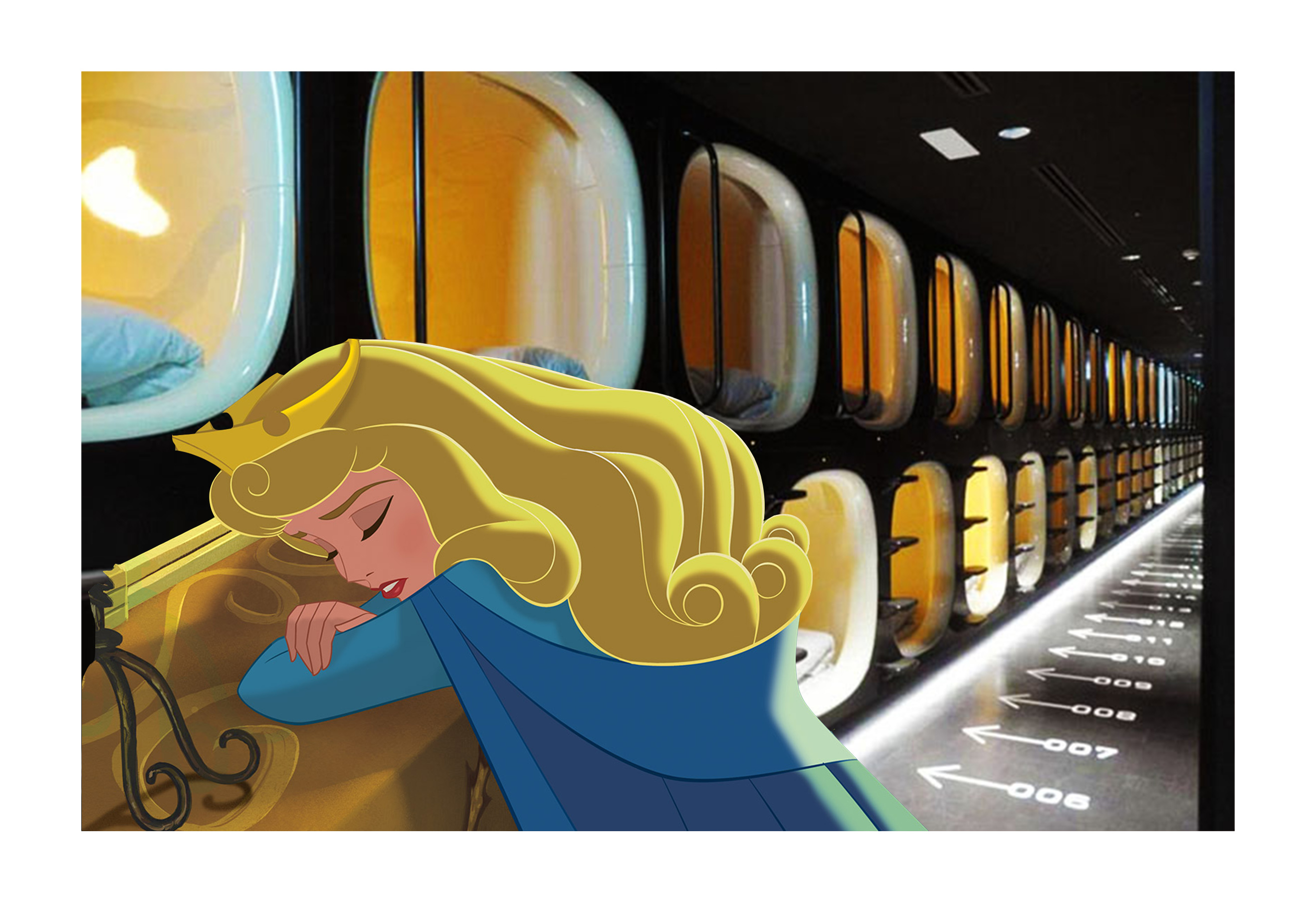 После того как NASA опубликовало исследование о пользе короткого сна, Аврора решила вложить стартовый капитал, доставшийся ей от фей, в капсулы для сна, которые она решила сдавать в аренду крупным IT-компаниям. Этот бизнес принес принцессе отличный доход, у нее свободный рабочий график, и она может позволить себе подольше поспать в будни.