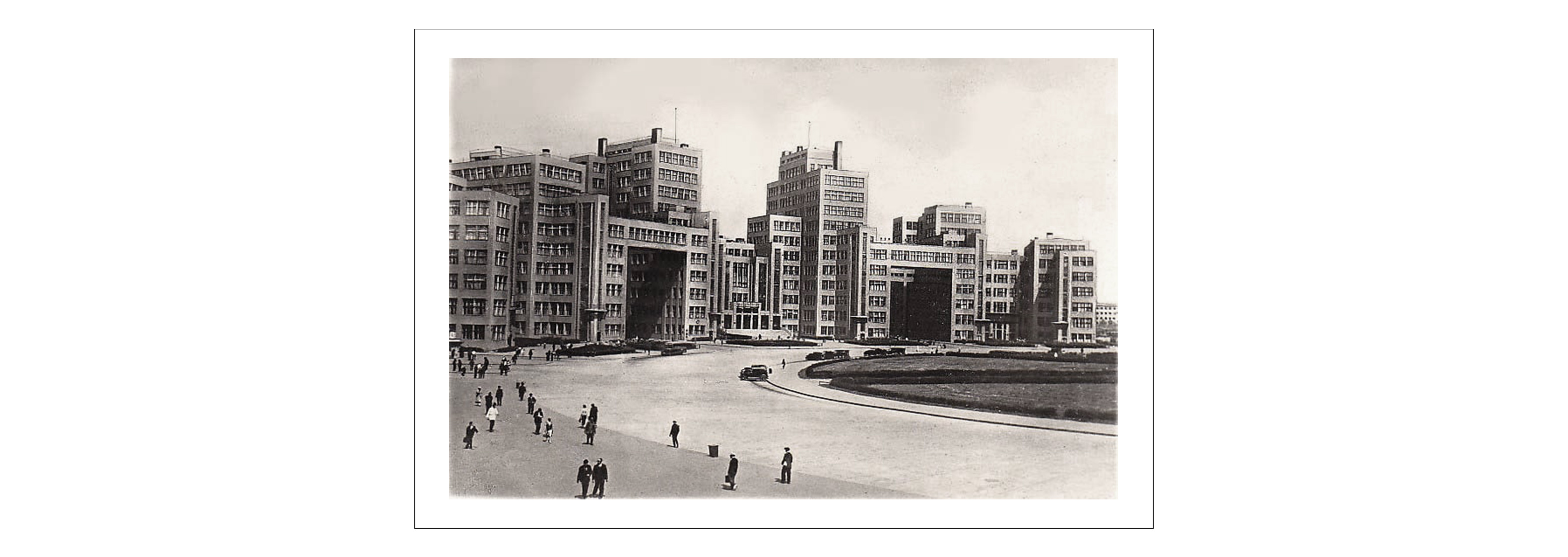 На дворе 1920-е: наступает пора конструктивизма, который мы знаем по архитектурным проектам. В этот период случается массовая индустриализация, а города вынуждены справляться с прибывающими потоками людей. Конструктивизм выдвигает свой ответ на повальную урбанизацию в виде уникальной, специфической архитектуры. Главной обителью конструктивизма становится Харьков, который с 1919-го по 1934-й год был столицей УССР. Символом Харькова было здание Госпрома – шедевр, с которым множество современных художников до сих пор ведут диалог.