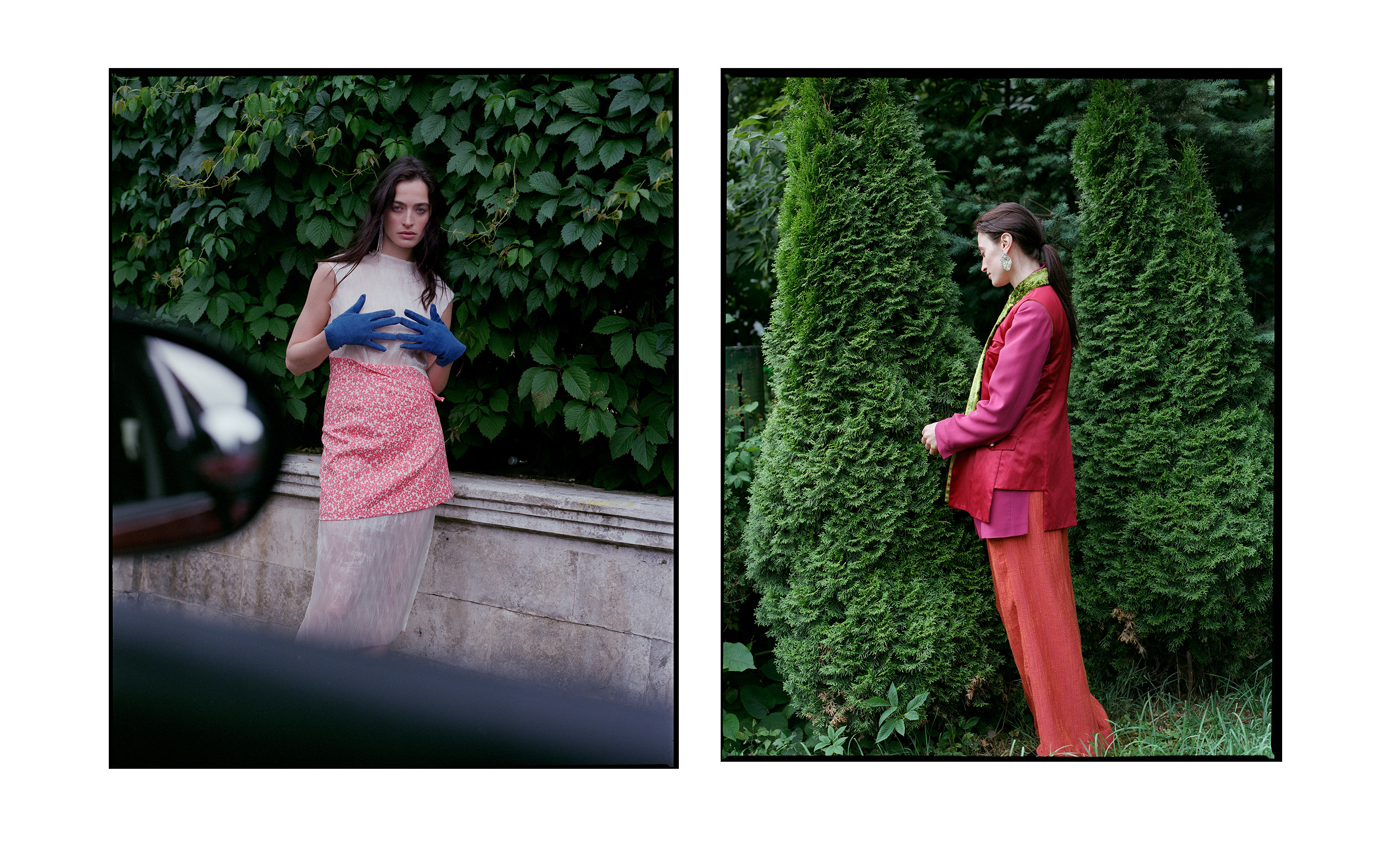 Слева: платье и перчатки Dokuchaeva, юбка Libellulas, обувь Stradivarius, серьга Aka Nanita