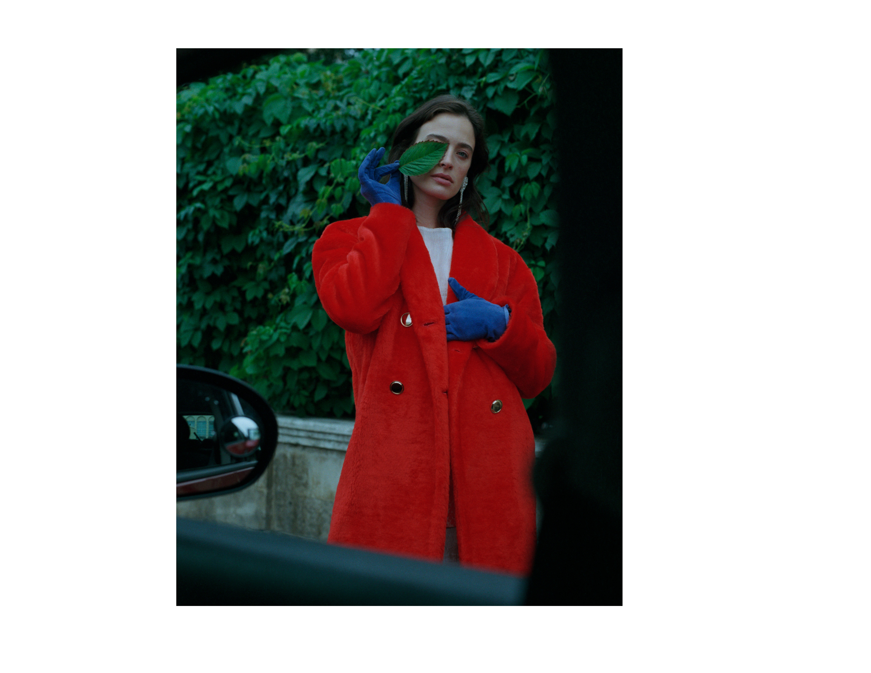 Платье, пальто, перчатки Dokuchaeva, серьга Aka Nanita