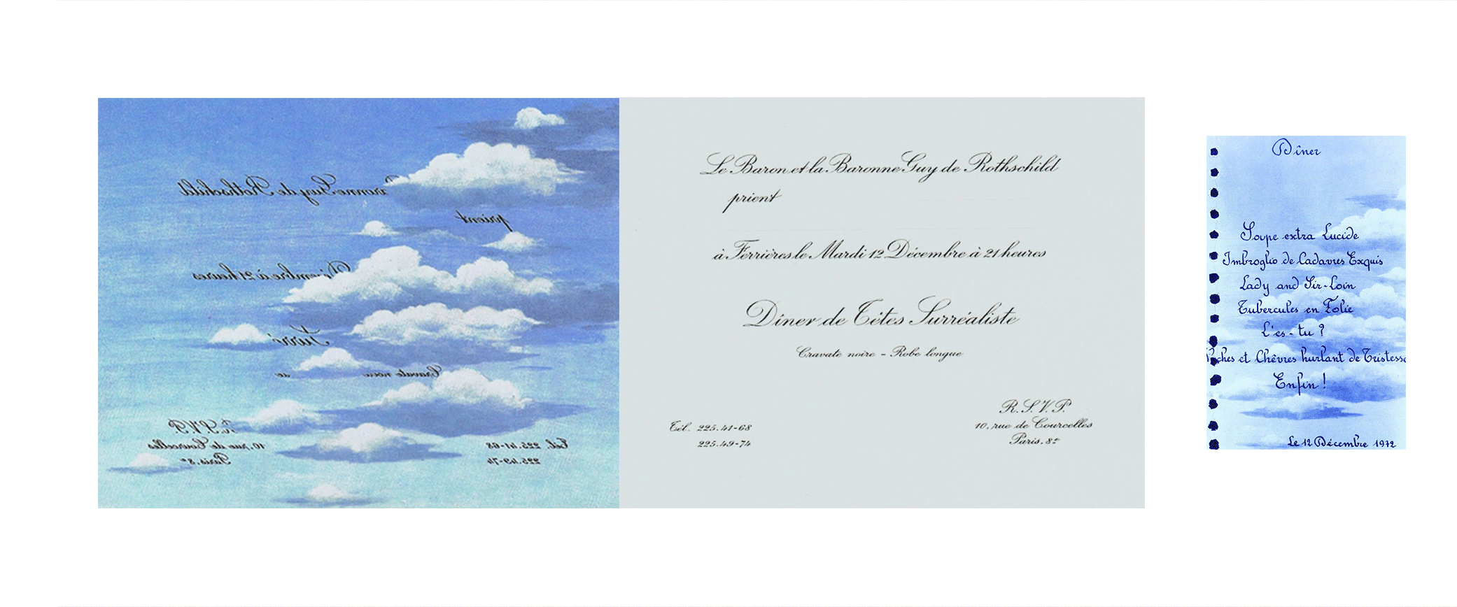 Темой вечера стал сюрреализм и сатанинские ритуалы: уверены, что бал Воланда, то есть Люцифера, который описал Булгаков, выглядел приблизительно так же. Пригласительные на вечеринку были созданы по мотивам работ бельгийского художника-сюрреалиста Магритта, работы которого восхищали Мари-Элен де-Ротшильд, главную виновницу торжества. Прочитать, что написано на открытках, можно было только с помощью зеркала. Кстати, главным по созданию костюмов Ротшильды назначили самого Сальвадора Дали.
