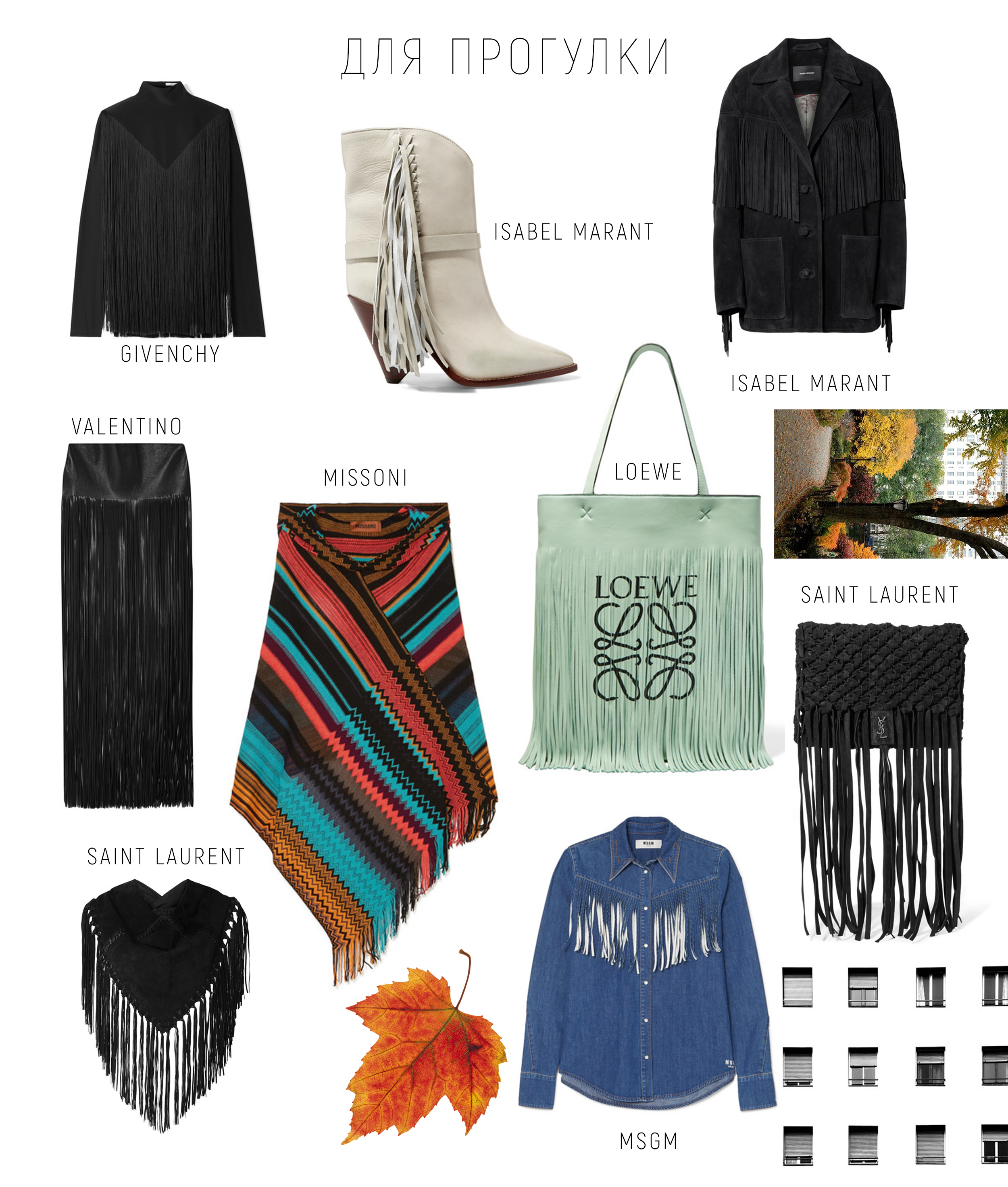 Бахрома – один из самых ярких трендов осеннего сезона, который просочился буквально во все сферы жизни. Как универсальный стилеобразующий элемент бахрома может освежить классические деловые образы, воссоздать ковбойский стиль жителей Среднего Запада для долгих прогулок или сделать лук для вечеринки максимально эффектным. Рассматриваем три главных ипостаси бахромы этой осенью и смело добавляем ее в свой гардероб.