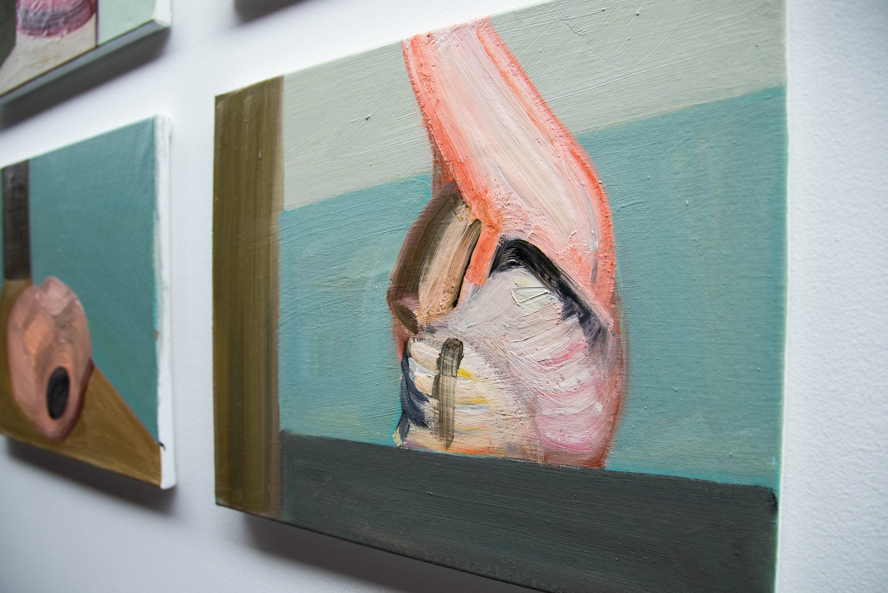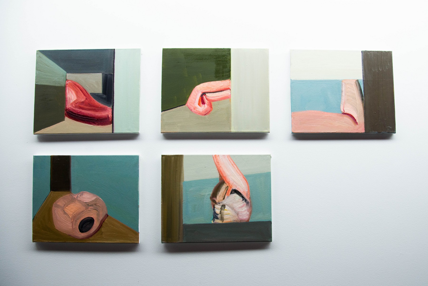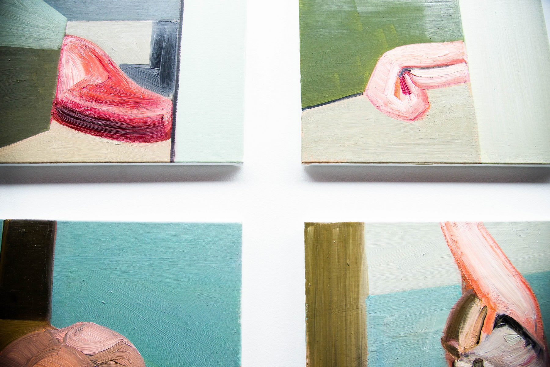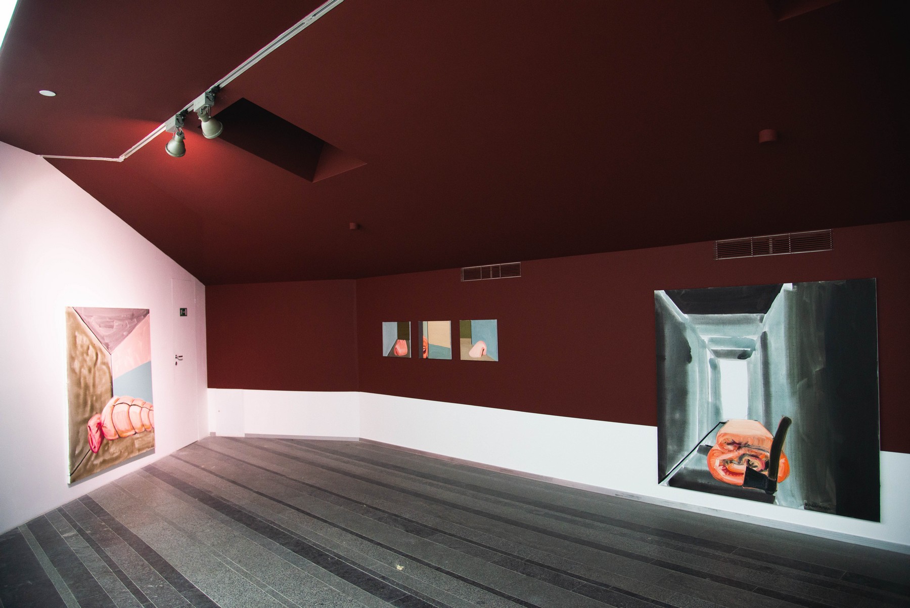 Владе Ралко мы предложили участвовать в нашей выставке, и оказалось, что совсем недавно она создала серию работ "Призрак свободы", в которой изображены интерьеры Каневской турбазы, которые Влада населяет антропоморфными образами. Здесь фрагменты женских тел зажаты архитектурой, то есть в первую очередь она говорит о репрессивных советских пространствах, об унификации, в которой человеческое тело должно существовать.