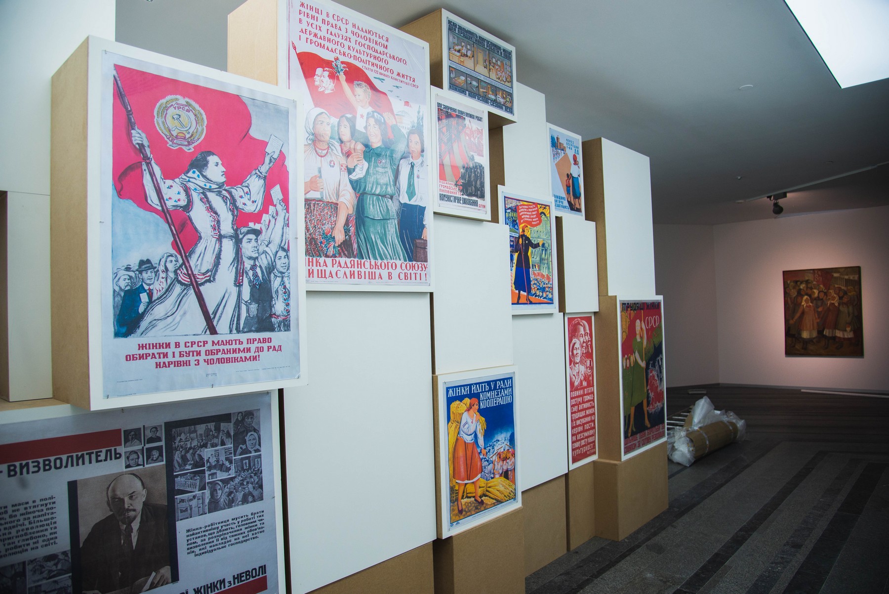 Во второй, политической, зоне мы объединили картину "Пусть живет 8 Марта" художницы-бойчукистки Оксаны Павленко и агитационные плакаты 1920-1930-х годов. Многие из них публично будут представлены впервые, эти плакаты хранятся в Национальной библиотеке Украины им. В. И. Вернадского, мы их сфотографировали и напечатали специально для выставки.