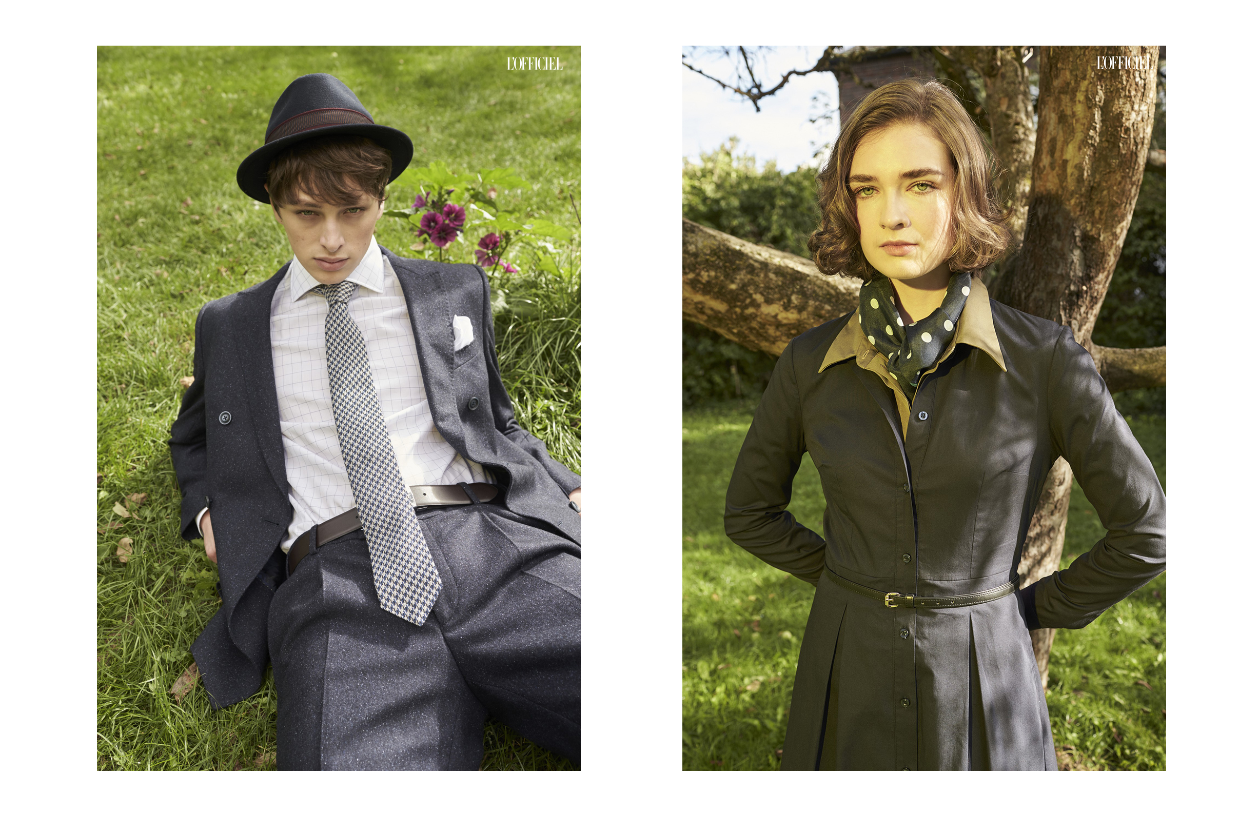 Справа: на Рене — блуза Max Mara, брюки Strenesse, пояс Michael Michael Kors, шляпа Roeckl, носки Falke, туфли Scarosso. На Феликсе — пиджак, рубашка и карманный платок Hackett, брюки Michael Kors, галстук Digel, шляпа Stetson, носки Falke, туфли Scarosso