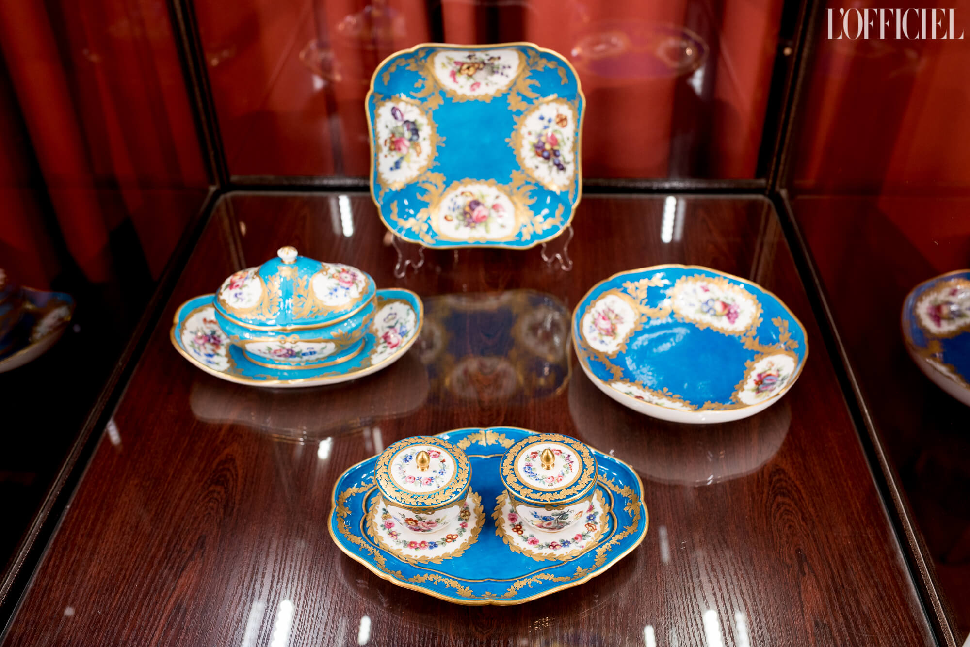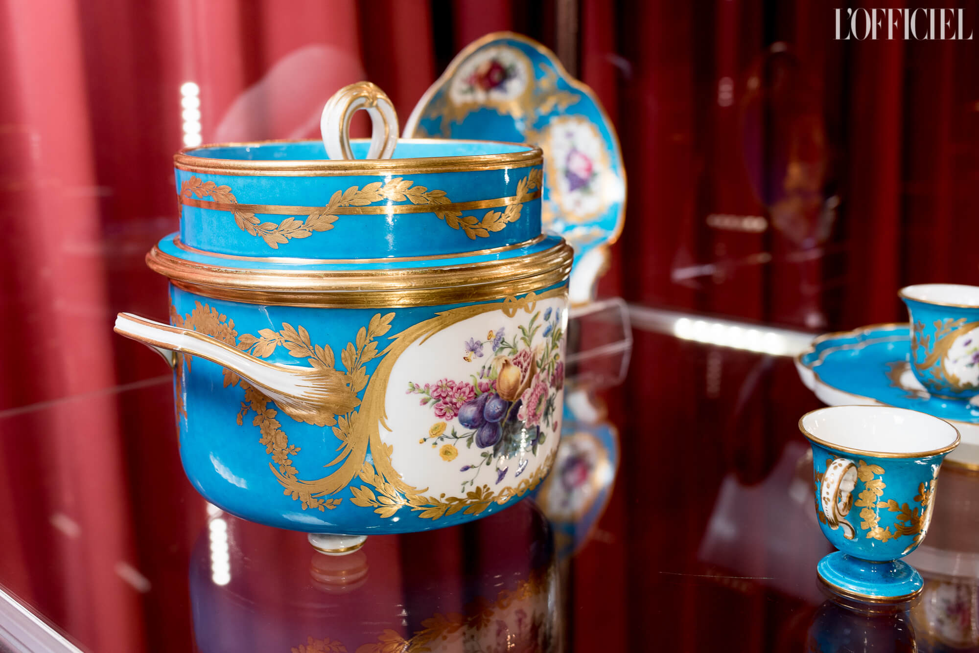 В нашем музее сохранилась большая часть десертного сервиза знаменитой Севрской мануфактуры из Франции, это была королевская мануфактура, а ее визитной карточкой являлся небесно-голубой цвет. Мастера покрывали этим цветом посуду, оставляя резервные места, которые потом расписывали и наносили густую позолоту. Самая интересная и необычная часть этого сервиза – мороженица, которая современным гостям может напомнить большую кастрюлю. На дно такой мороженицы укладывали колотый лед, на него ставили вкладку, в которой и было мороженое, а потом закрывали крышкой с бортами, в которые тоже укладывали лед, – таким образом и сверху, и снизу мороженое охлаждалось. Такая форма крышки была взята из старой французской сковородки – чтобы еда не охлаждалась, сверху на нее клали горячие угли. Кстати, мороженое ели из маленьких чашечек-стаканчиков и считается, что первой их стала использовать маркиза де Помпадур, поскольку в документах Севрской мануфактуры именно она значится первой заказчицей такой чашки.