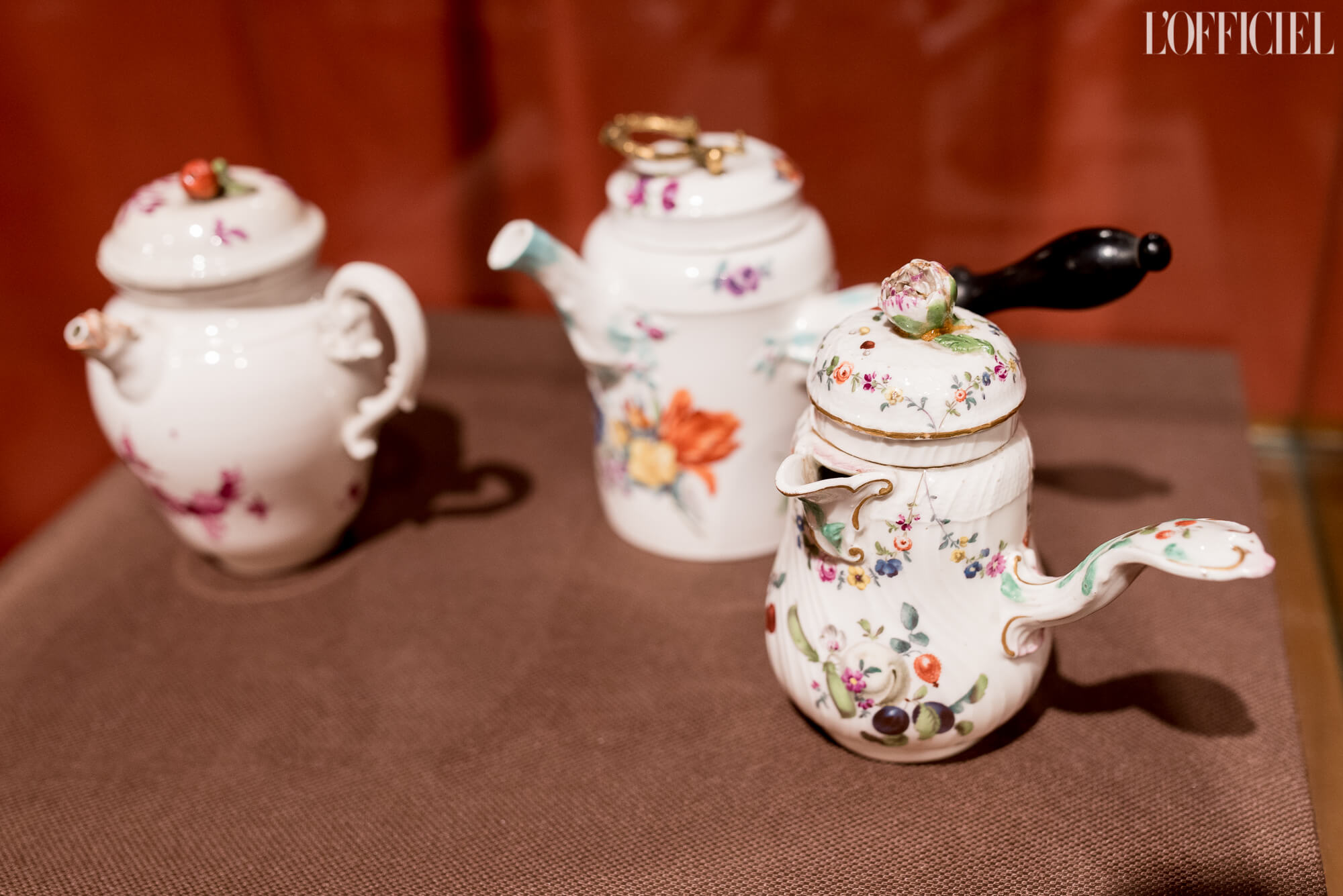 Одна из самых ценных вещей этой выставки, которая никогда до этого не экспонировалась, – чайник из так называемого "мягкого фарфора", созданный в 20-е годы 18 столетия на французской мануфактуре Сен-Клу. В те времена фарфор называли "белым золотом", поскольку за него боролась вся Европа, – из Китая и Японии привозили посуду, но никак не могли воссоздать его. Ближе всех к созданию фарфора оказались французы, которые и открыли "мягкий фарфор", напоминающий стекло, поскольку в него не добавляли глину, которую как основной ингредиент фарфора открыли чуть позже немцы, на Майсенской мануфактуре.