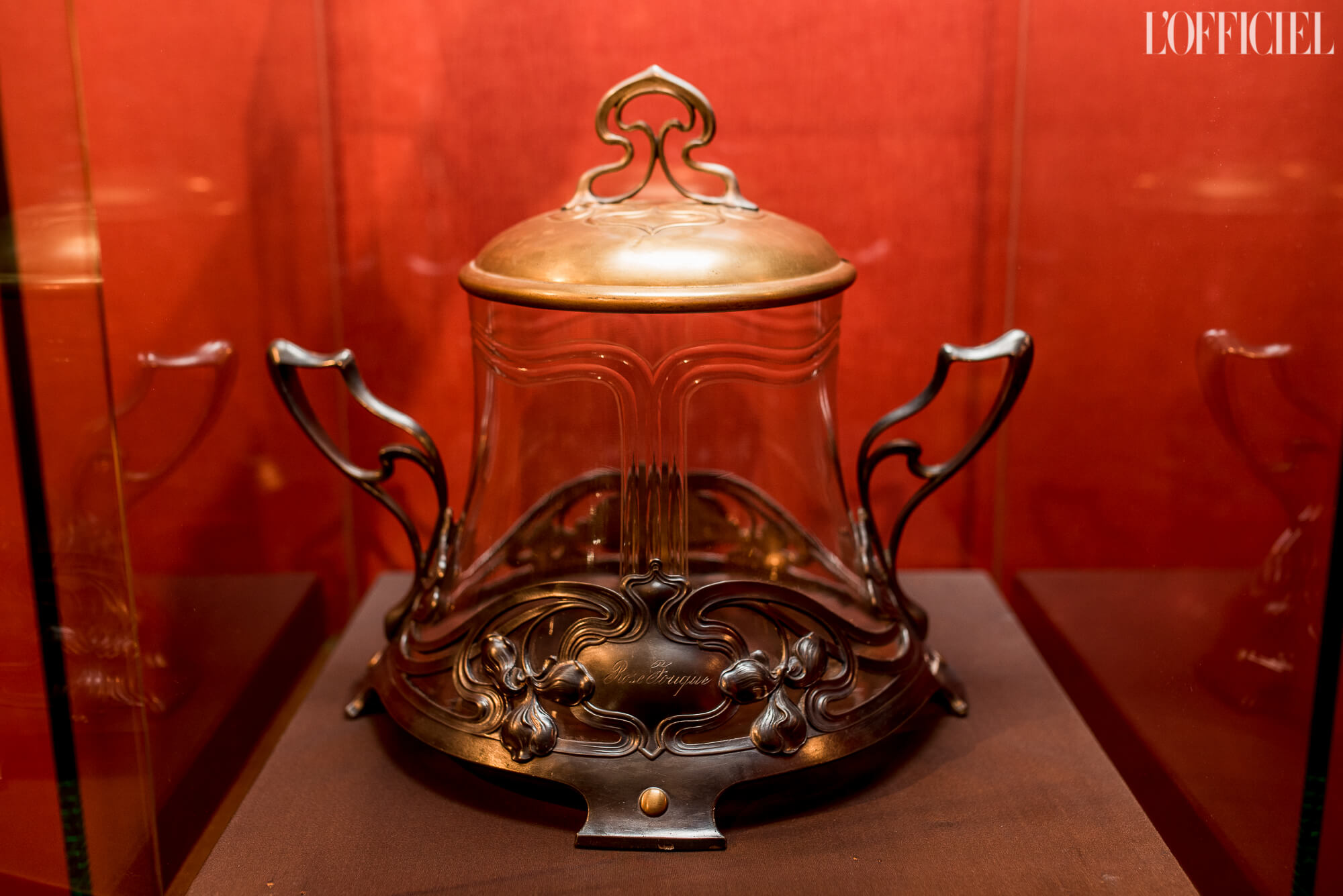 Отдельный экспонат на нашей выставке – крюшонница, большая емкость для крюшона. Его всегда наливали большой ложкой или черпаком, специально для которого в крышке делали отверстия. По легенде, крюшон изначально не был королевским напитком, его изобрели слуги, которые после балов и пиров, заливали кусочки фруктов оставшимся вином и затем настаивали. Спустя какое-то время кто-то угостил таким напитком своего хозяина, после чего крюшон стал очень популярным.