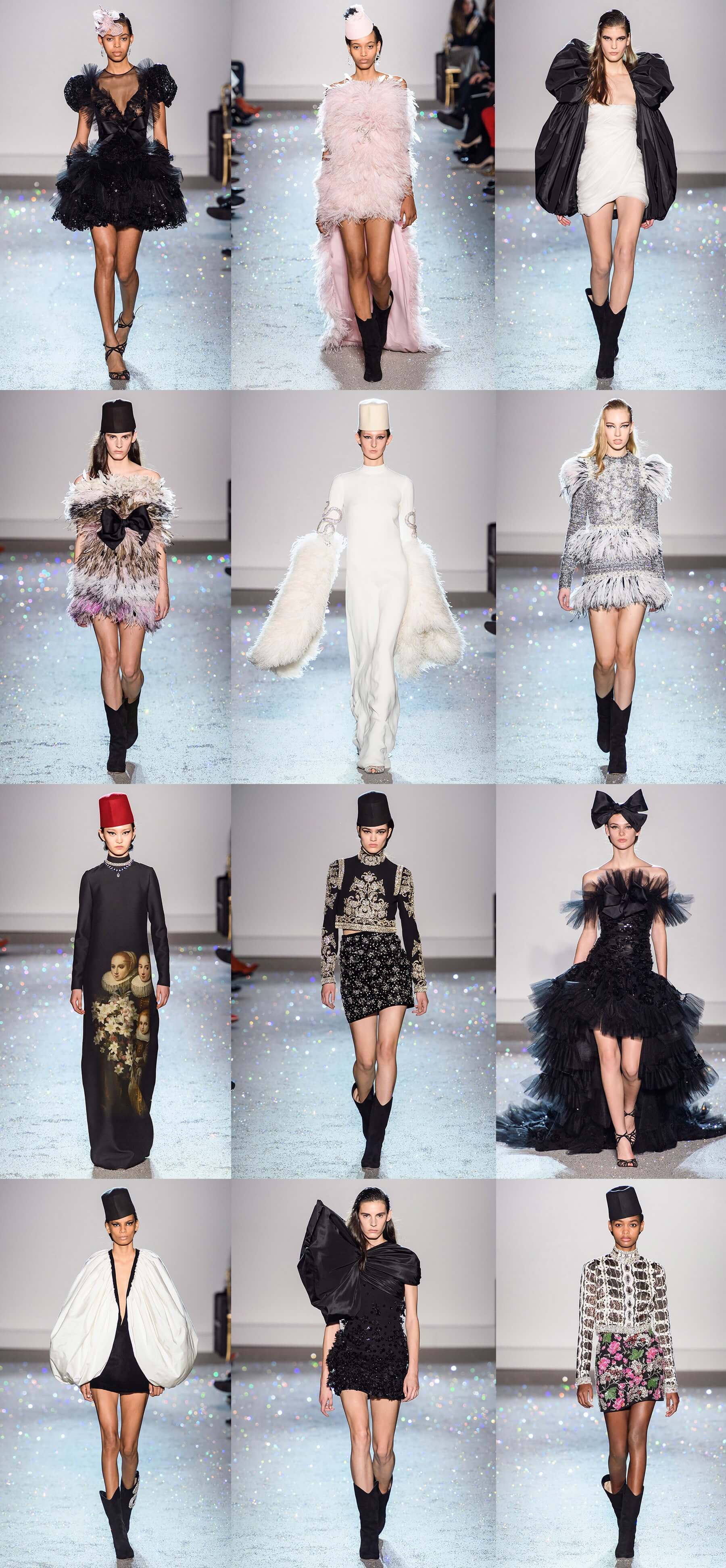 Головы моделей украшали изящные фески на манер турецких, рукава элегантных платьев походили на элементы нарядов танцующих дервишей, пышное белое платье из шёлка с черными бантами напомнило испанскую королеву-инфанту, а обольстительные струящиеся и ультракороткие наряды перекликались с эротичными мотивами картин Энгра. Примечательно, что некоторые платья украшали утонченные змейки (которые мы также видели в этом кутюрном сезоне в коллекции Ralph & Russo).