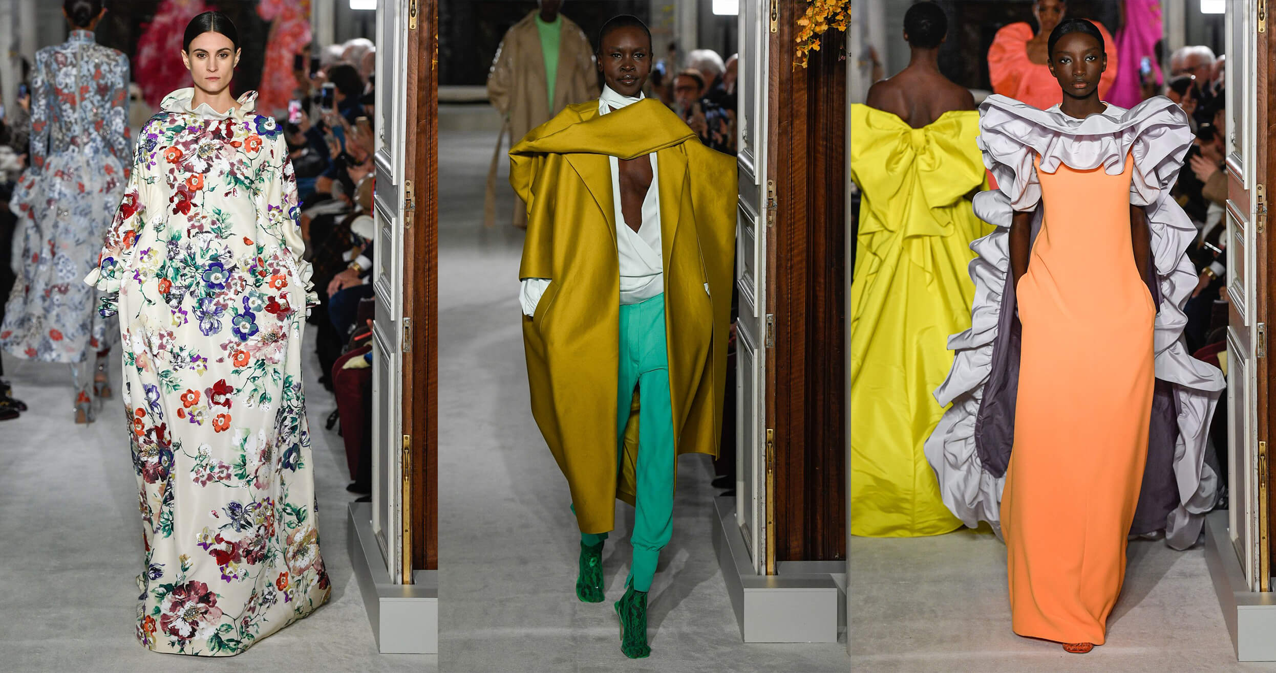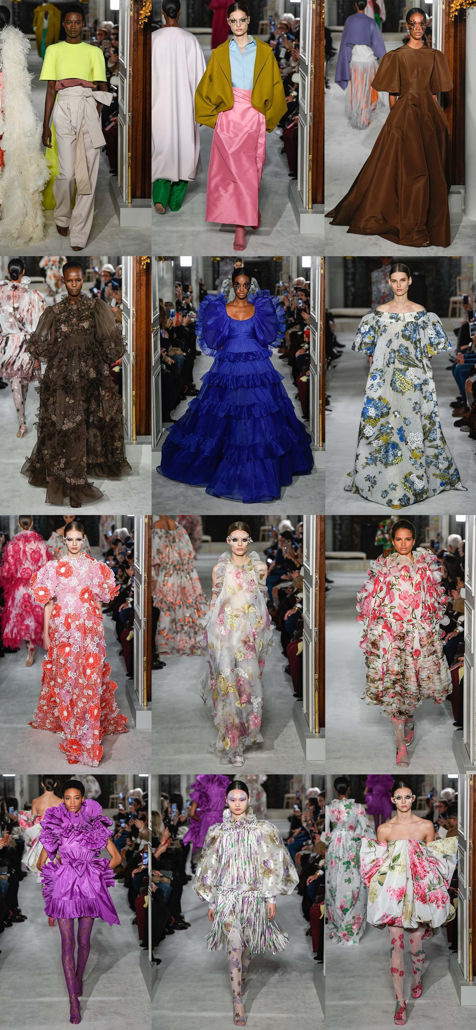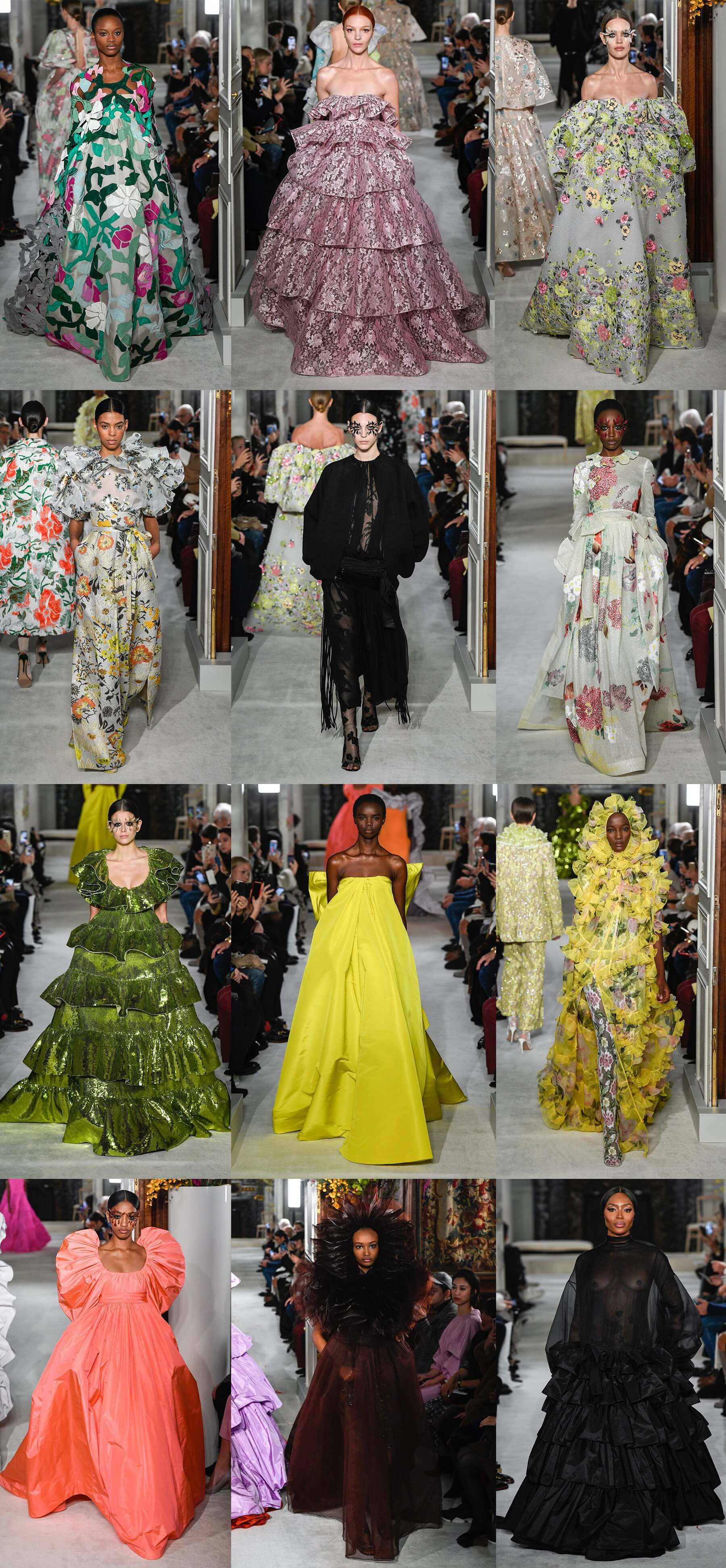 В отличие от рядовых элегантно-мрачноватых коллекций сезона, кутюрную коллекцию Пьер Паоло Пиччоли в буквальном смысле "расцветил" - цветы покрыли каждый сантиметр нарядов - от объёмных аппликаций, переходящих с ткани на кожу до средневековых платьев в пол. Одним из самых красивых был выход модели Адут Акеч в розовом патье-коконе, будто сконструированном из роз, а завершила показ легендарная Наоми Кэмпбелл. Дизайнер вдохновлялся модной фотографией середины прошлого века, снимками Сесилла Битона. В коллекции использованы остромодные цвета 80-х - лиловый, бирюзовый, розовый, коричневый. Главный тренд кутюрной недели моды дизайнер показал деликатно и изобретательно - перья украшали макияж моделей - в качестве ресниц, и, конечно, были на платьях, которые, к тому же, имели названия цветов - например имя платья Наоми Кемпбел - "Шоколадная георгина". Селин Дион, присутствовавшая на шоу, сквозь слёзы сказала, что Пьер Паоло Пиччоли вернул женщинам их красоту.