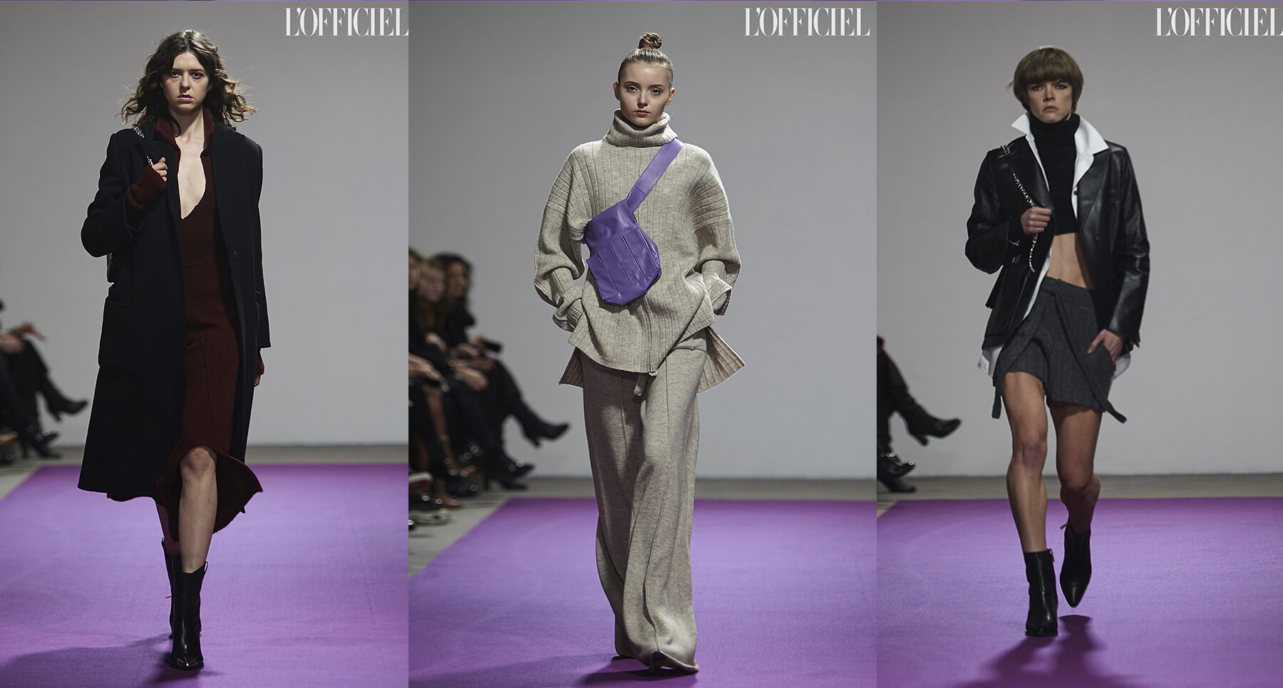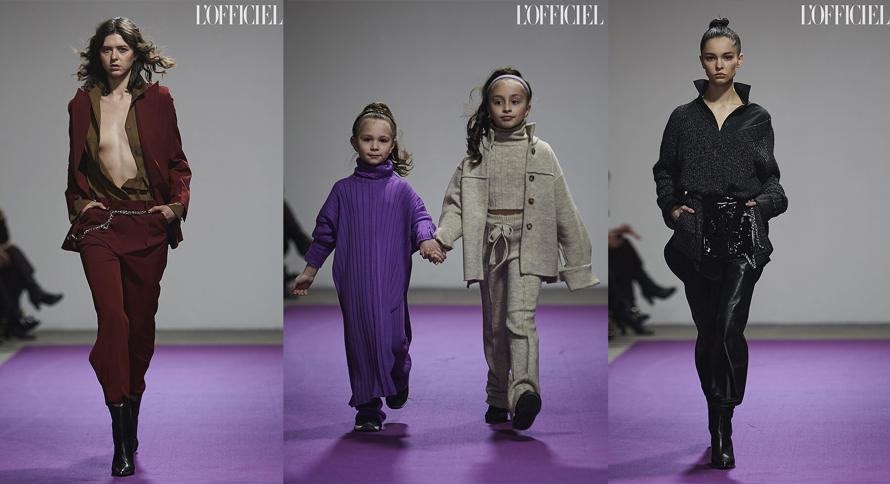 Две отдельных, но созвучных коллекции представили на подиуме бренды Katerina Kvit и T.Mosca. Родственные силуэты, комплиментарные фактуры и цвета стали инструментами в создании гармоничной картины о вариативности гардероба, где объемные трикотажные костюмы уживаются с элегантными платьями, вещами из блестящего винила и соблазнительными блузами.