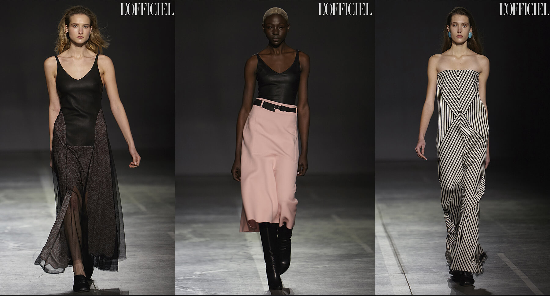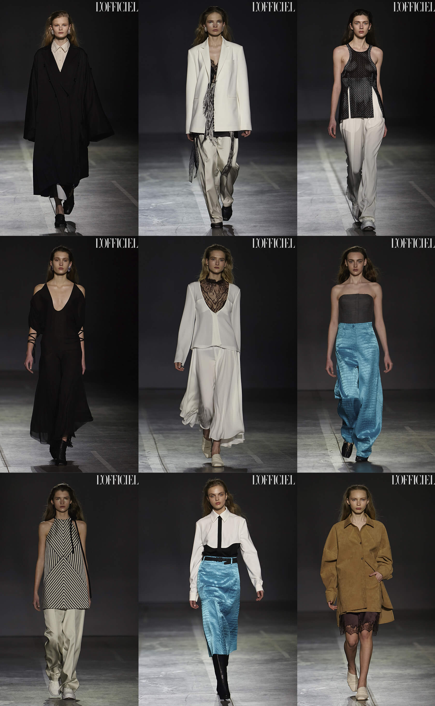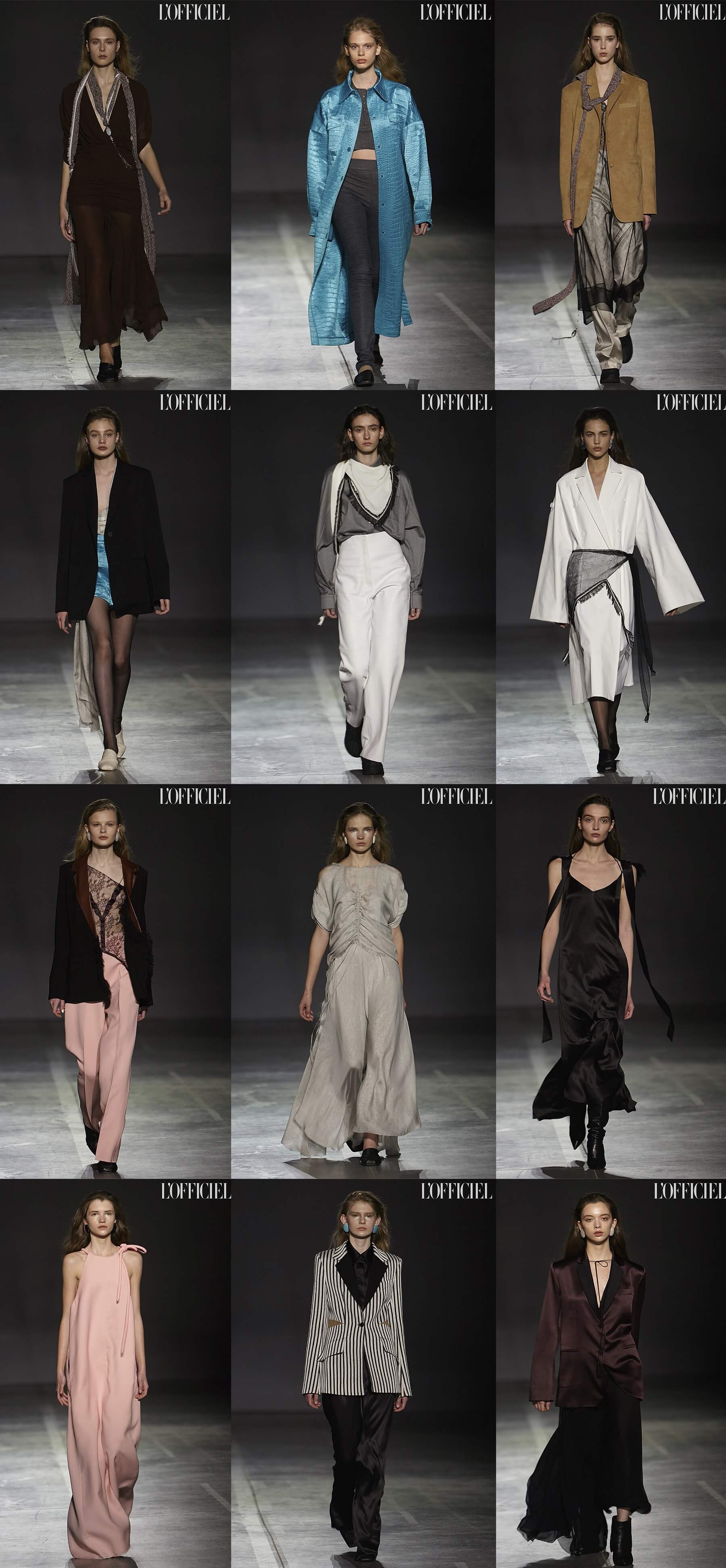 Женщина, по мнению дизайнера, полна естественной природной игры — в нежность, строгость, импульсивность и размеренность. На моделях были деловые и расслабленные костюмы, брюки со стрелками, одежда в стиле бохо и романтического шика, топы, юбки и пальто в духе 70-х и 80-х — те самые уникальные детали, из которых, как конструктор, можно собирать множество неординарных и свежих образов. Деликатные полупрозрачные платки с бахромой игриво дополняли коллекцию.