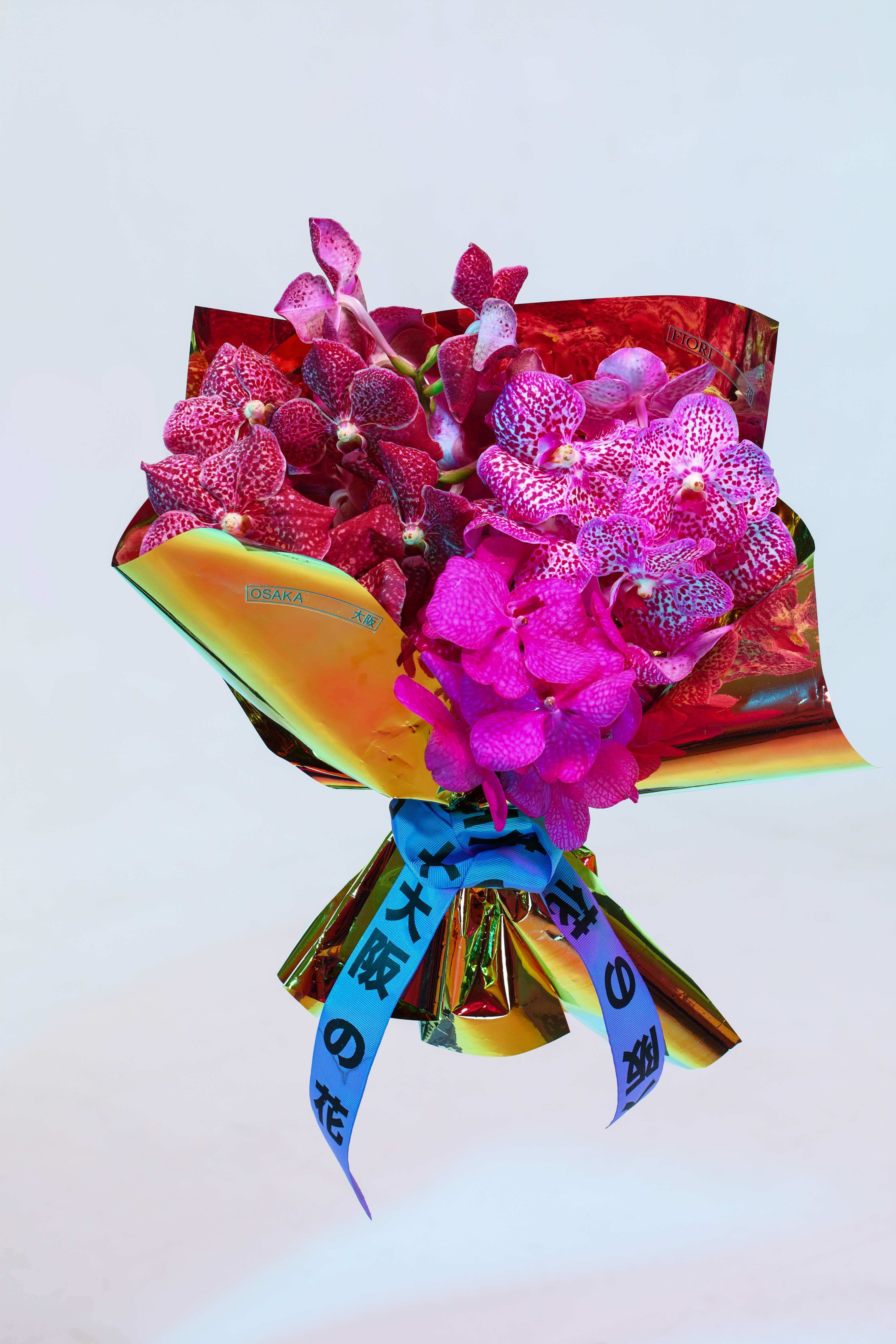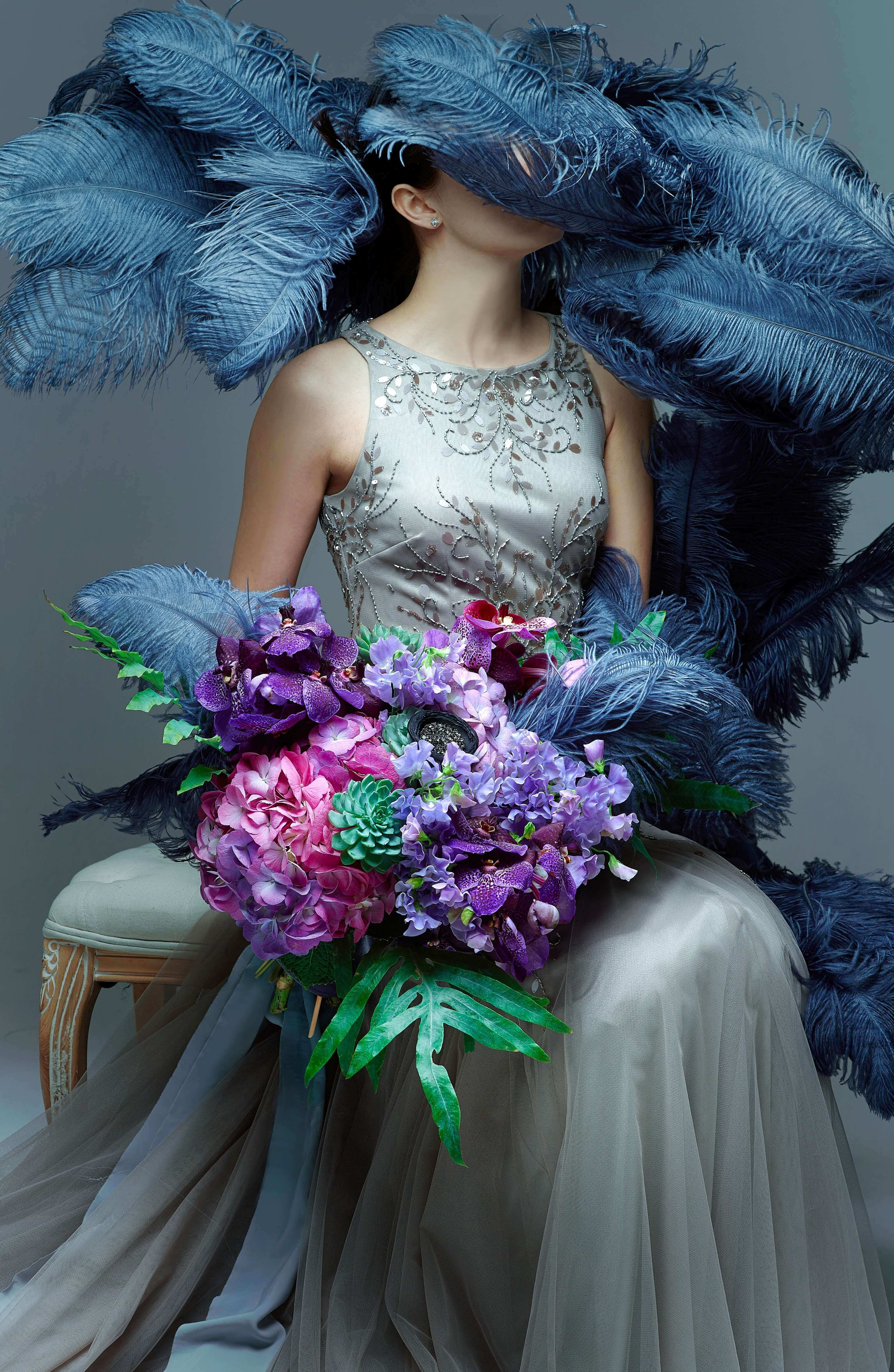 С точки зрения колористики холодная гамма используемых цветов передаёт общее настроение спокойствия, упорядоченности, самодостаточности каждого растения в нем. Фиолетовый цвет богатства и магии в сочетании с оттенками синего подчёркивает роскошь и изысканность букета.