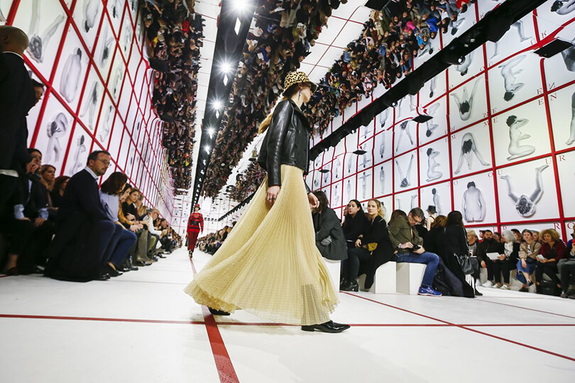 Показ открыла модель в белой футболке с принтом Sisterhood Global ("Сестринство во всём мире"). Надпись - прямая отсылка к международной организации и антологии Международного женского движения, написанной Робин Морган в 1984-м году. Образ сильной и независимой женщины, знающей свои права и сражающейся за гендерное равенство стал основным и в самой коллекции. Кьюри выдерживает тонкий баланс между мужским и женским, подчеркивая, что борьба не означает переход к тотальному мужскому гардеробу. Так пуловеры в комплекте с рубашками на мужской манер дизайнер дополняет полупрозрачной юбкой и акцентирует внимание на тонкой талии за счет широкого или же тонкого ремня. Такой же прием дизайнер использует для шерстяных миди-юбок в комплекте с футболками и топами, для многослойных платьев, юбок плиссе и даже пальто.