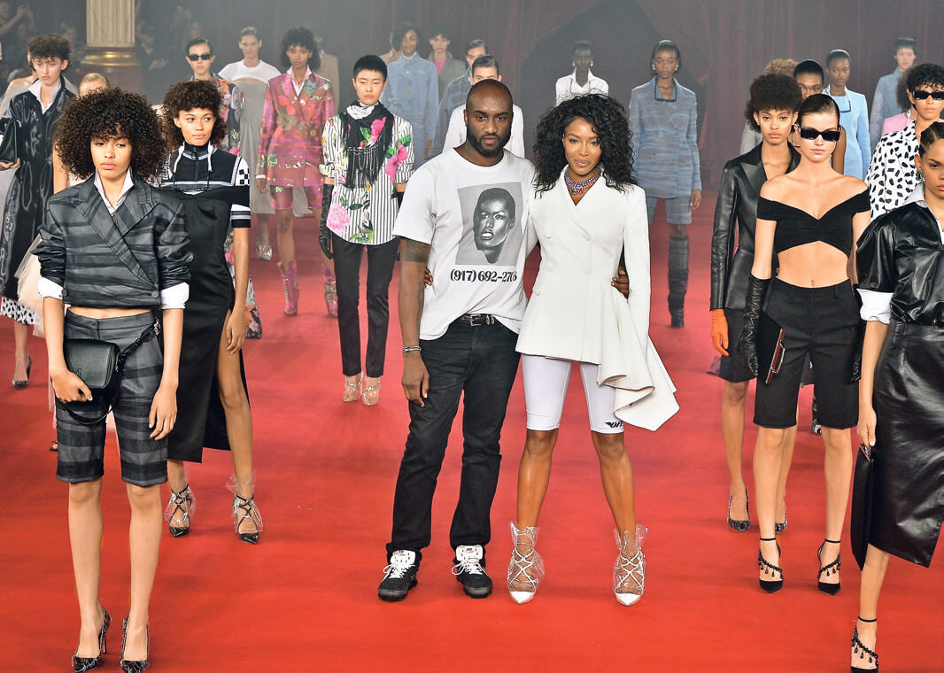 Вирджил Абло с Наоми Кэмпбелл на показе коллекции Off-White SS 2018