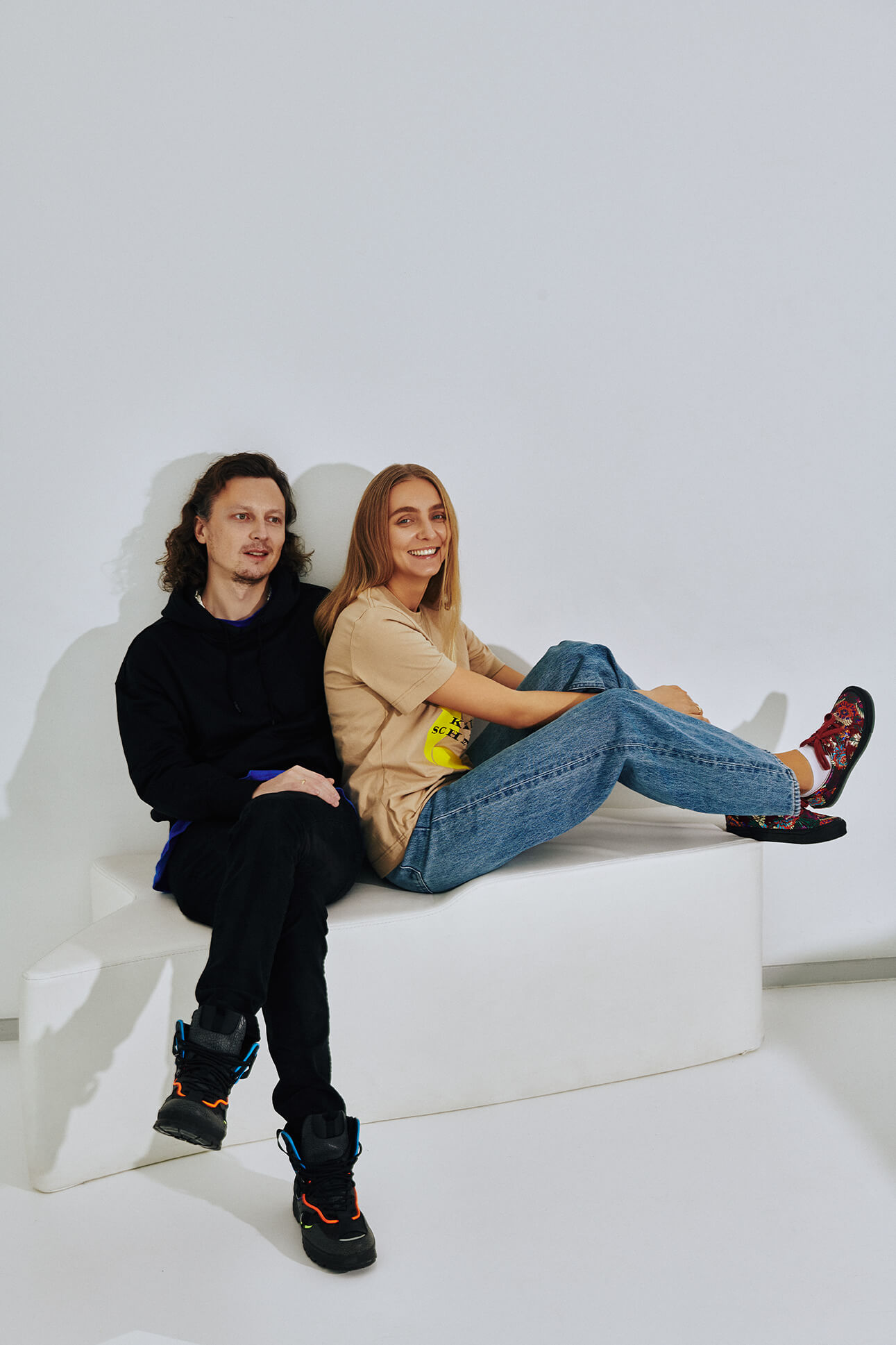 "Первые пару сезонов мы создавали очень простые вещи – прямые футболки и штаны", – говорит Антон. Затем появились эксперименты с кроем и цветом – была непродолжительная "эпоха" камуфляжного принта. После нее, в разгар интереса к украинским брендам и этническим мотивам, Шнайдеры придумали пикселизировать узор украинской вышивки и разместить его на лаконичном платье-рубашке с акцентированной талией. Платья с digital-вышивкой довольно хорошо встретили на международной арене, но настоящий успех к бренду пришел только с джинсами.