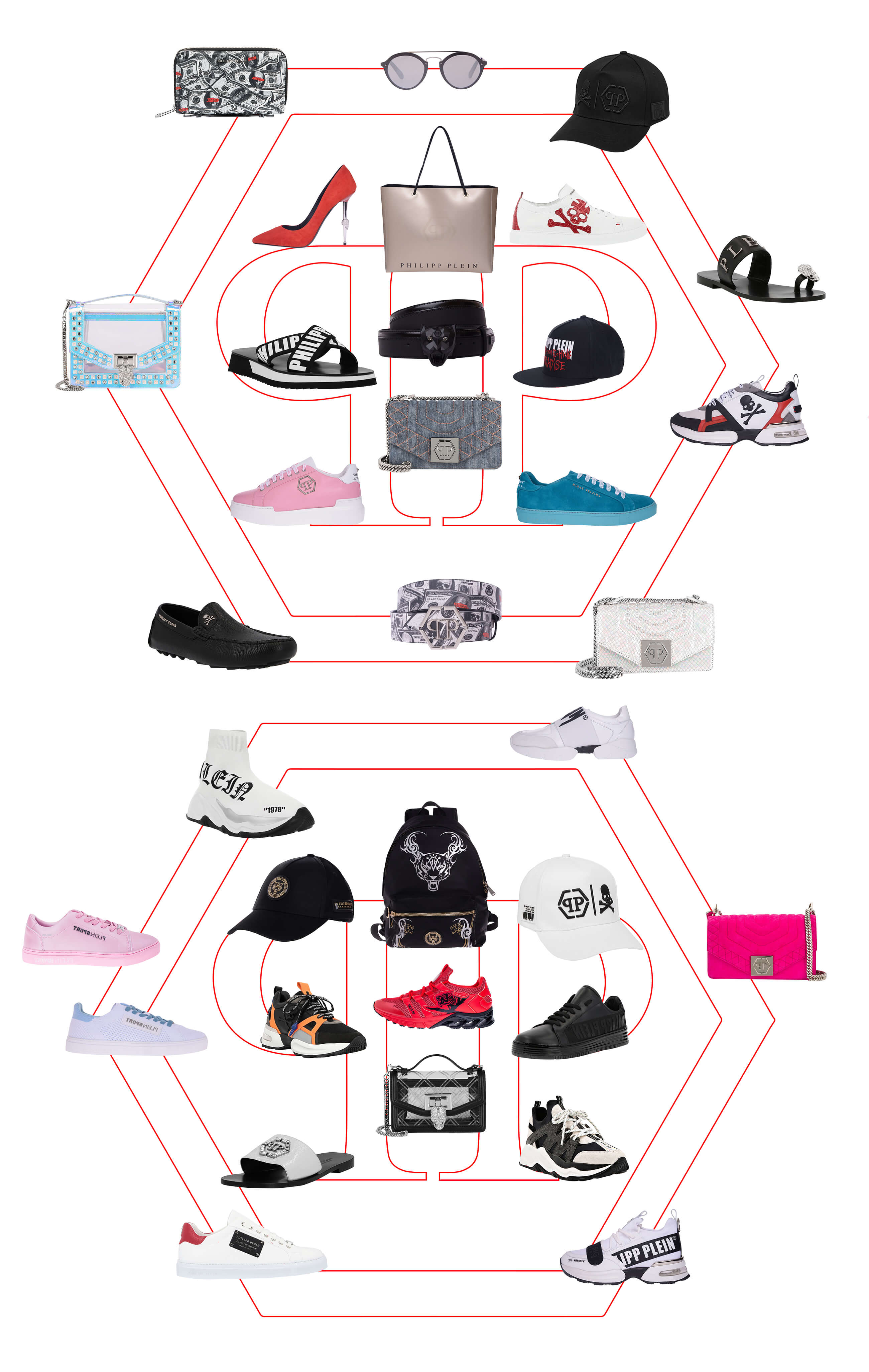 Провокационная, переходящая в своеобразный темный китч стилистика Philipp Plein, с кричащими брутальными кроссовками и сотнями шипов и заклепок, сумками в исполнении трендовых текстур, запросто может составить ваш весенний образ. Графичные кроссовки с костями, чувственные алые лодочки с акцентными каблуками в черепах или прозрачная, цвета весеннего неба, мини-сумка — нетривиальные аксессуары, а более легкомысленные кеды зефирных оттенков или сумка цвета цикламена зададут тон вашей весне.