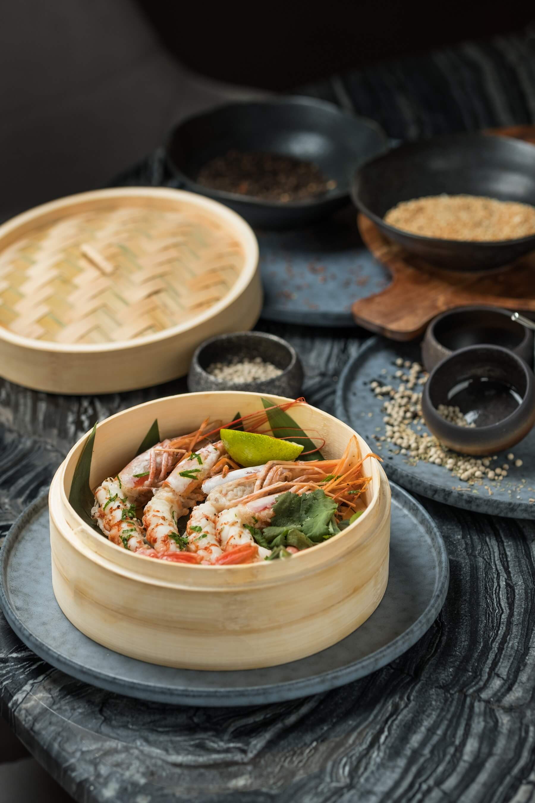 Меню ресторана включает в себя блюда паназиатской кухни в авторском исполнении. Гастрономическим акцентом ресторана являются лангустины, их разнообразные сочетания, формы приготовления и подачи – их готовят на пару в бамбуке, запекают в хоспере, подают в виде тартара или попкорна с томатным шисо.