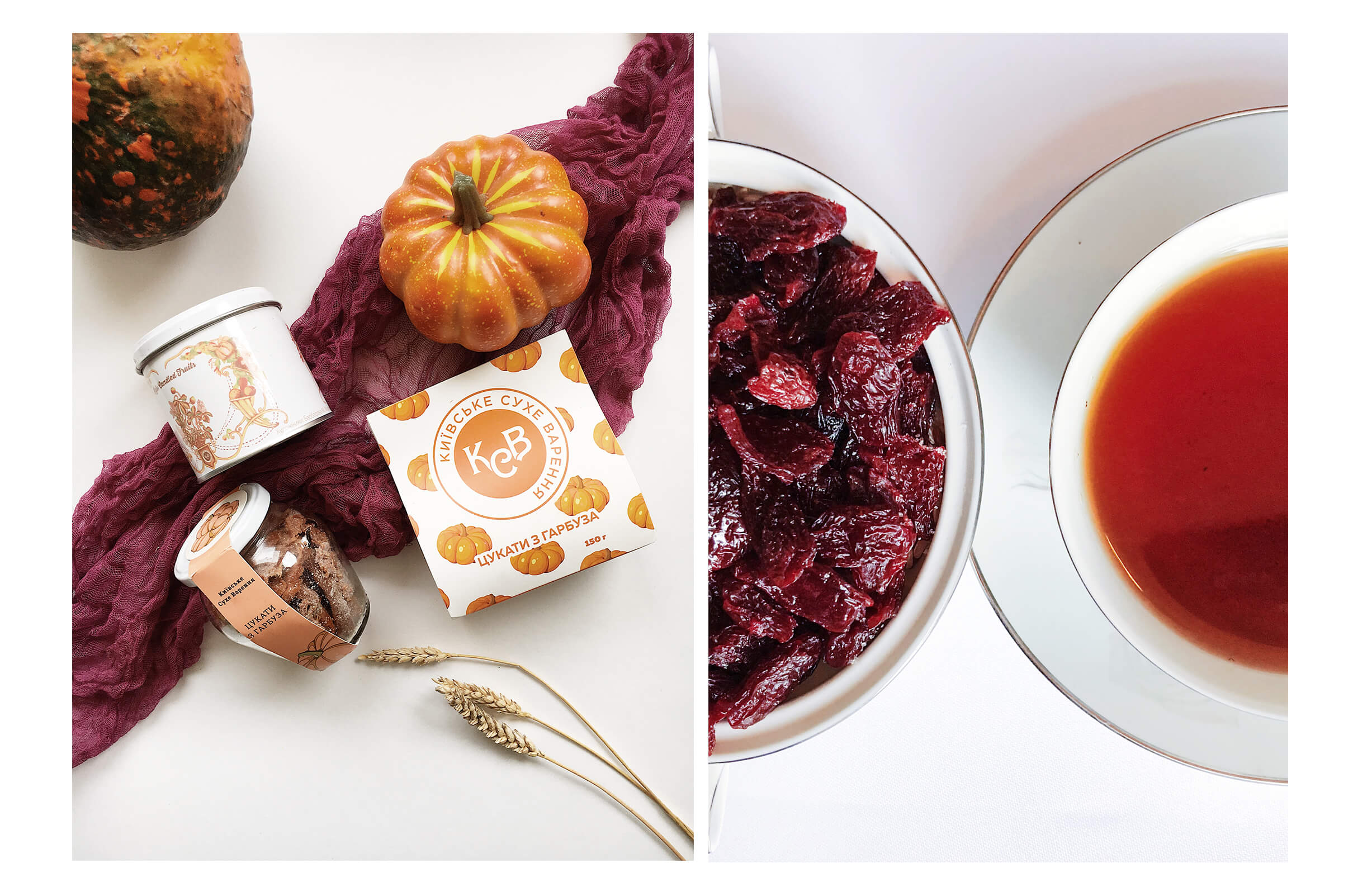 Сегодня можно попробовать сухое варенье из тыквы, яблока, груши, моркови, кизила, свеклы, лимона и апельсина.В качестве исконно киевского подарка цукаты сухого варенья хороши в сувенирных банках, которые были специально оформлены киевскими художниками-модернистами Александром Маслюковым и Марианной Барбаровой. Заказать его можно на сайте бренда.