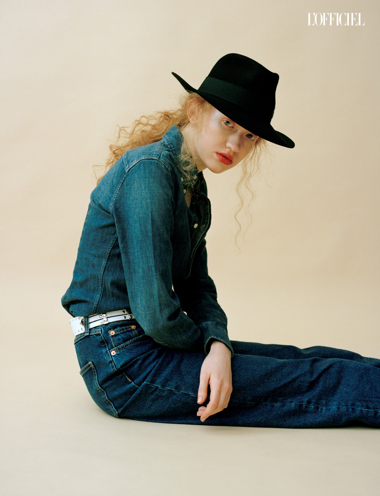 Рубашка Ralph Lauren, джинсы Isabel Marant, шляпа Maison Michel, ремень Maje
