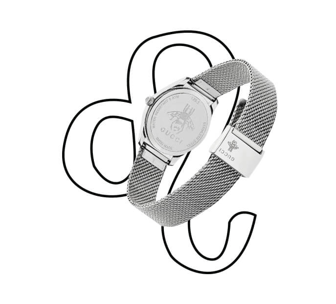 Минималистичные часы — завершающая деталь любого образа. Стальной браслет, жемчужный циферблат и коды дома Gucci вместо цифр помогут энергичным Львам хоть иногда следить за временем. Часы настолько красивые, что от них сложно оторвать взгляд.