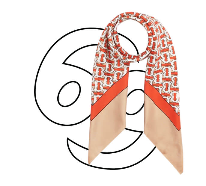 Раки не склонны принимать риски. Классический шелковый платок с монограммой Burberry из дебютной коллекции Рикардо Тиши — беспроигрышный вариант для весеннего сезона.