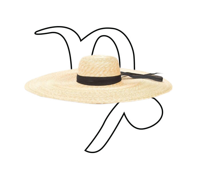 Практичным Козерогам — практичный аксессуар. Широкие поля, черная лента и никаких лишних деталей. Соломенная шляпа от солнца, вне зависимости от трендов, будет актуальной в летнем гардеробе.