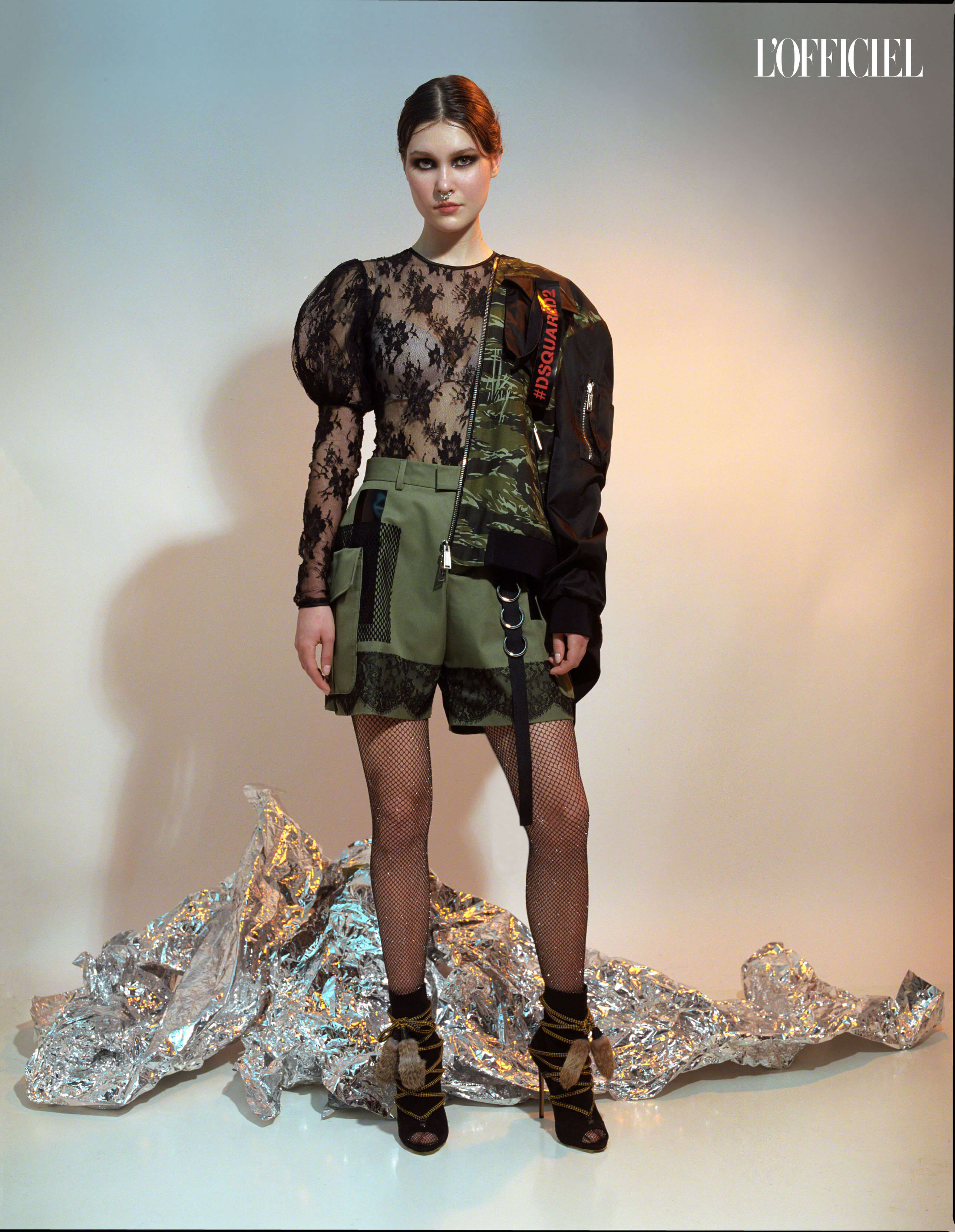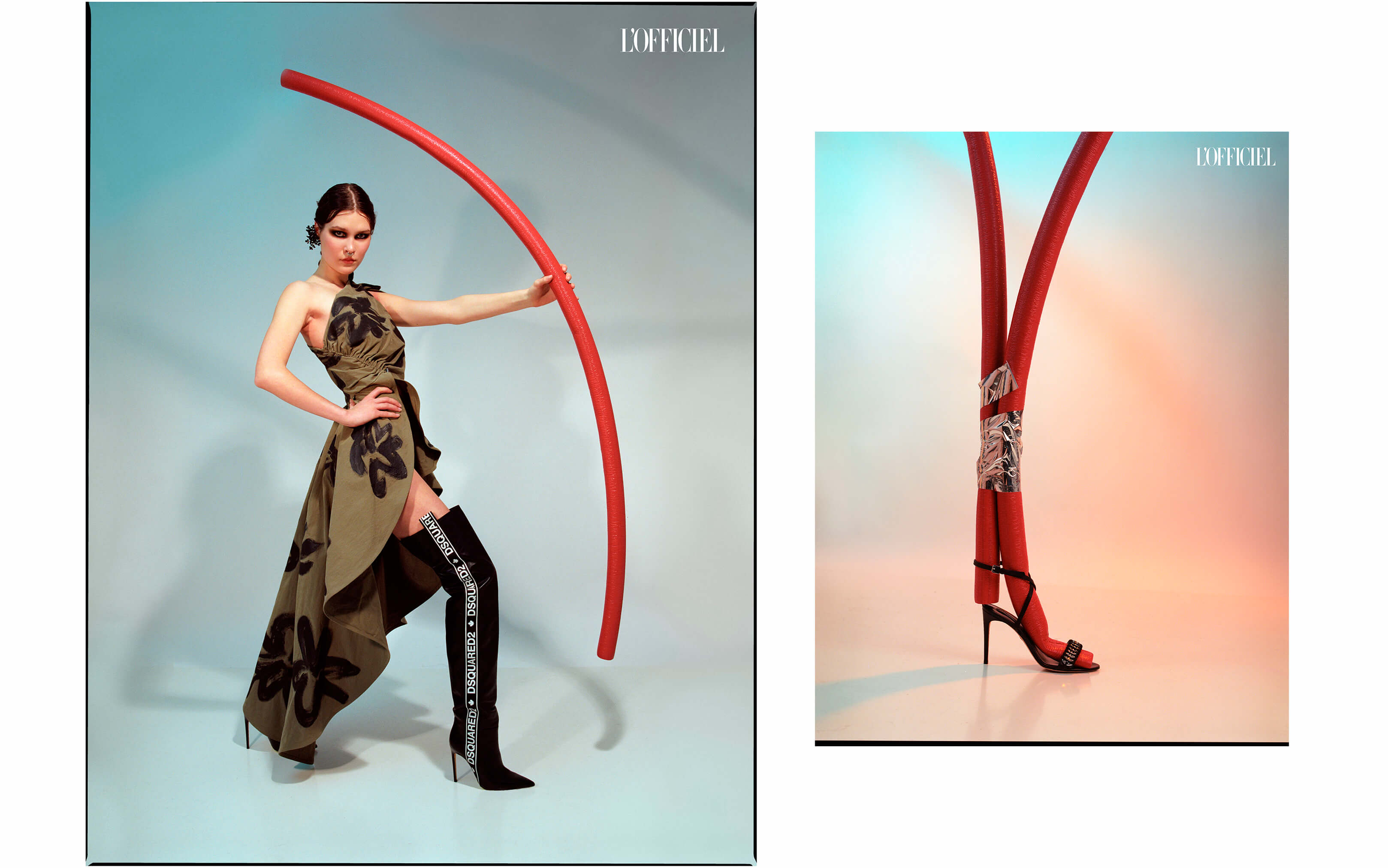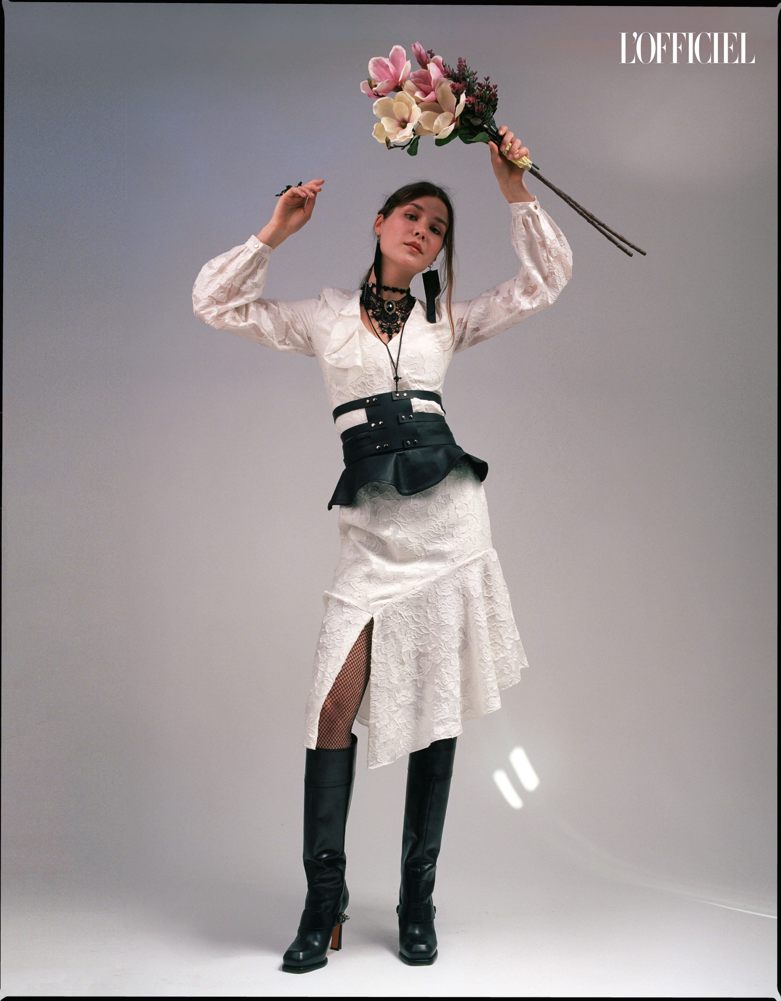 Дух спортивной романтики из 2000-х во многом определяет моду сегодняшнего дня, и героиня съёмки стала настоящим его воплощением, созвучным и текущим тенденциям современности — манифестации женской стойкости, силы и достоинства. В ультраженственном платье защитного цвета, с цветами, напоминающими элементы тактической маскировки, с символическим луком для стрельбы и в высоких ботфортах модель будто сошла с древних гравюр о воинственных и притягательных амазонках, а в пальто архитектурного кроя, с косичками гимназистки начала прошлого века, становится образом поэтического свободомыслия культовых украинских писателей, интеллектуалов и деятелей искусства.