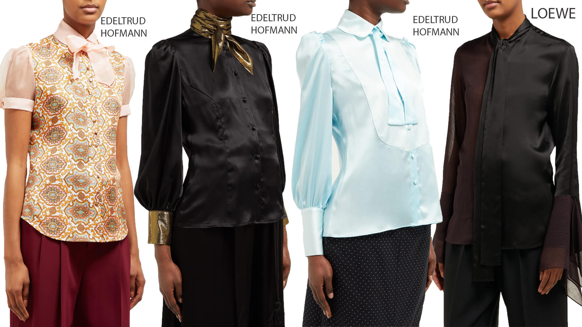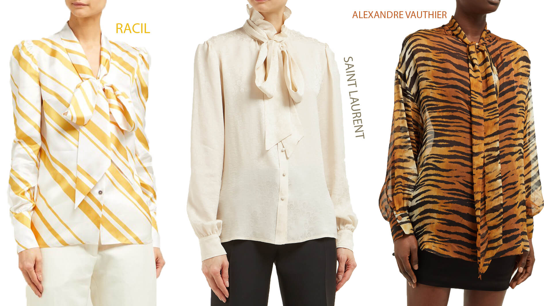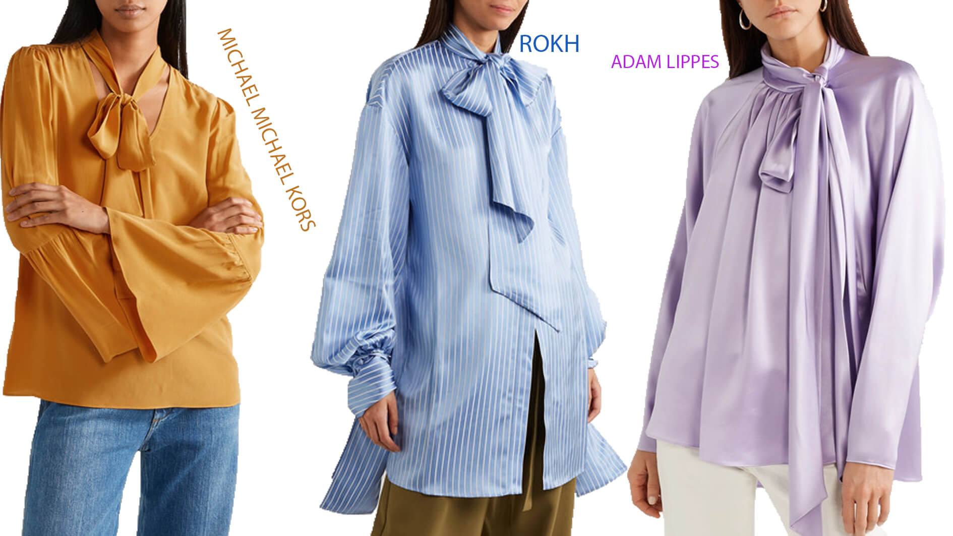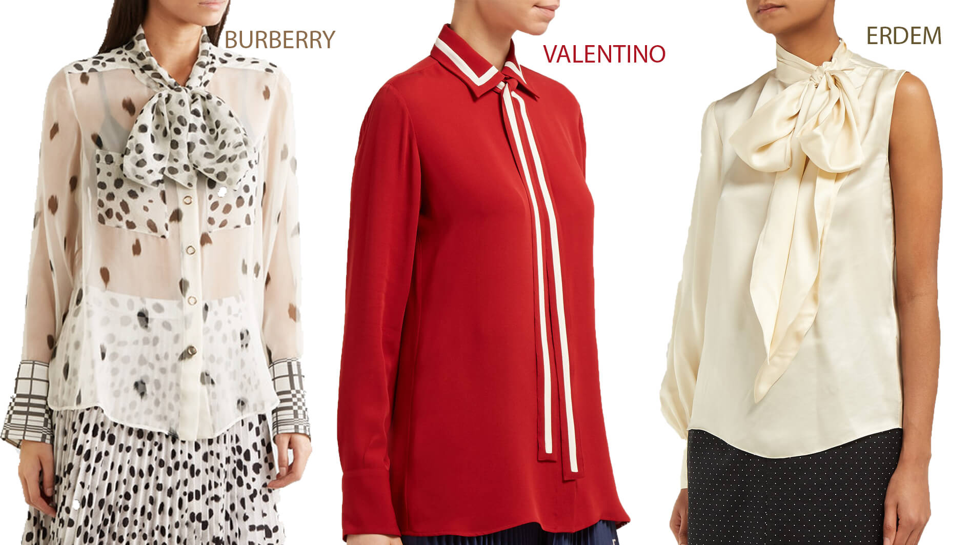 На манер викторианских модниц, с высоким присобранным воротом, гламурных красавиц из 40-х, как у богемных фей эпохи хиппи, или эффектных городских амазонок 80-х, блузу с бантом можно носить со спортивными или широкими "мужскими" брюками, узкими юбками миди или гладиаторскими сандалиями, с расклешенными джинсами и кожаными платьями поверх.